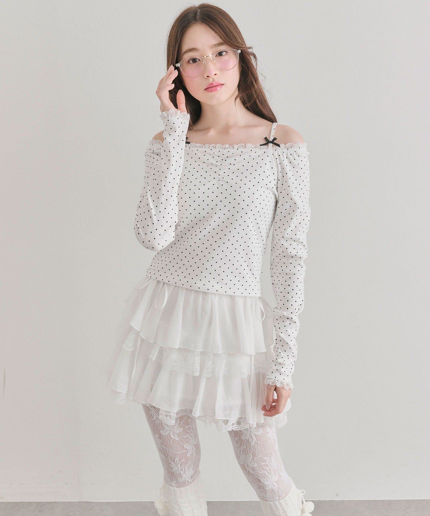 品番 1052060360 素材 【ホワイト・チャコール】本体: ポリエステル62%, 綿33%, ポリウレタン5% レース部分: ナイロン90%, ポリウレタン10% リボン部分: ポリエステル100% 【オフ(ドット)】本体: 綿95%, ポリウレタン5% レース部分: ナイロン90%, ポリウレタン10% リボン部分: ポリエステル100% 原産国 中国 サイズ FREE カテゴリ トップス > Tシャツ/カットソー タイプ レディース ギフト ラッピング 可 取り扱い 本体:手洗い可能 アイテムサイズ