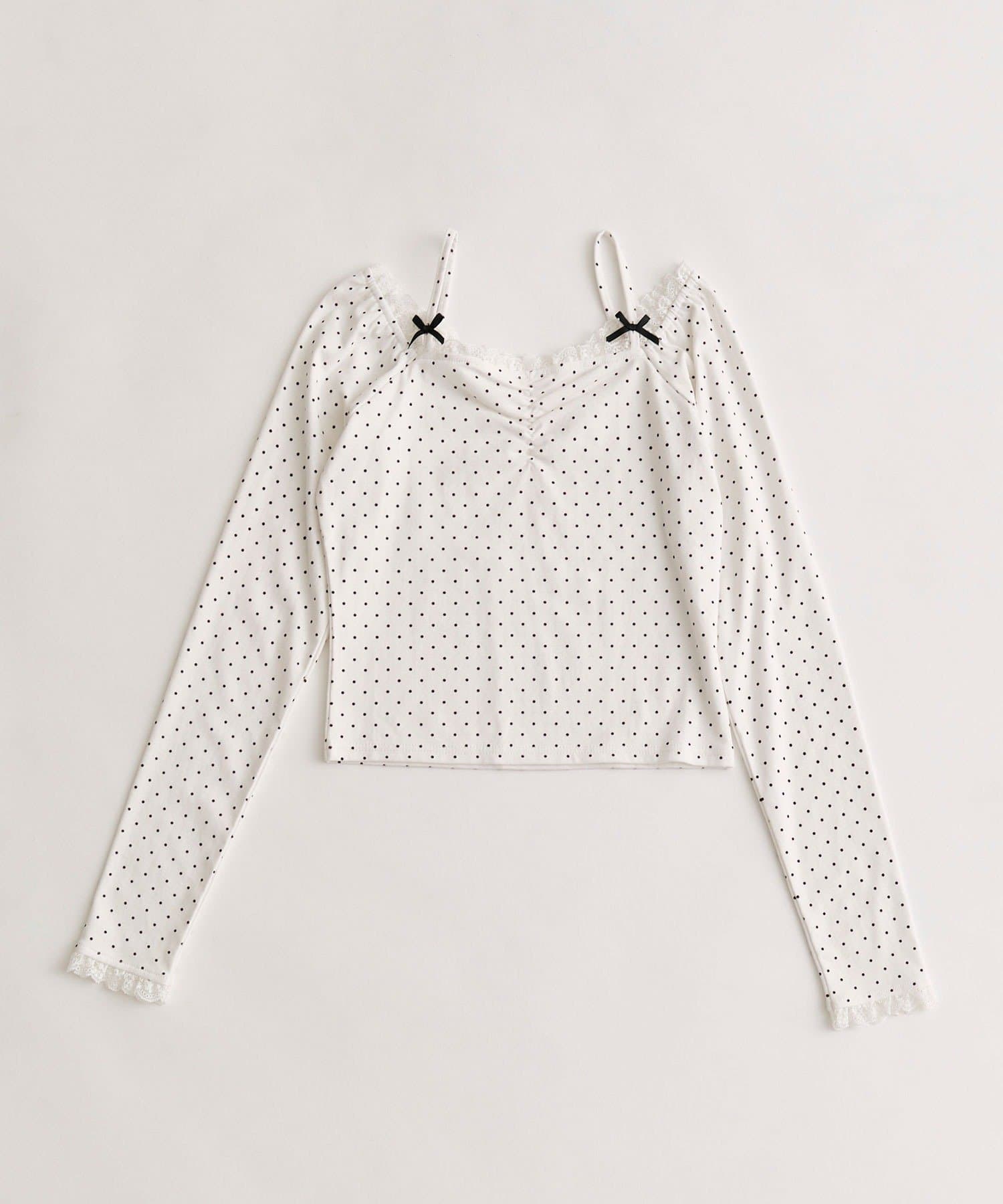 品番 1052060360 素材 【ホワイト・チャコール】本体: ポリエステル62%, 綿33%, ポリウレタン5% レース部分: ナイロン90%, ポリウレタン10% リボン部分: ポリエステル100% 【オフ(ドット)】本体: 綿95%, ポリウレタン5% レース部分: ナイロン90%, ポリウレタン10% リボン部分: ポリエステル100% 原産国 中国 サイズ FREE カテゴリ トップス > Tシャツ/カットソー タイプ レディース ギフト ラッピング 可 取り扱い 本体:手洗い可能 アイテムサイズ