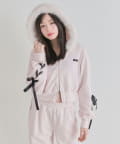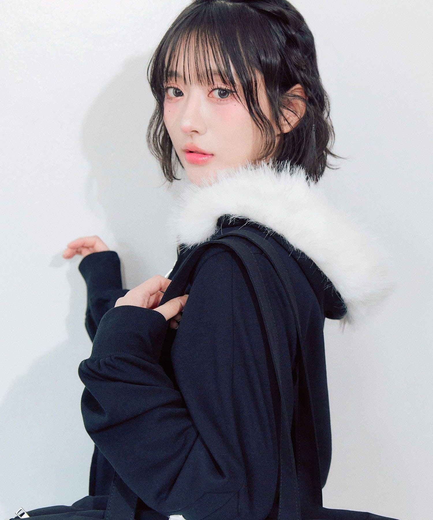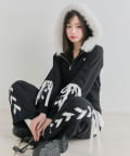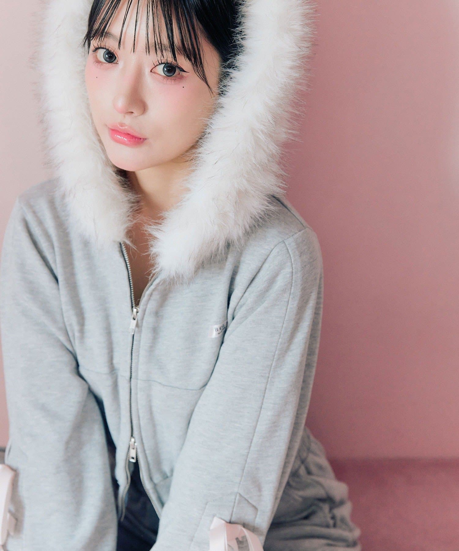 ・フードにはふわふわのファー付きで、顔まわりを華やかに見せつつ小顔効果も抜群です。