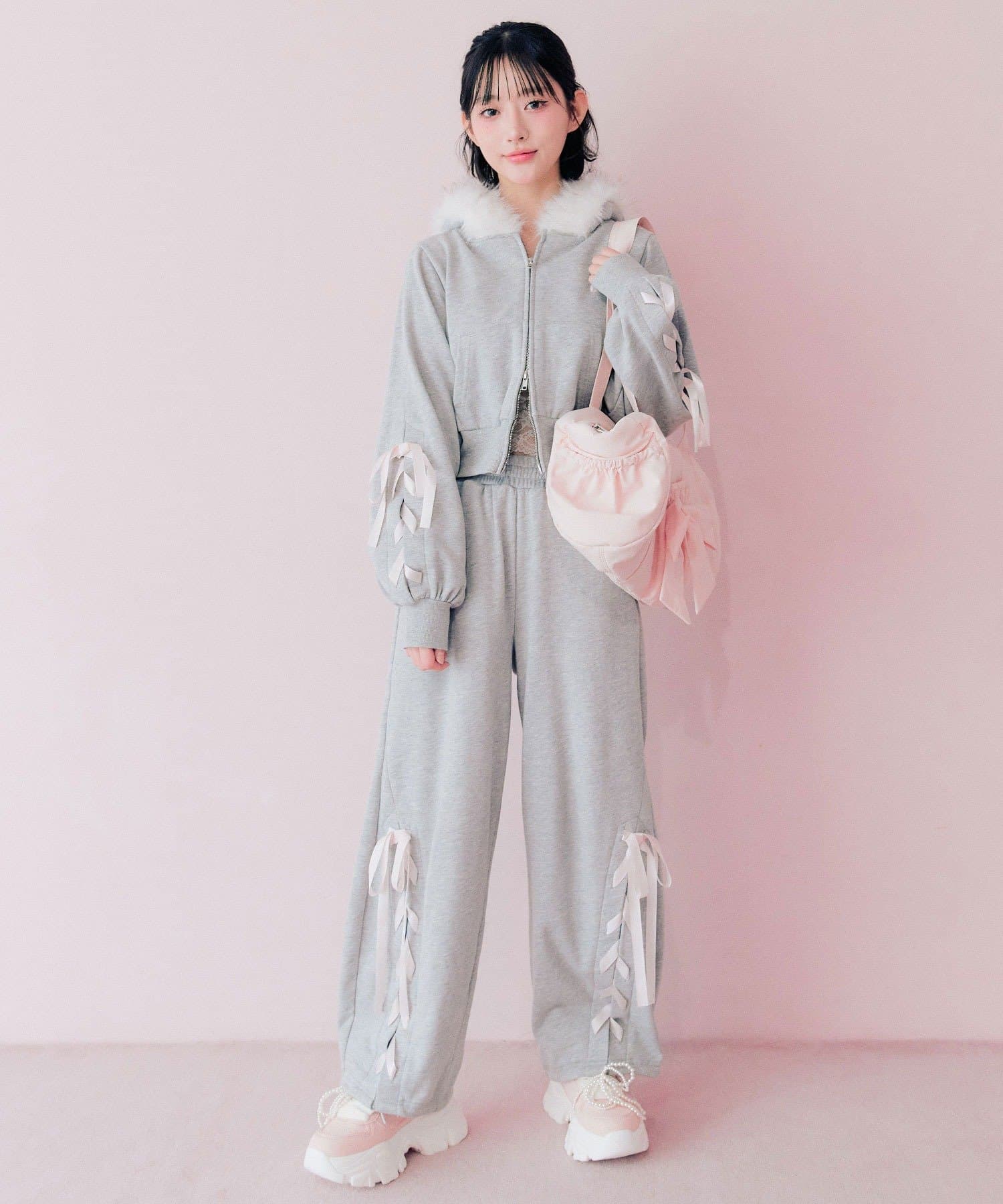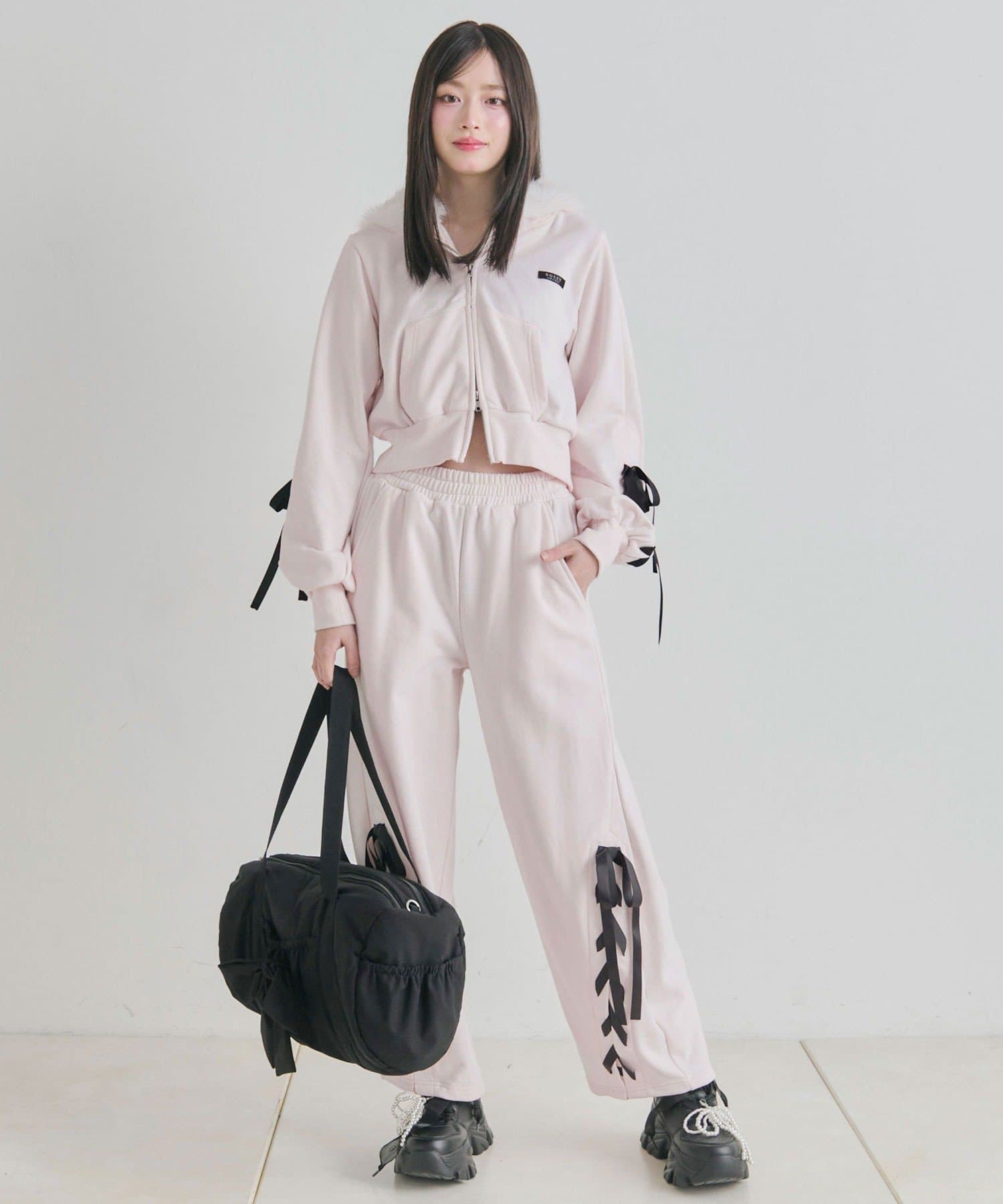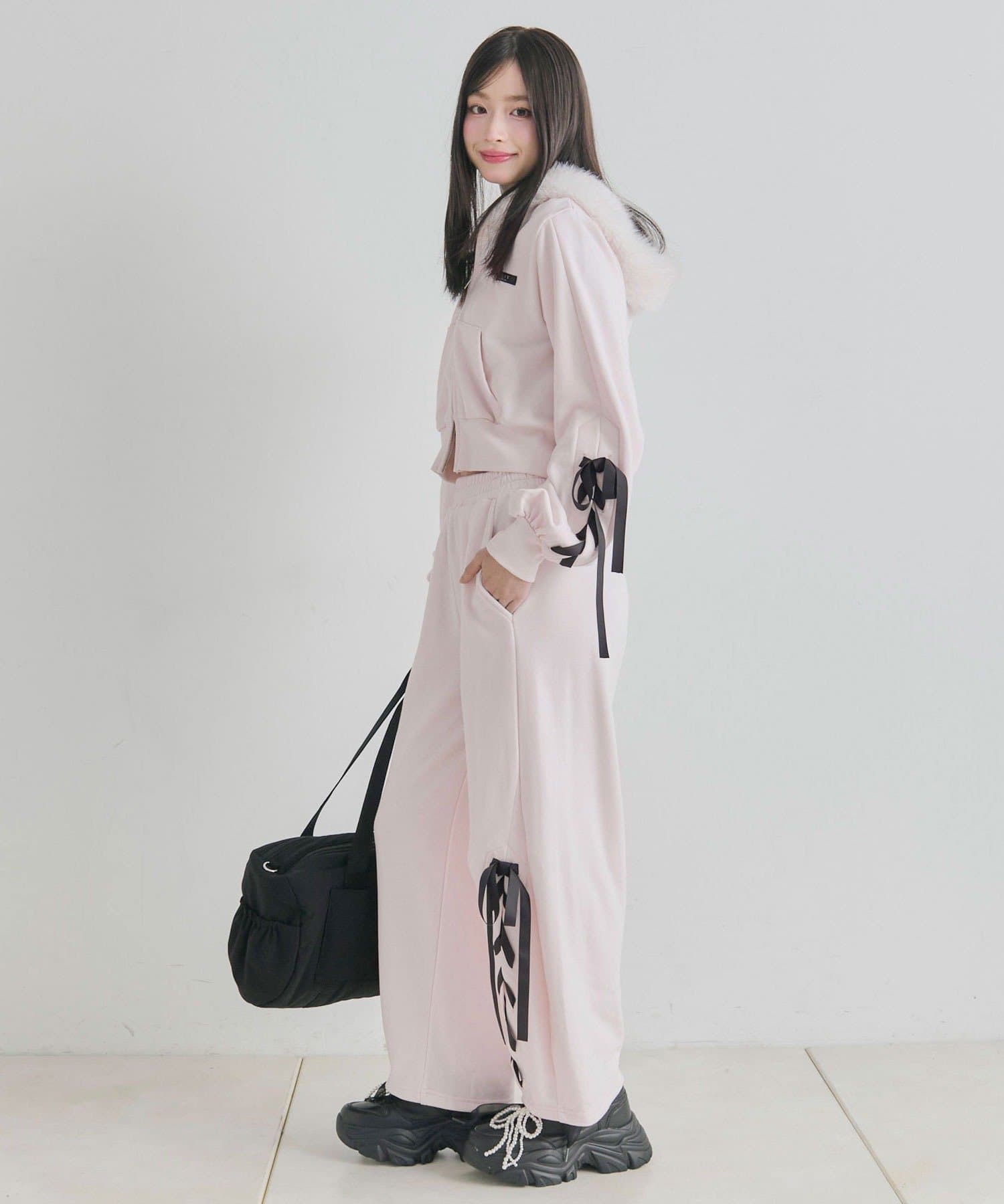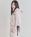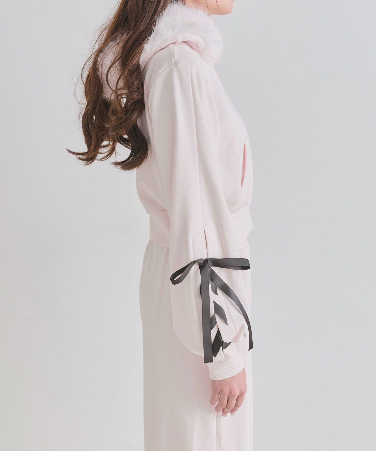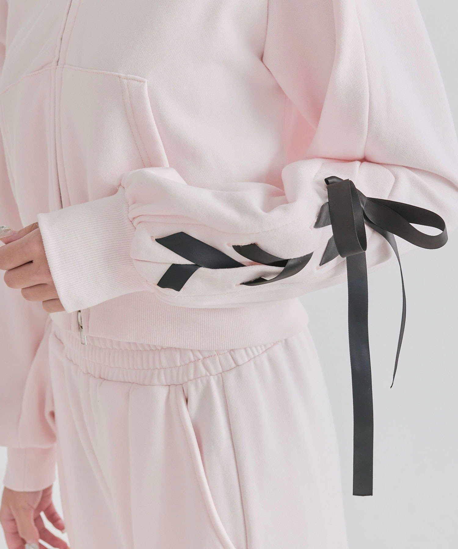 ・カジュアルなアイテムながら、袖のレースアップが甘さをプラスするデザイン。
