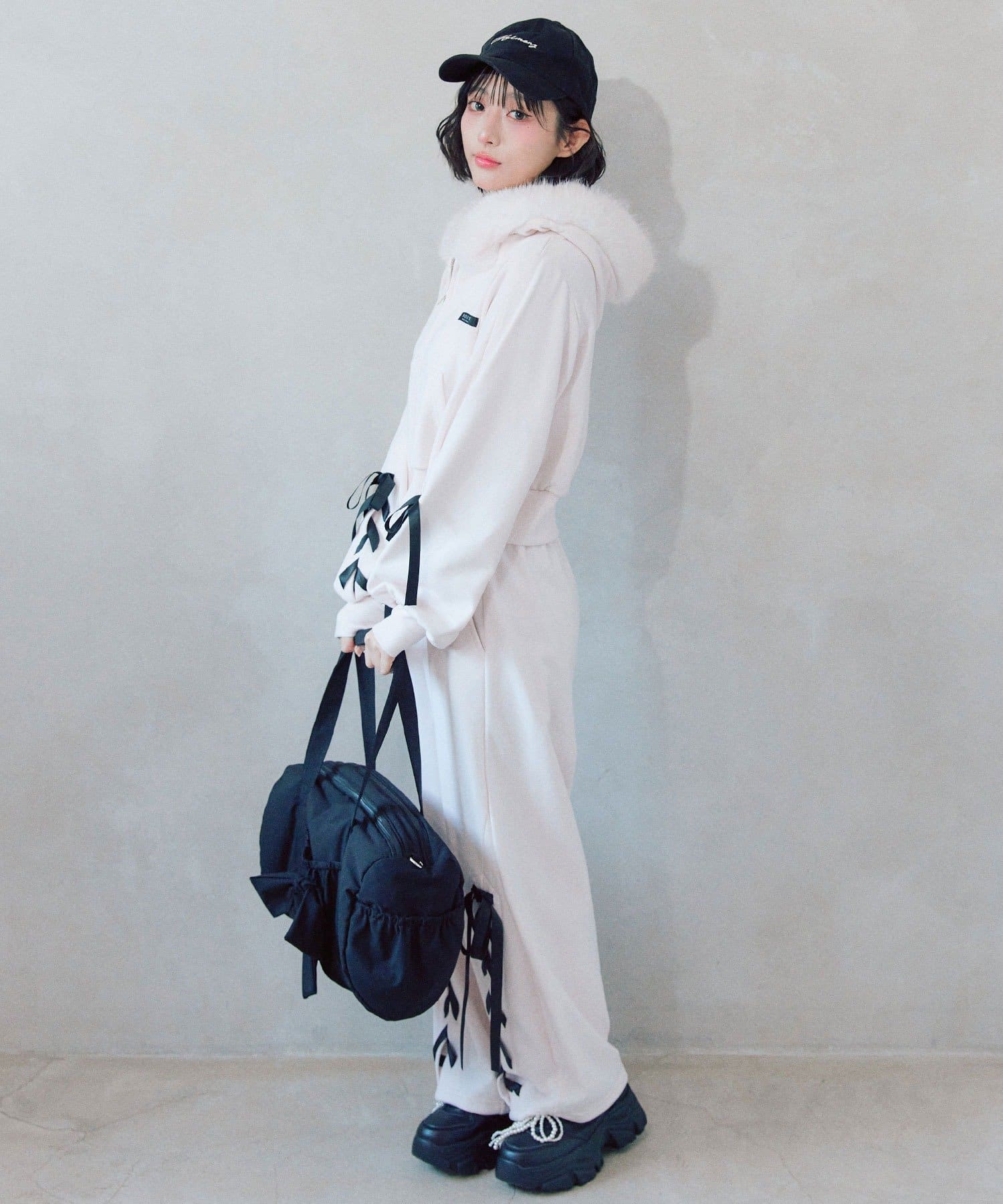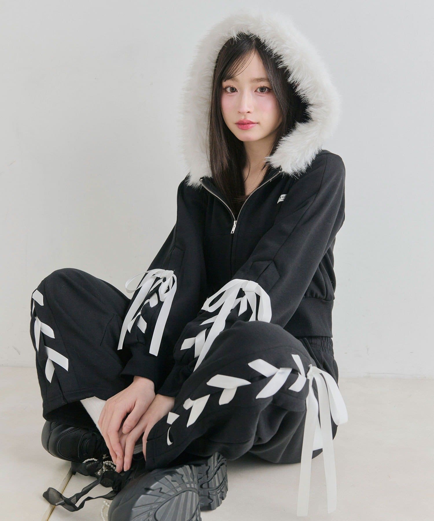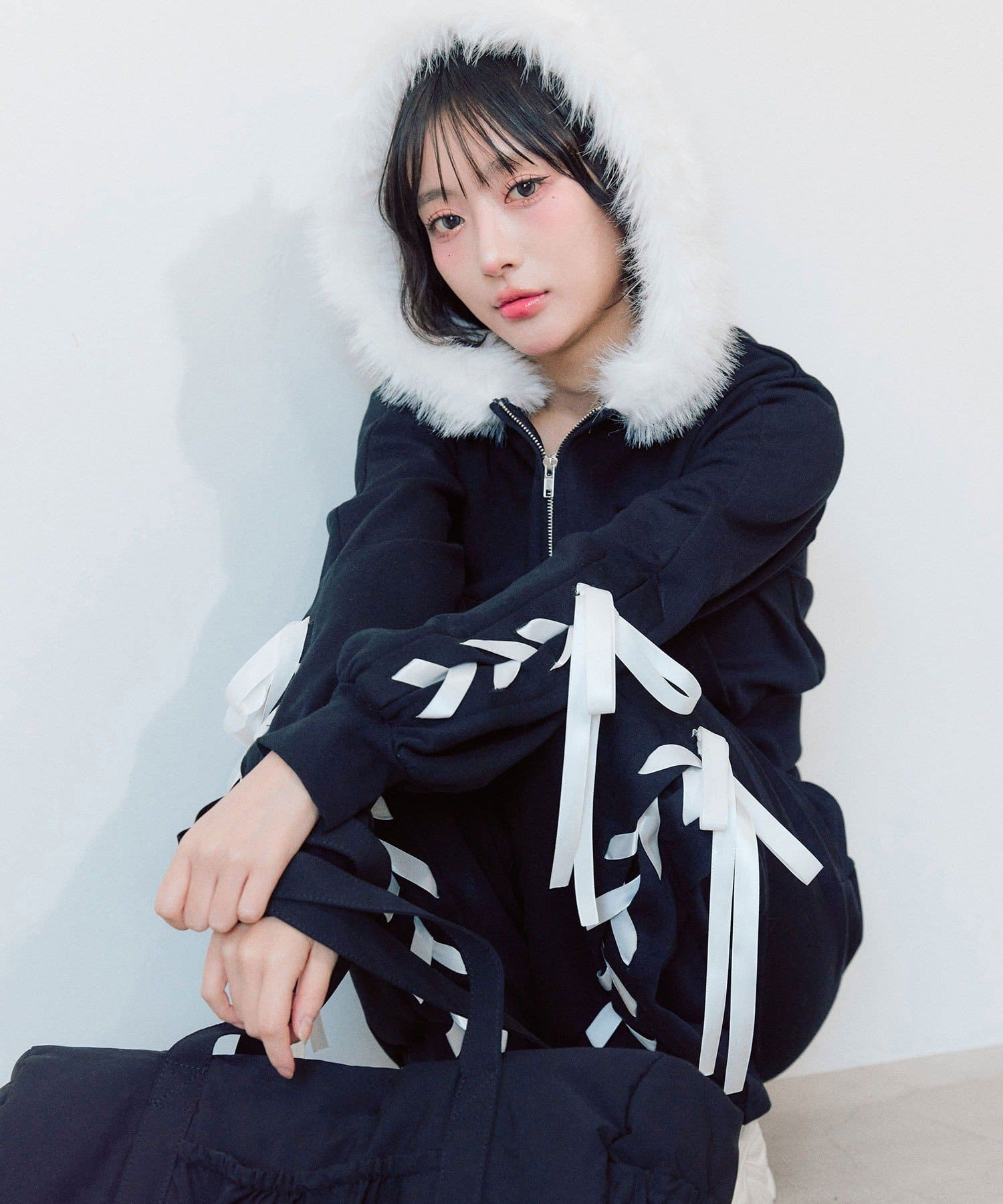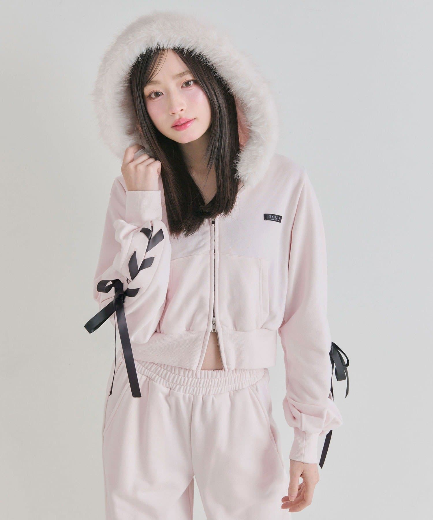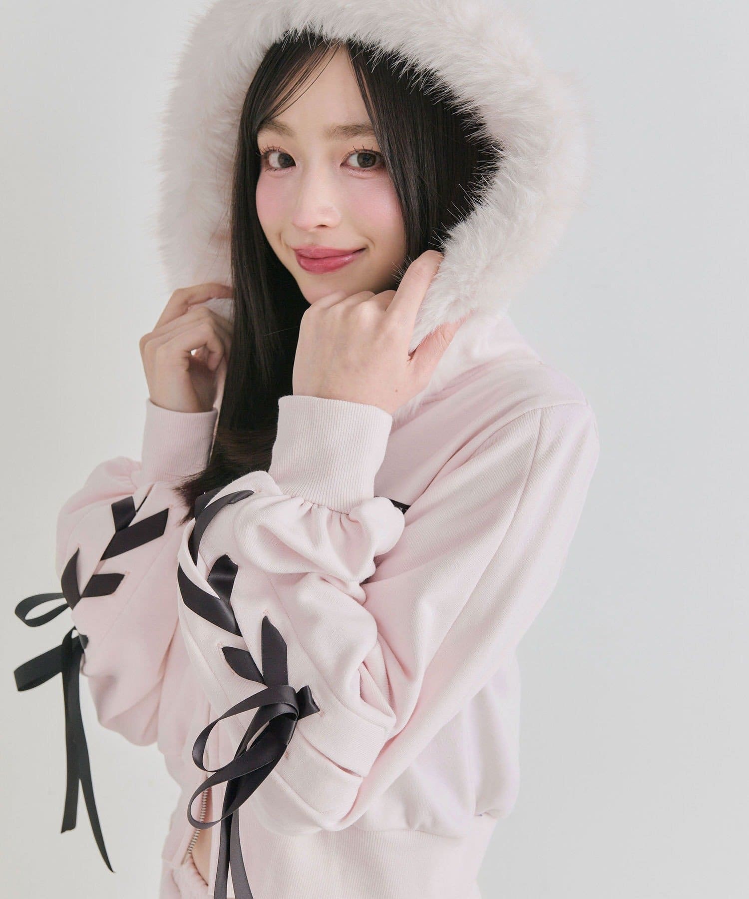 ファーとレースアップが映える主役パーカー