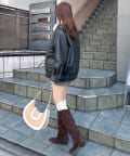 ・足元はロングブーツを合わせると韓国っぽい着こなしに。
