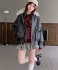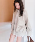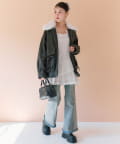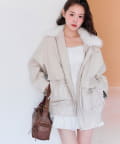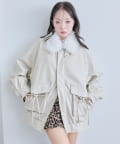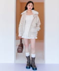 ・ポケットのリボンや、ふわふわのファーティペットがあることで甘さをプラスしたデザイン。