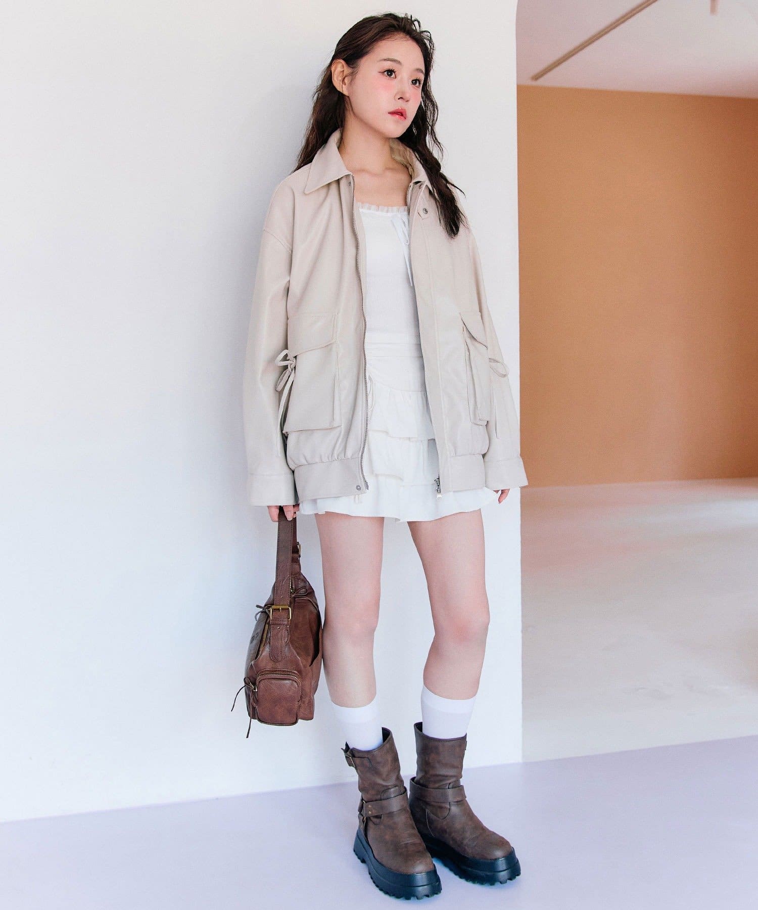 ・ミニワンピやミニスカートに合わせてガーリーな着こなしがおすすめです。