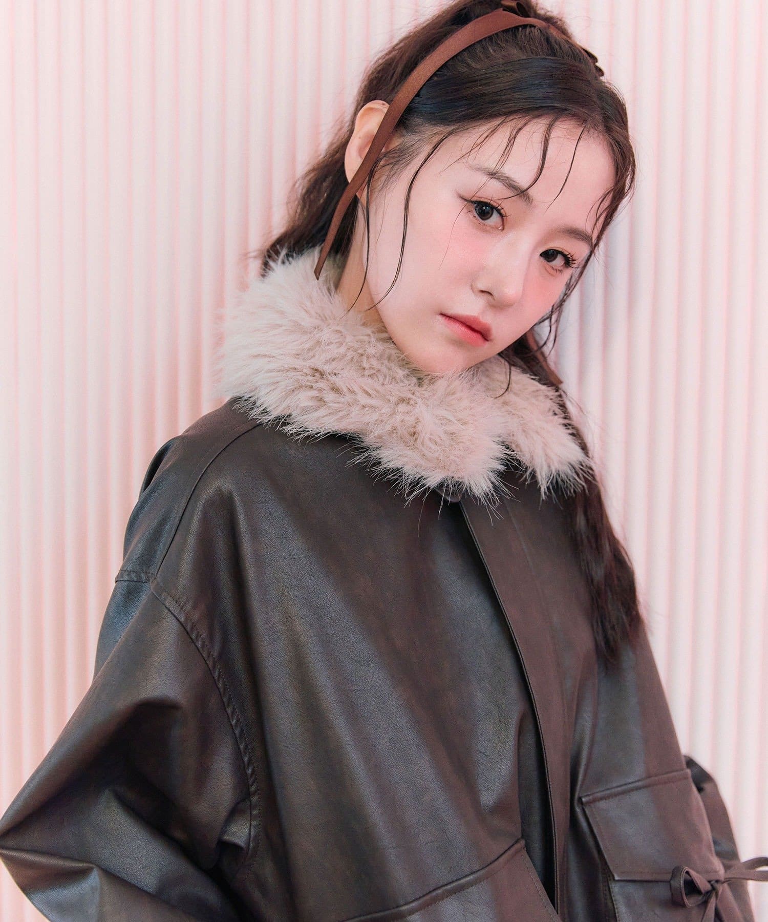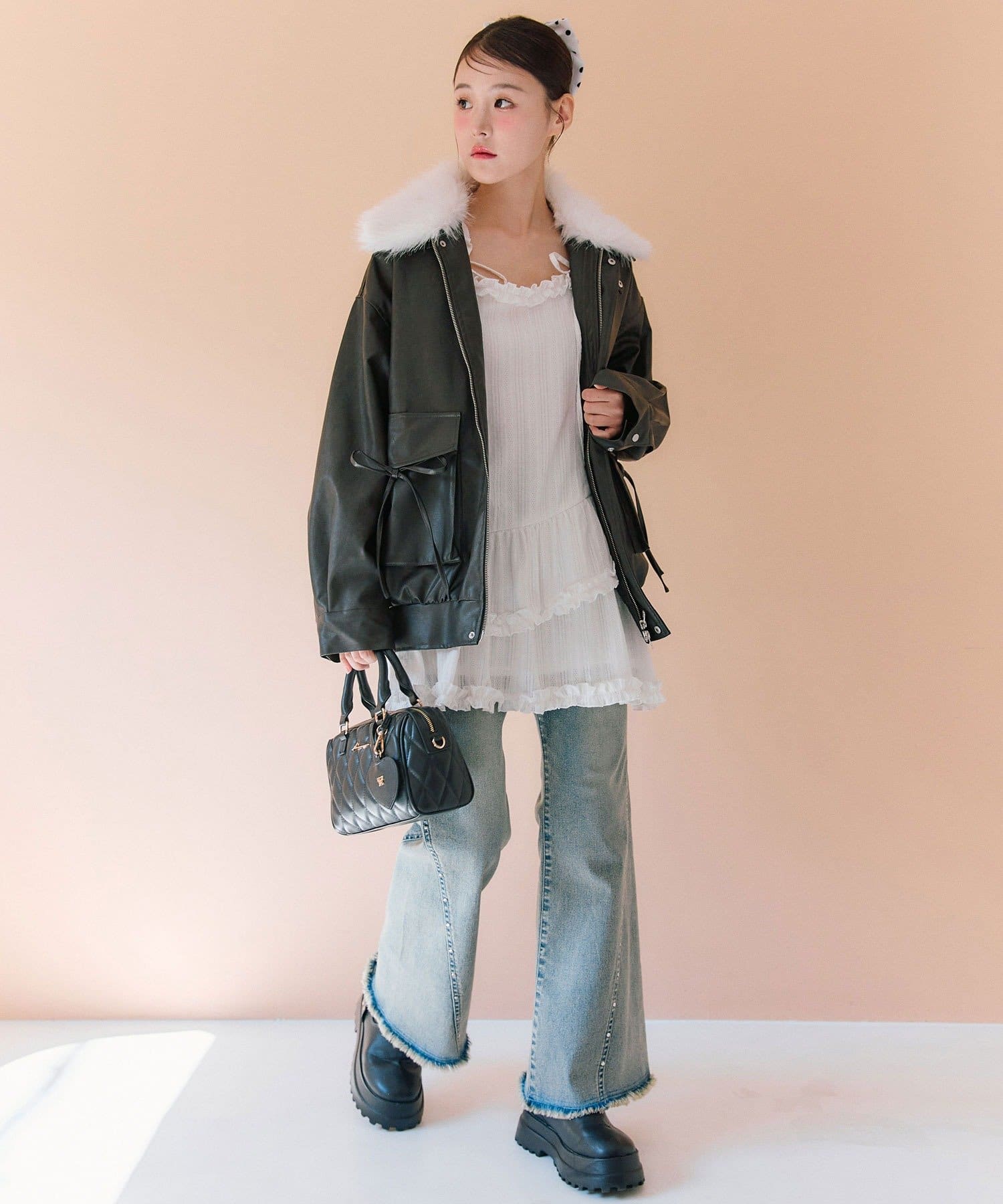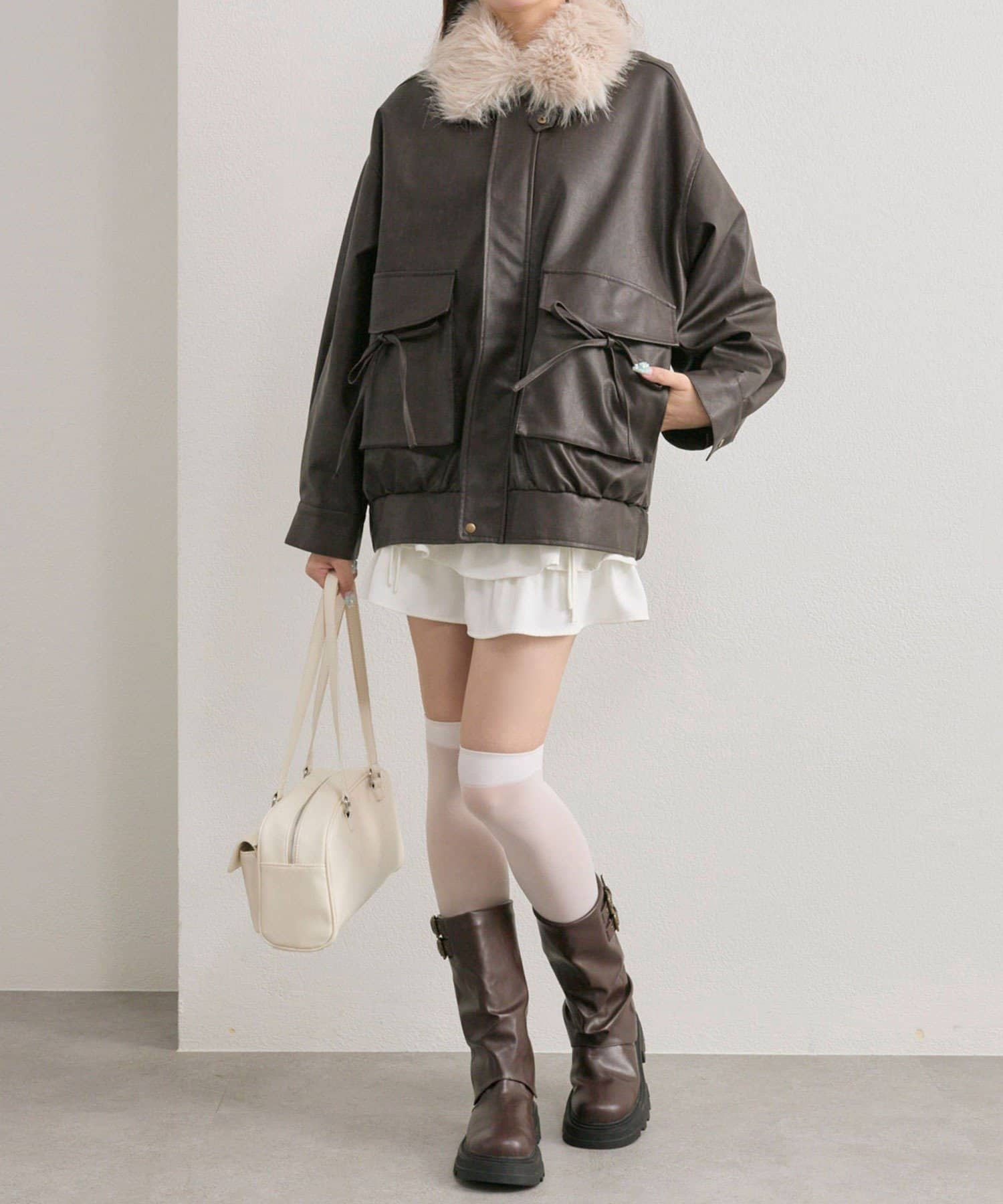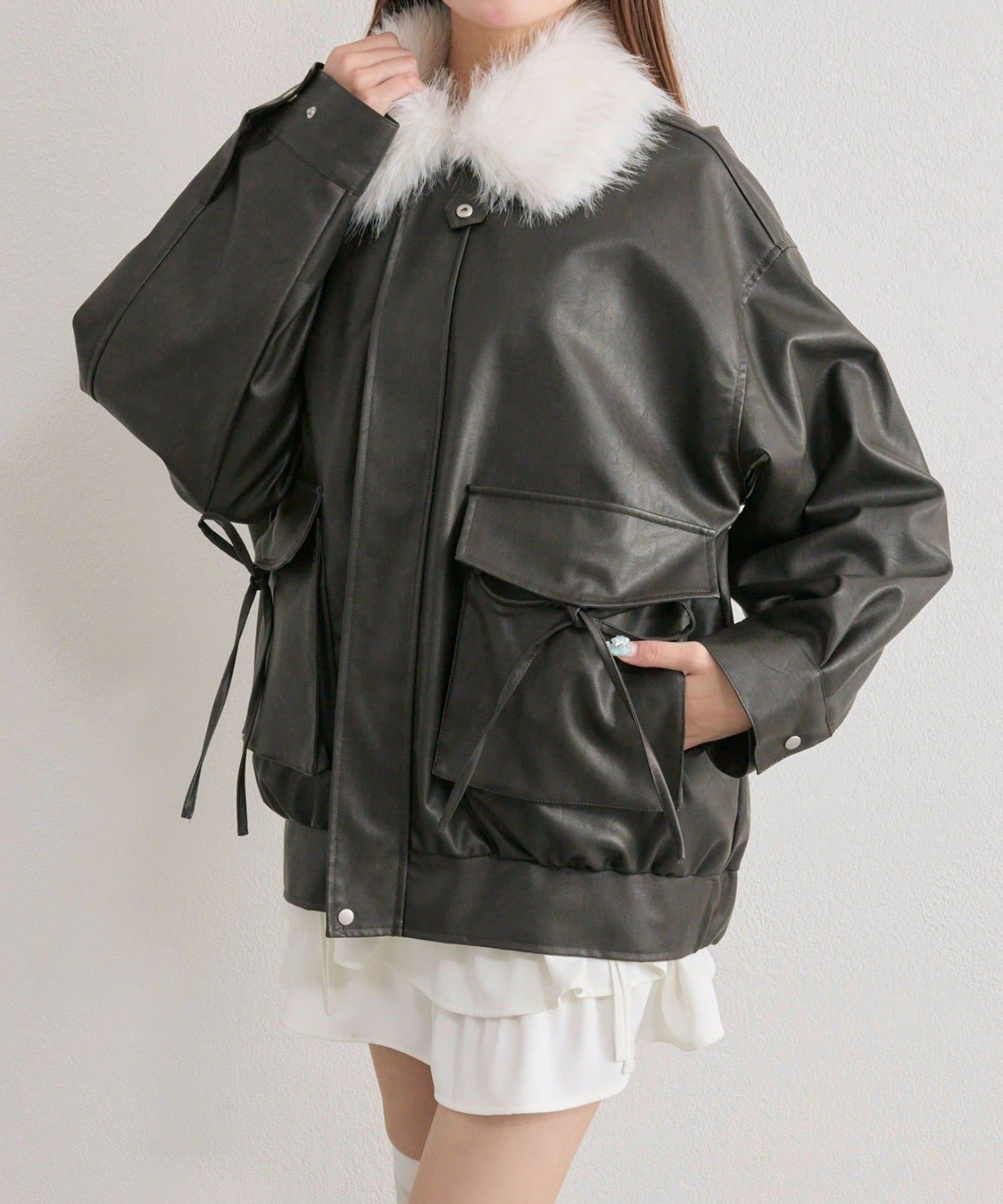 ・リボンやファーティペットは取り外し可能でシンプルなレザージャケットとしても着用していただけます。
