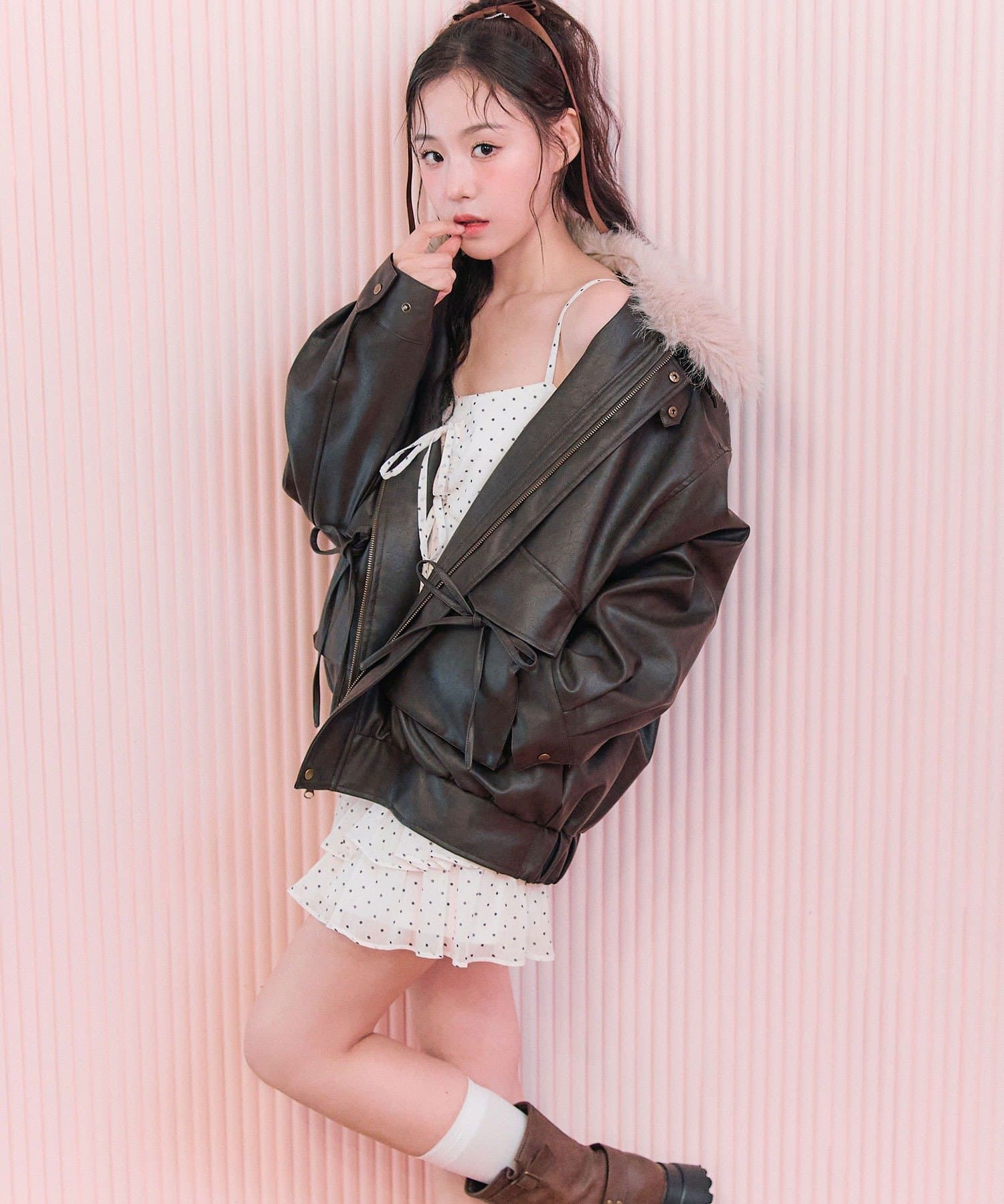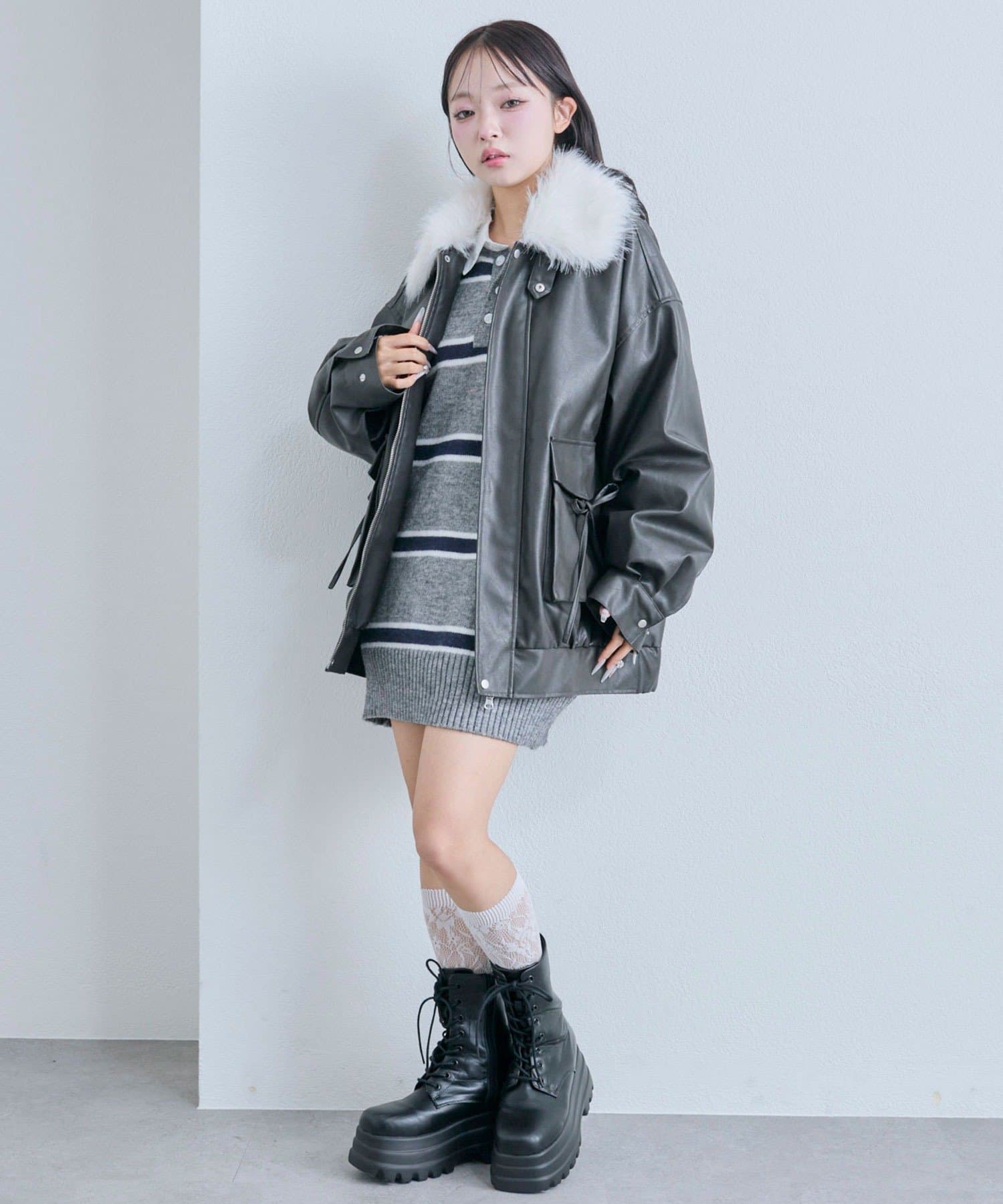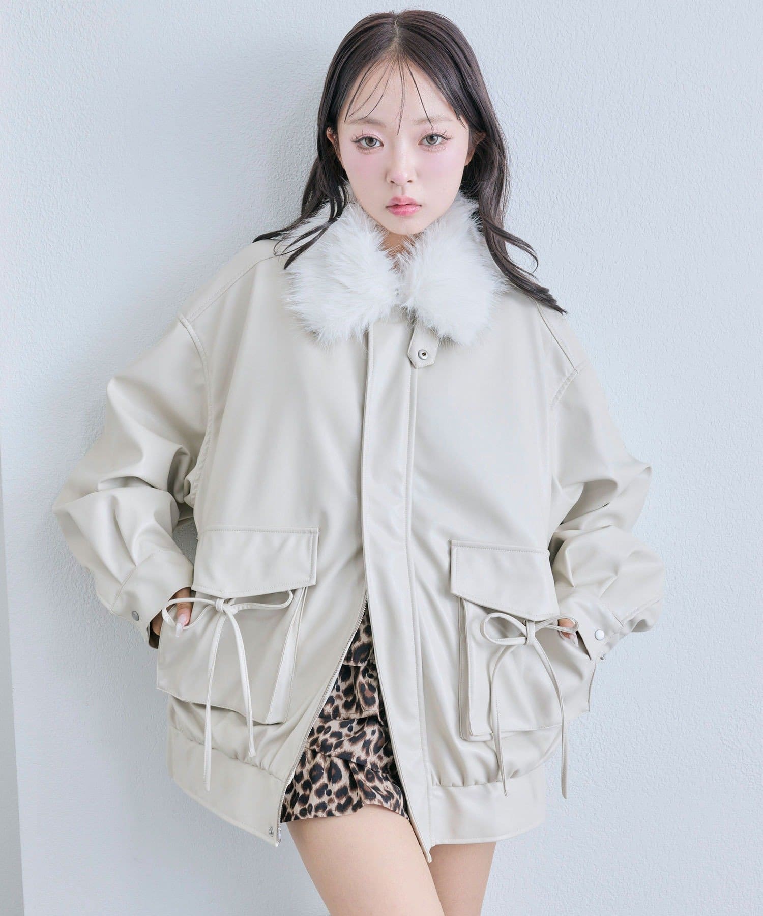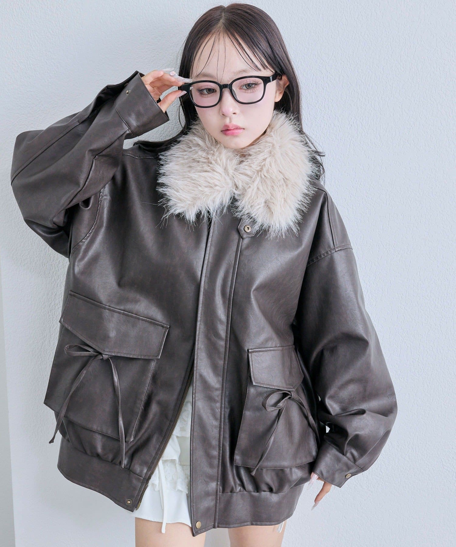 ・リボンやファーティペットは取り外し可能でシンプルなレザージャケットとしても着用していただけます。