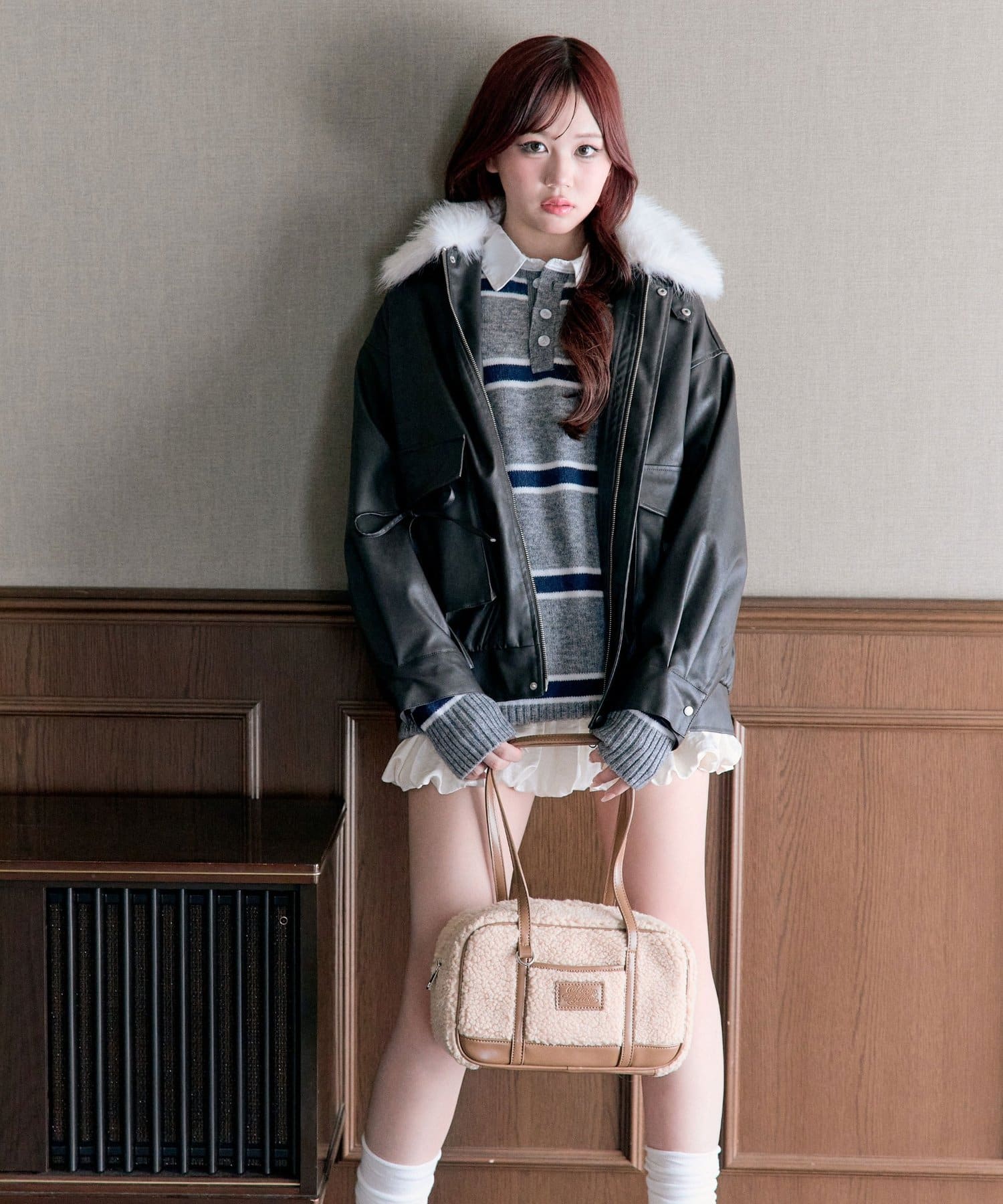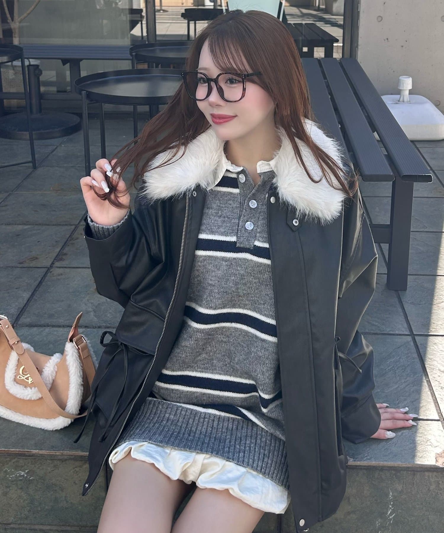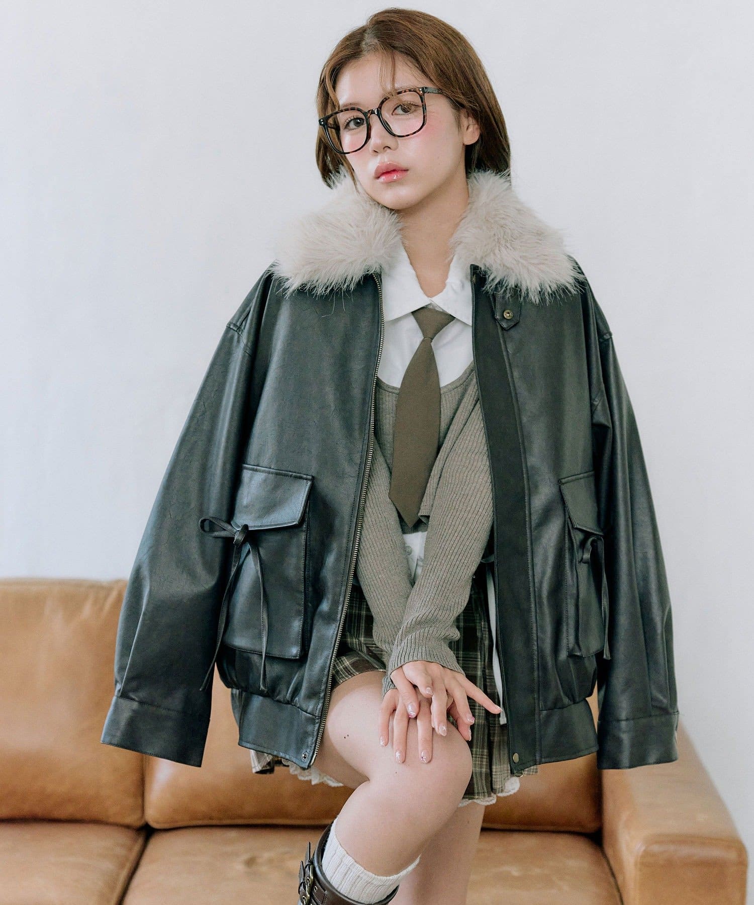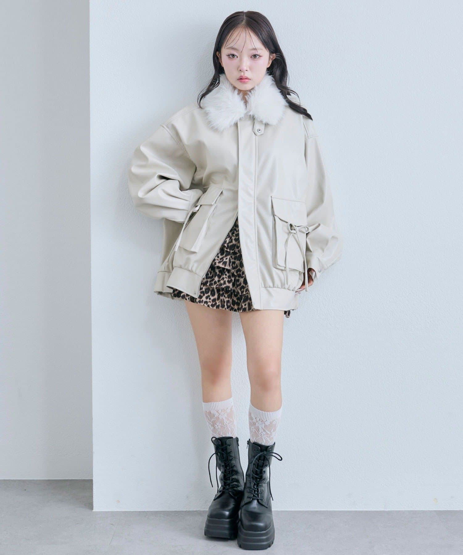 ・リボンやファーティペットは取り外し可能でシンプルなレザージャケットとしても着用していただけます。