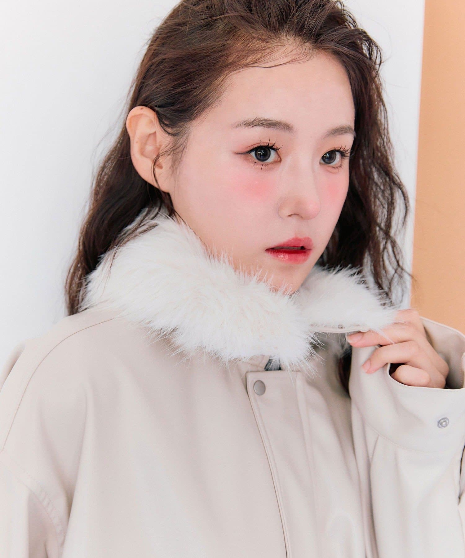 ・ファーティペットのカラーはアイボリーが同系色のアイボリー、ブラウンはモカ、ブラックはオフを使用しています。