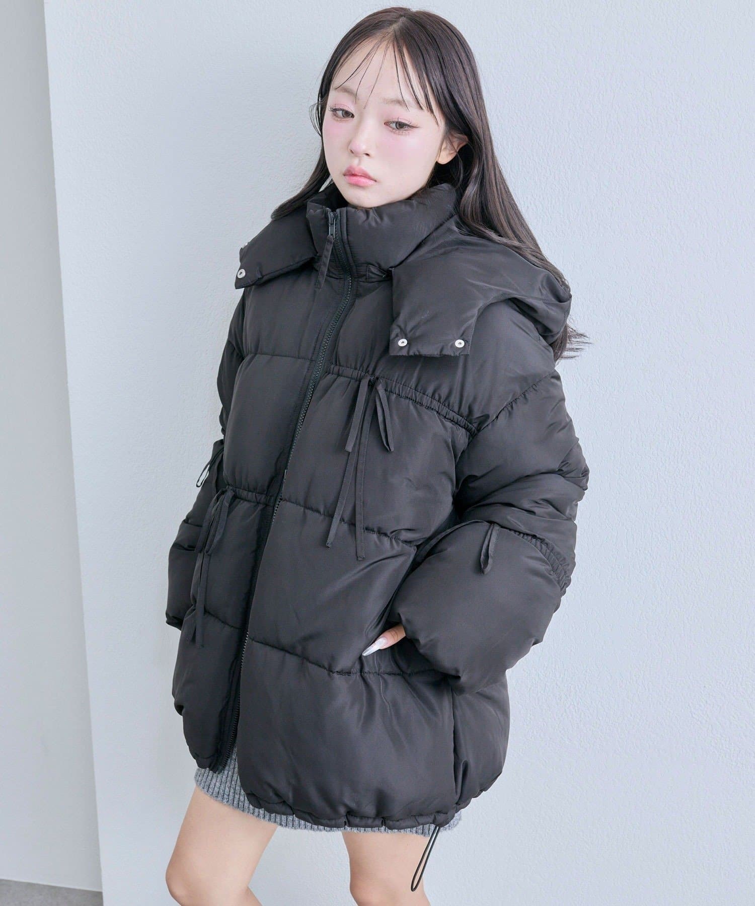 リボンエコダウンミドル丈ブルゾン