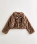 ・高見えする毛足の長いファー素材にリボンがかわいい、ガーリーデザインのアウター。