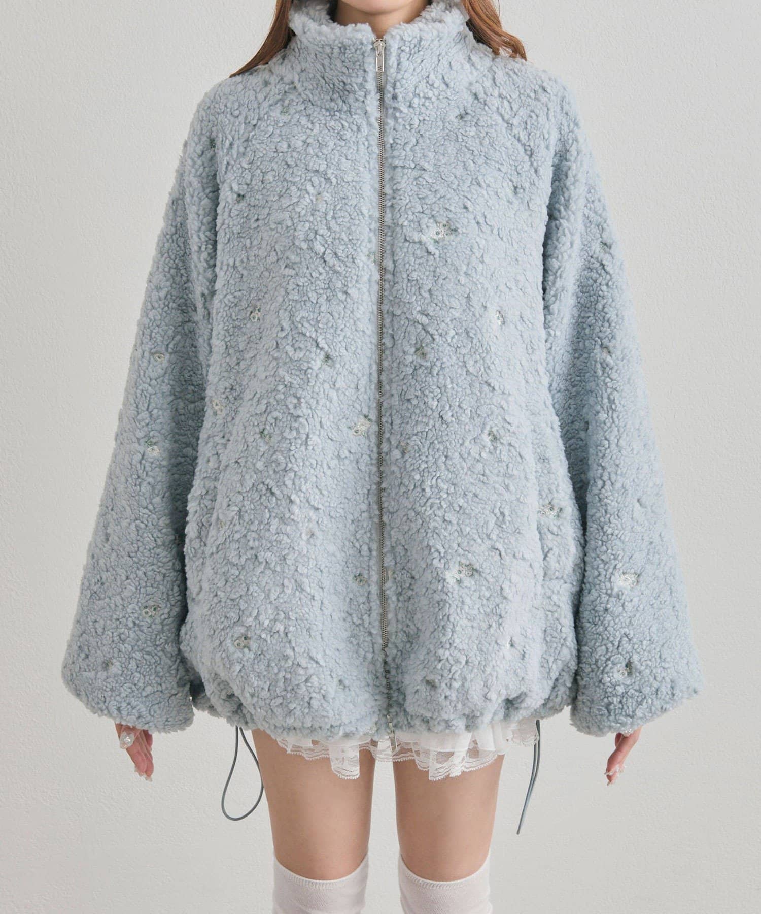 ・全体に散りばめられた花刺繍が、カジュアルなボアにフェミニンさをプラスするデザイン。