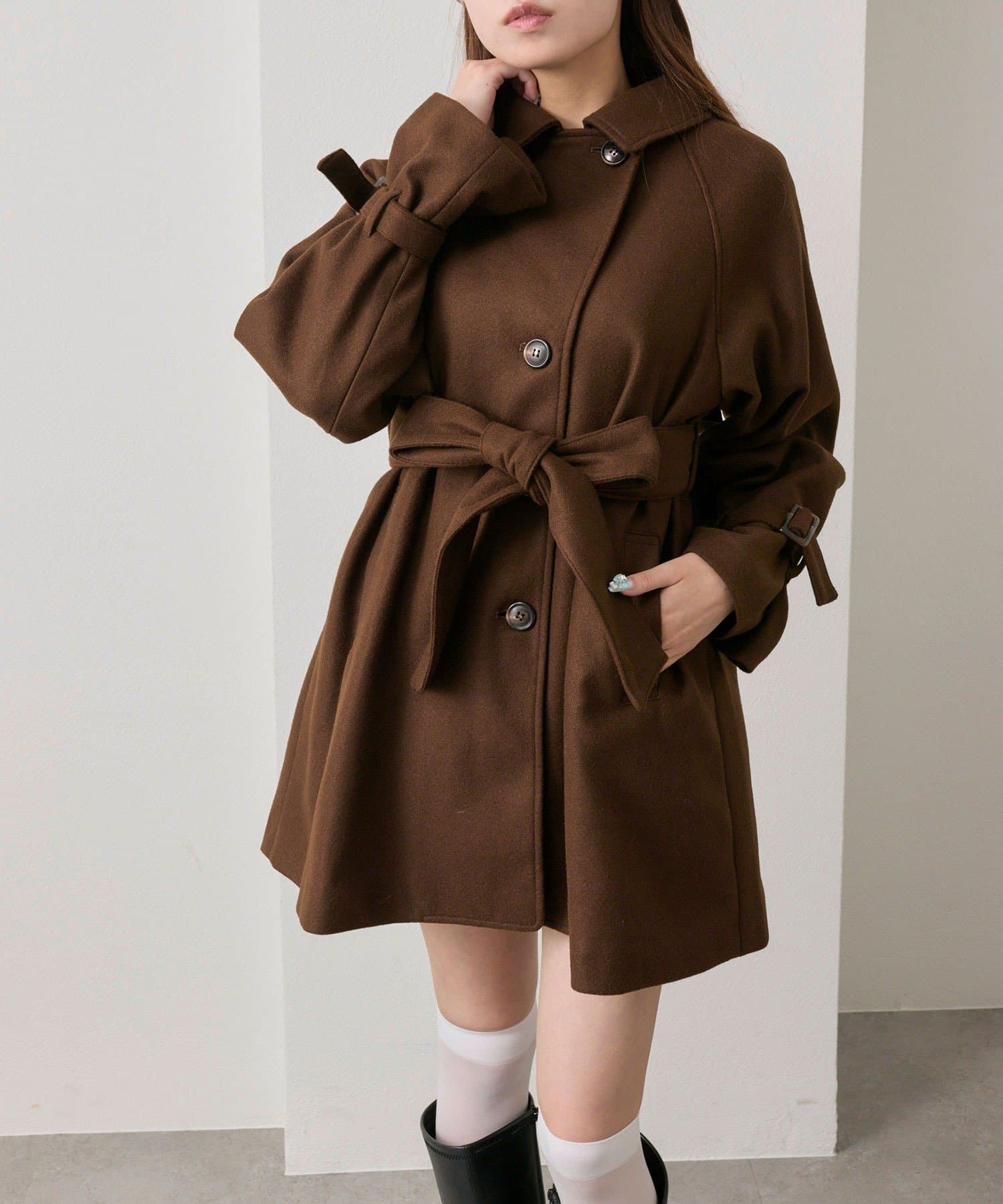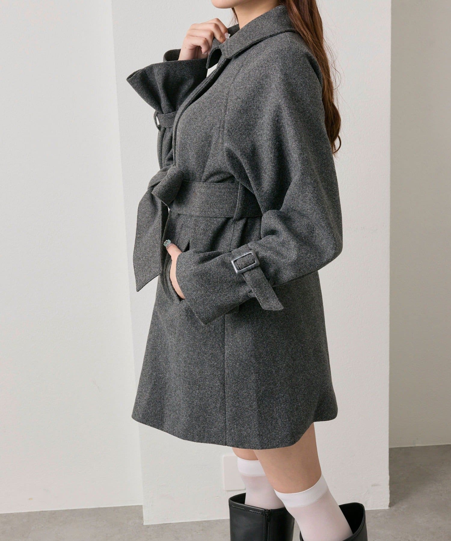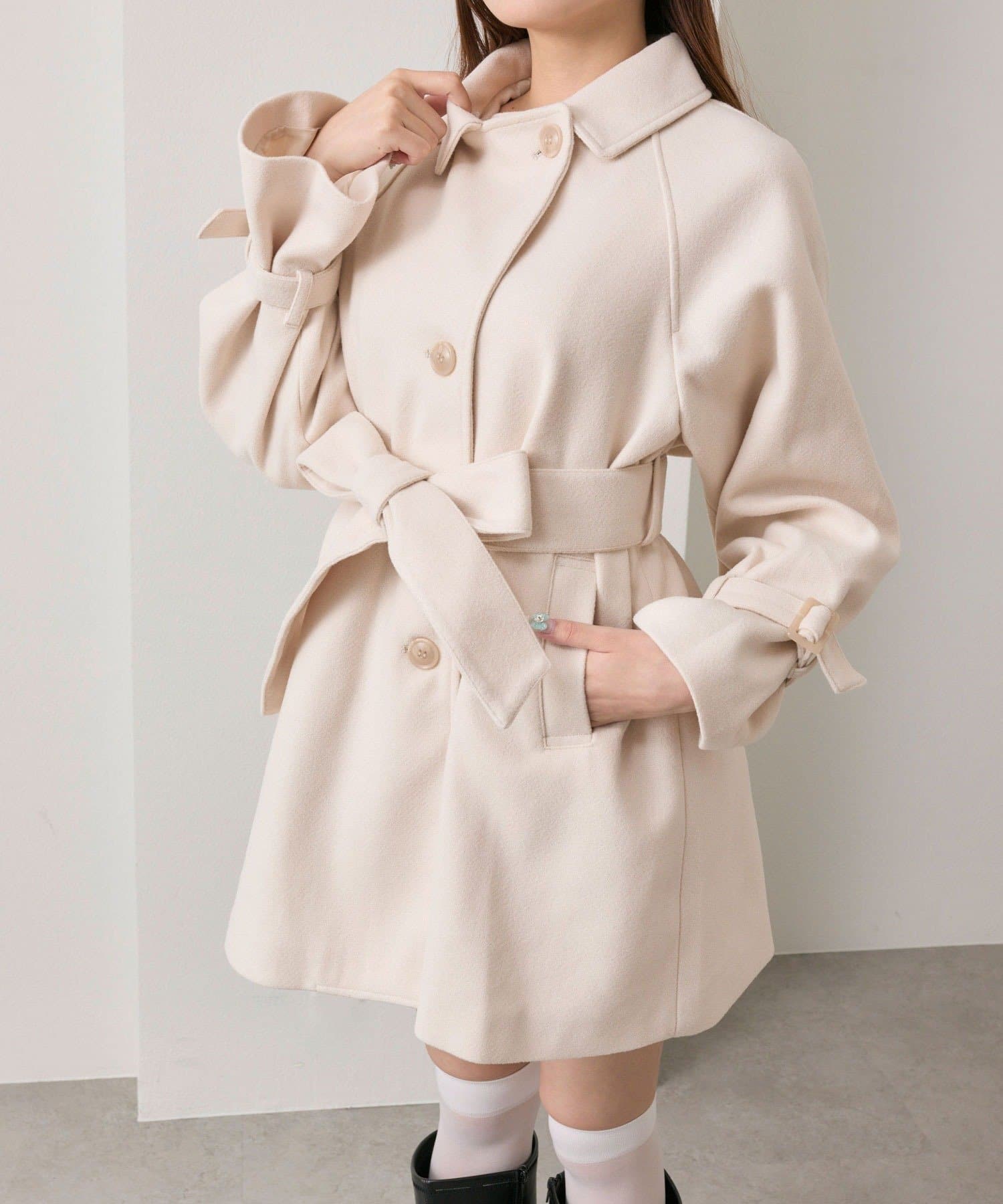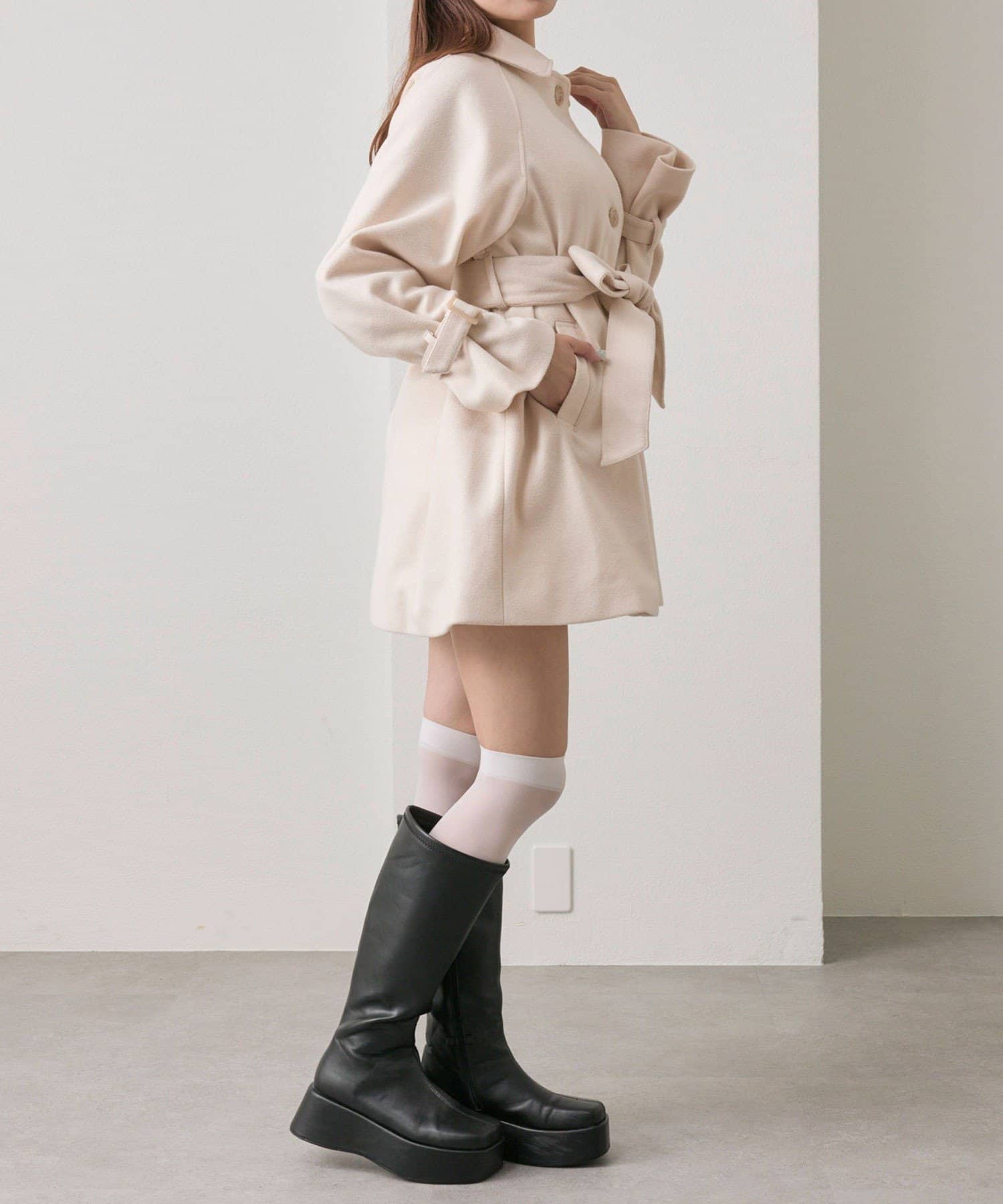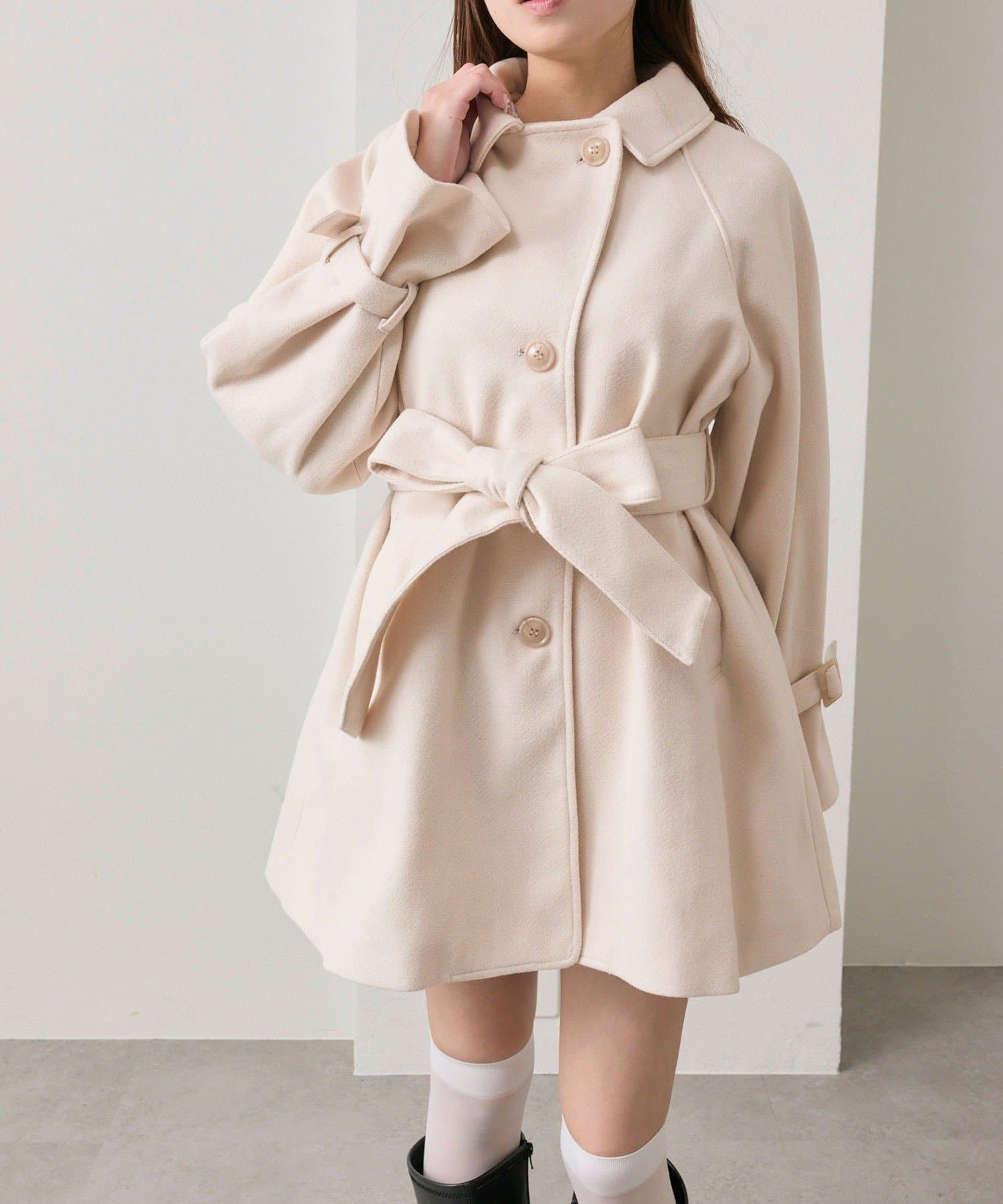 女の子らしさを引き立てるミドル丈コート