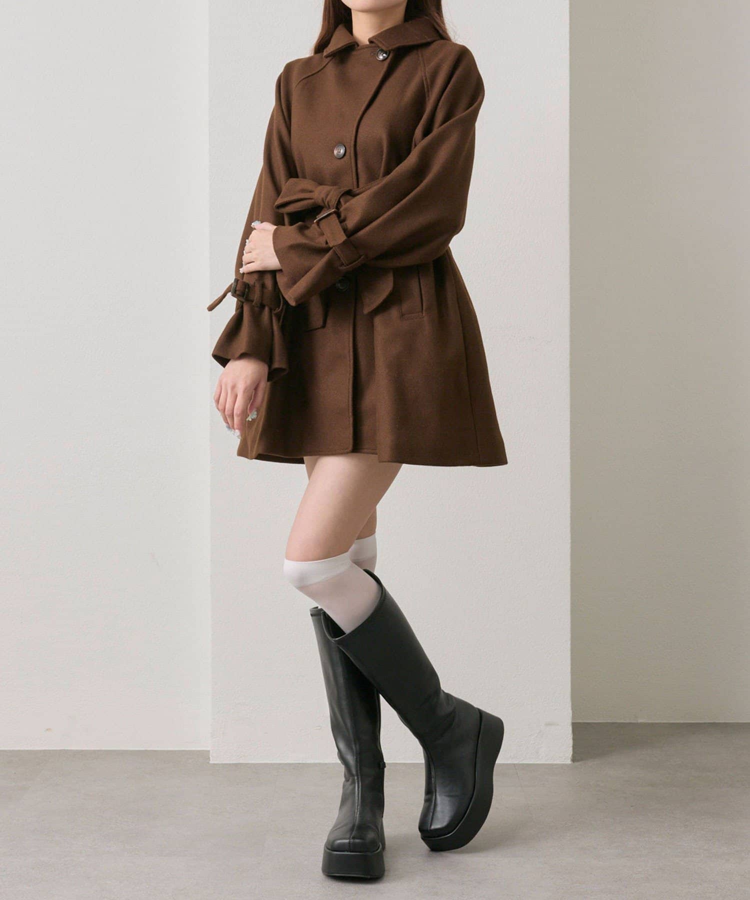 ・袖にはベルト付きで、女の子らしいキャンディースリーブのシルエットに。