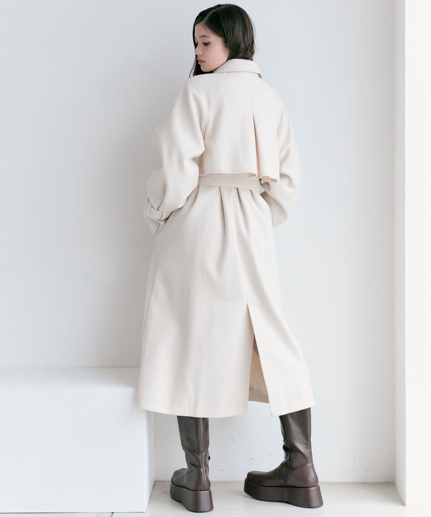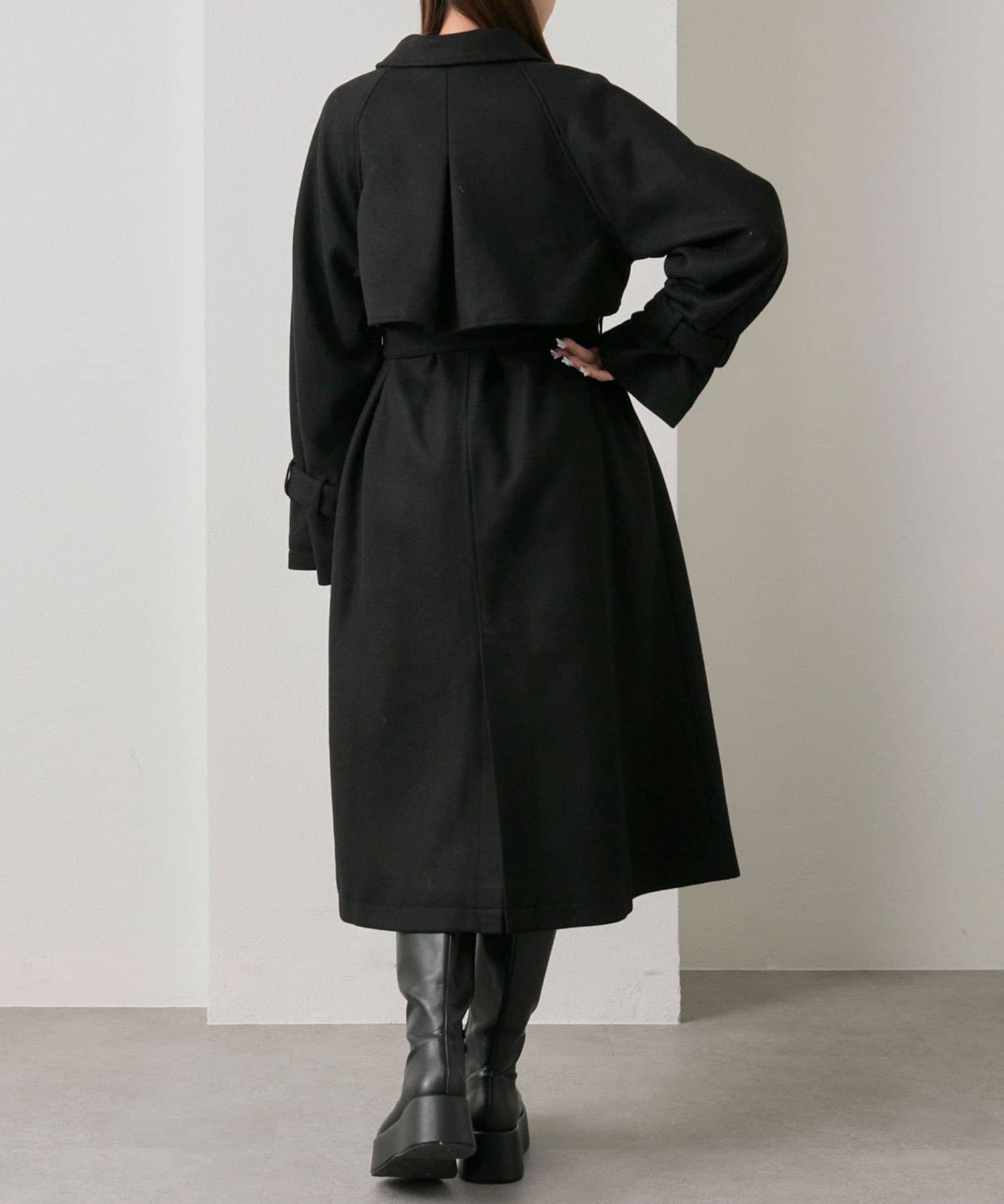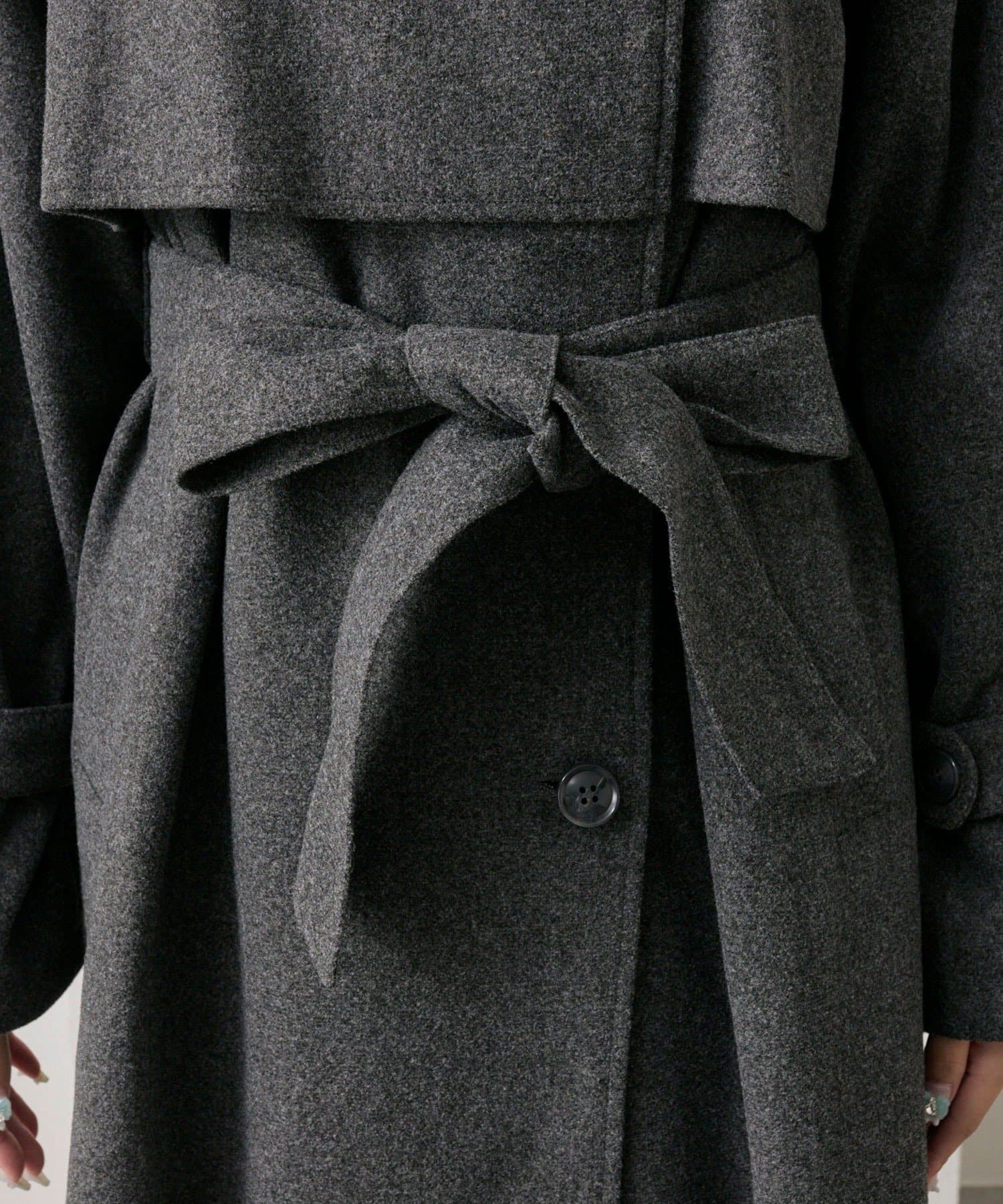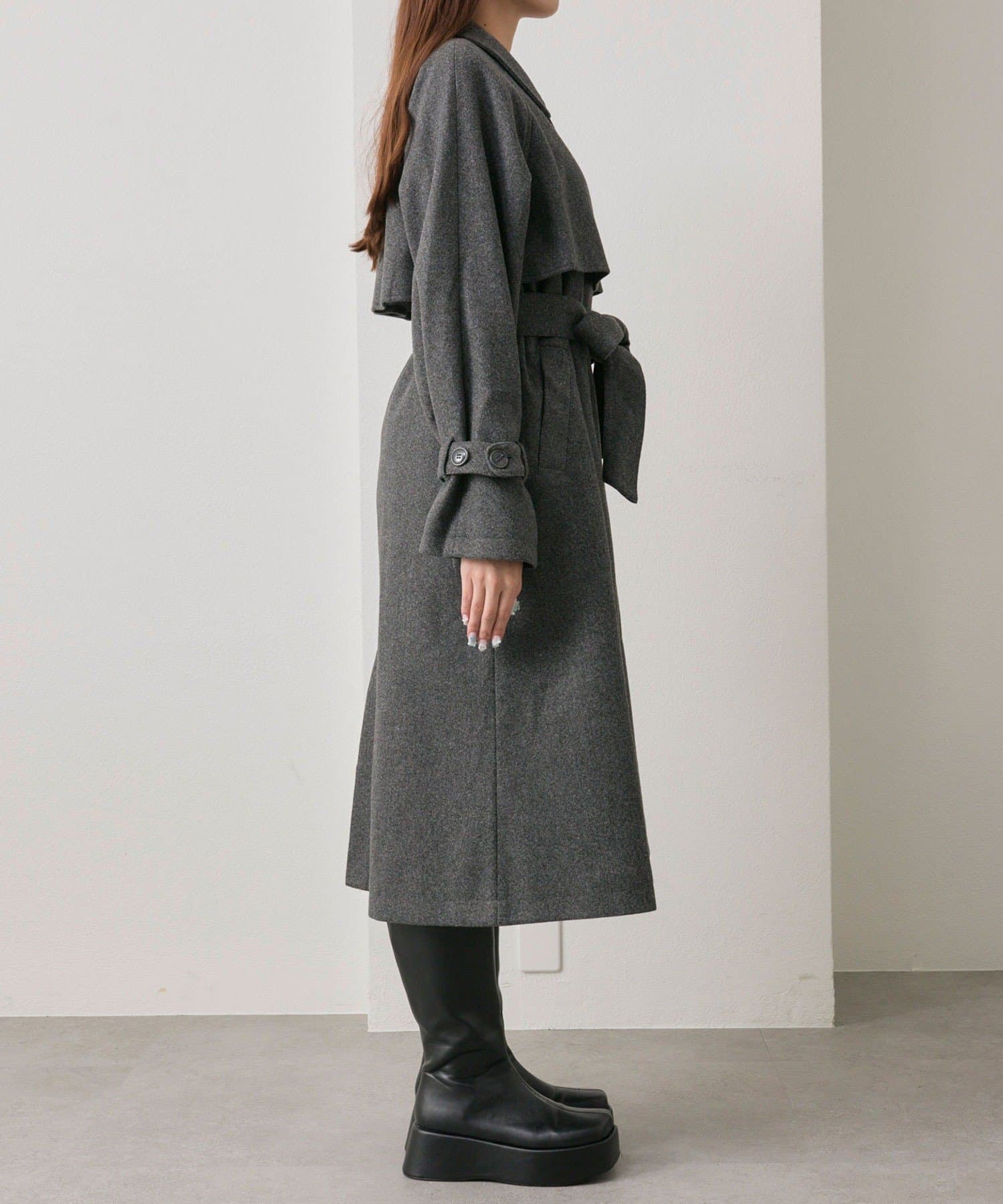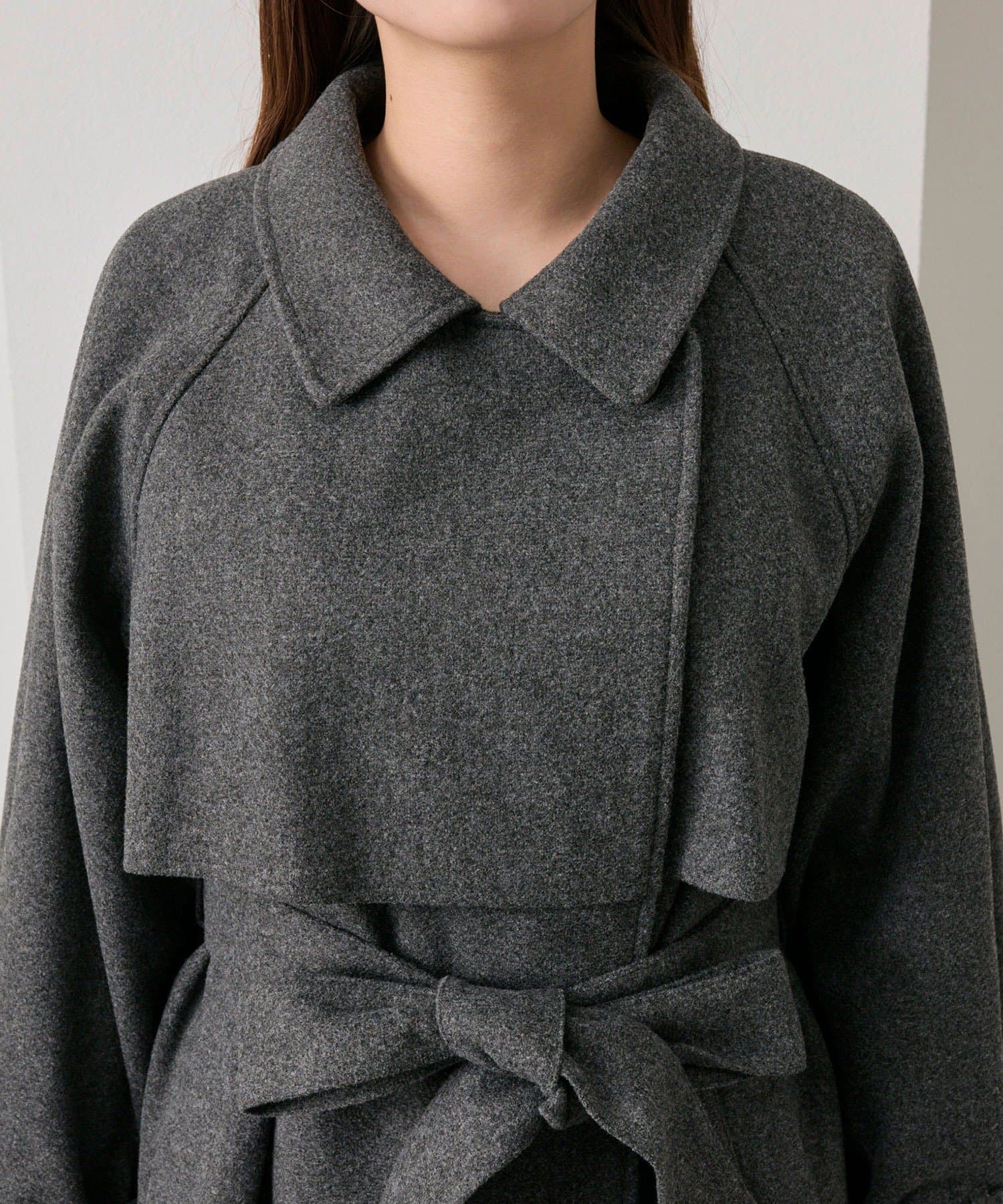 ・前を開けて着るときは後ろでベルトを結ぶとすっきりとしたシルエットで着用していただけます。