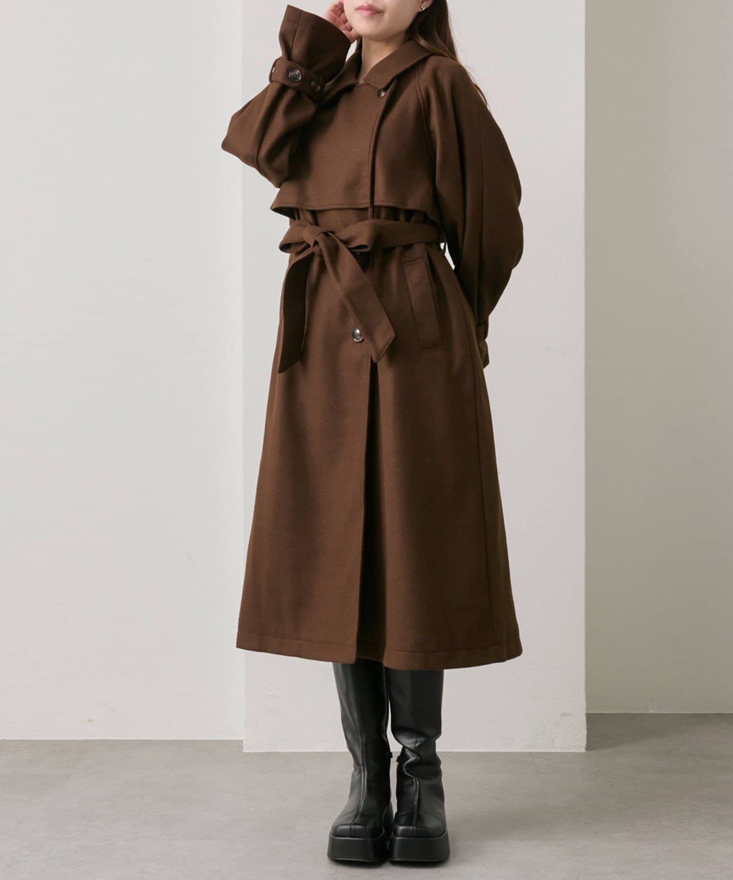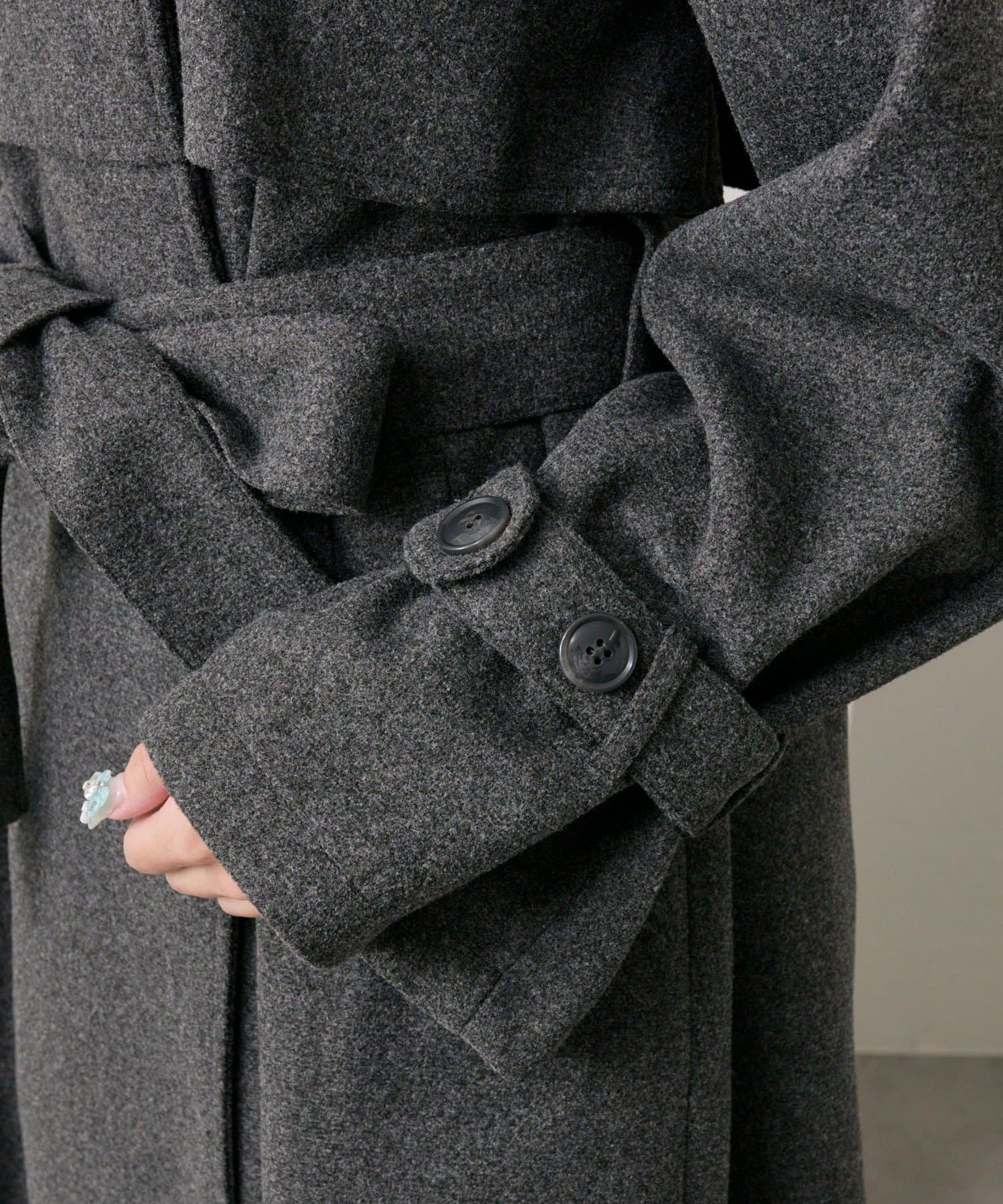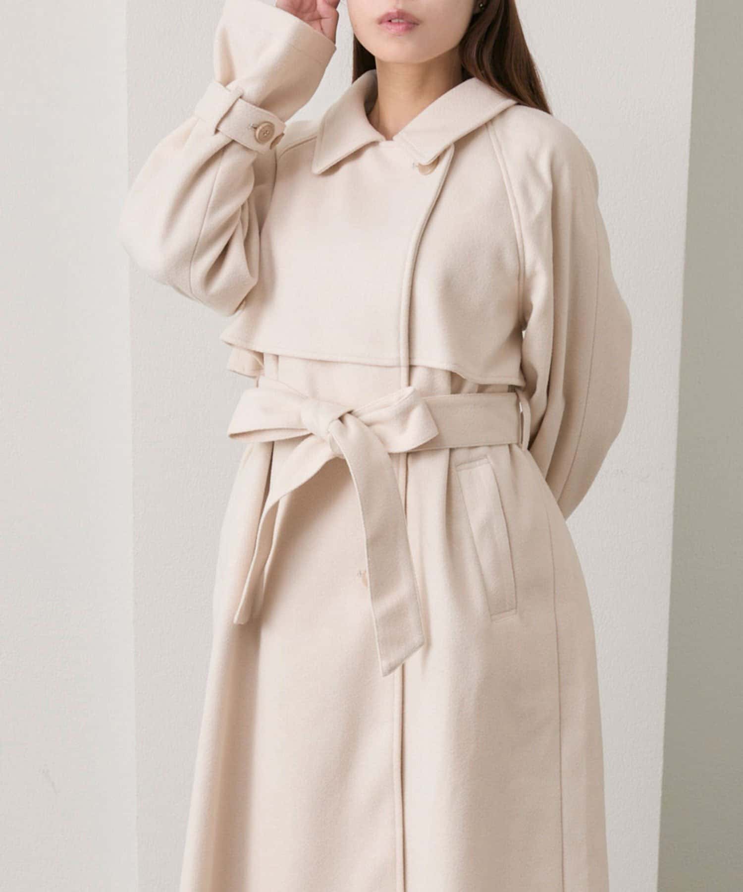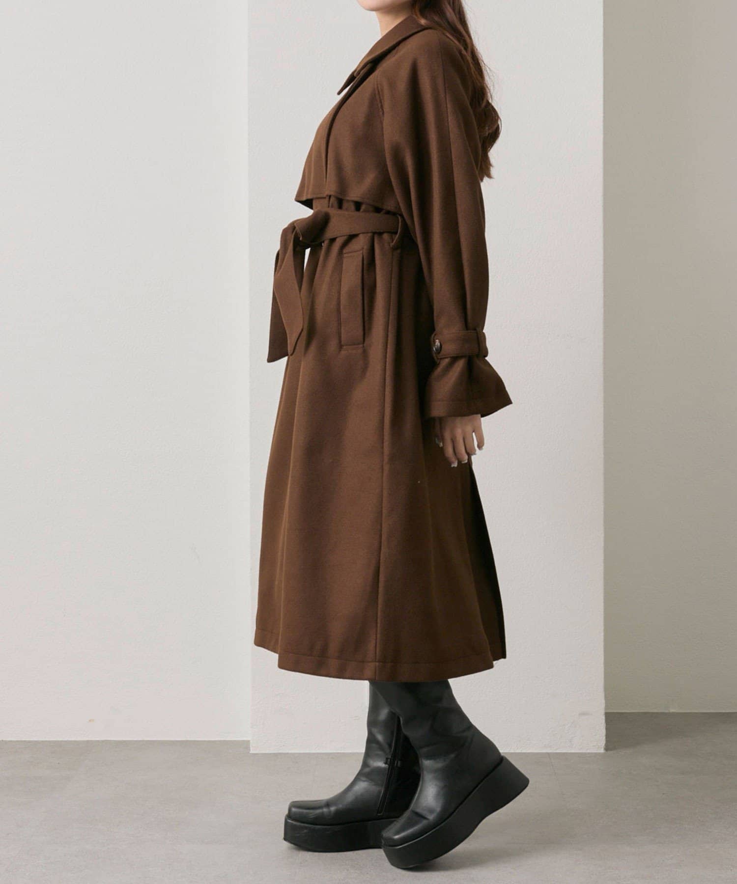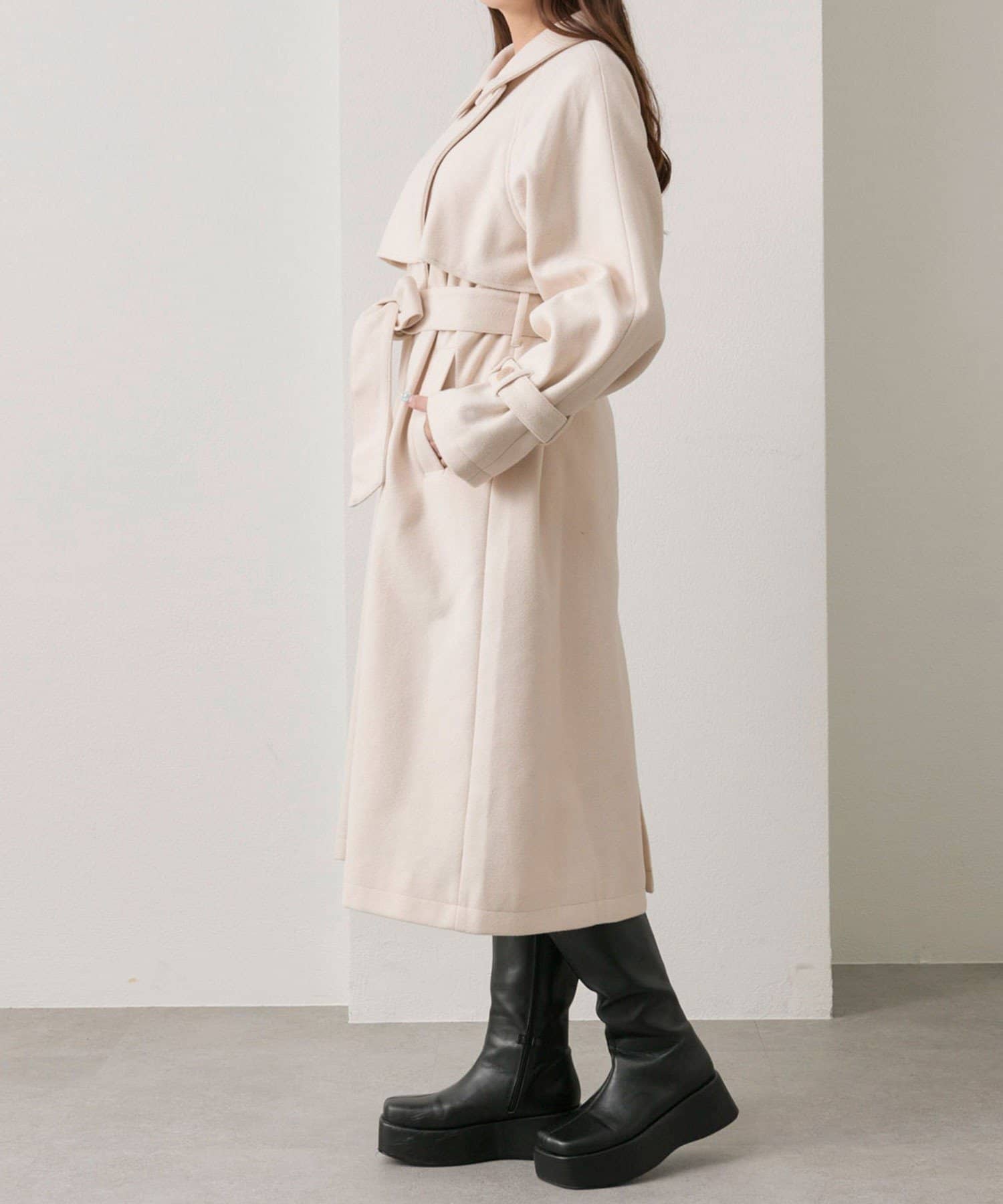 ・前を開けて着るときは後ろでベルトを結ぶとすっきりとしたシルエットで着用していただけます。