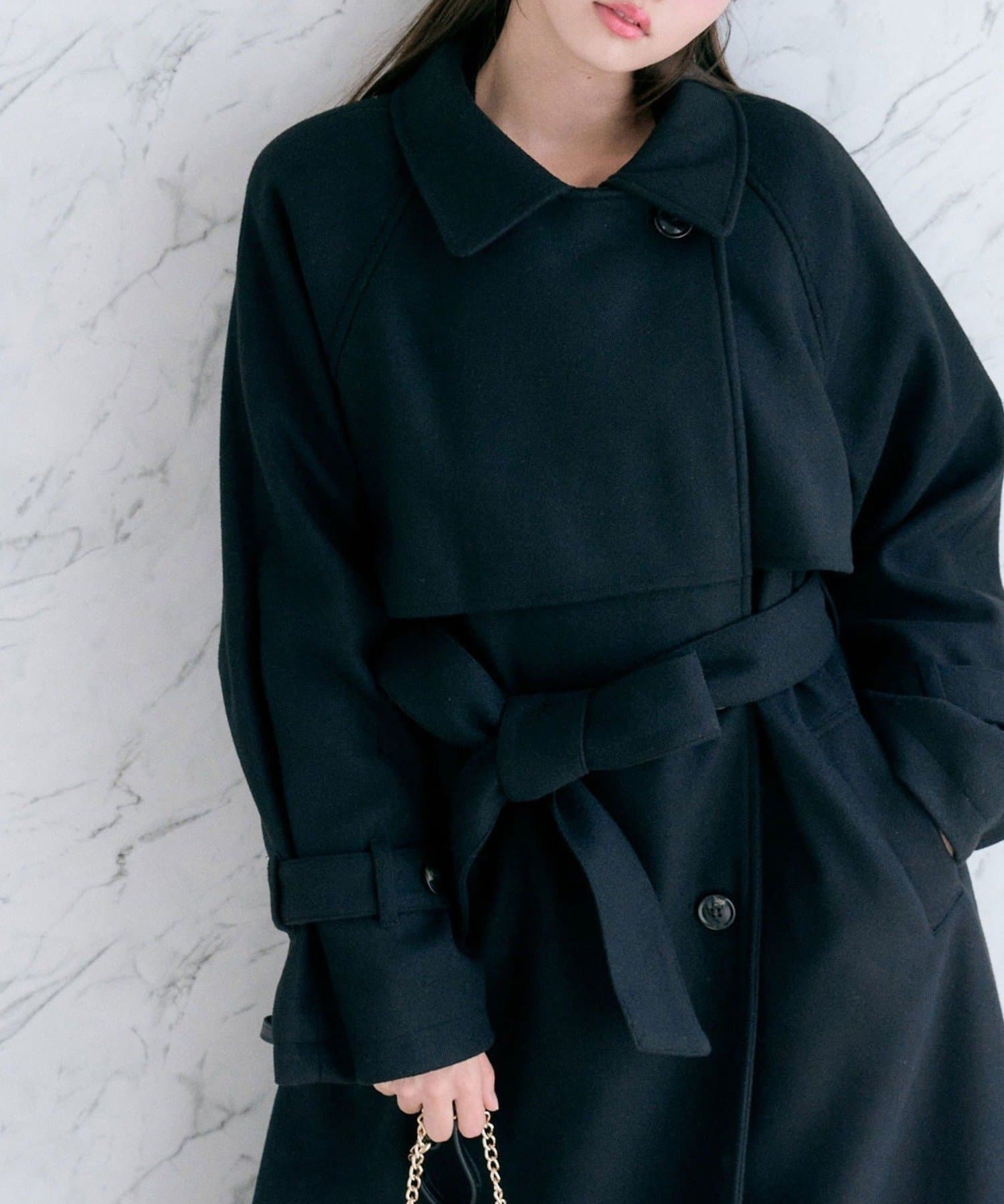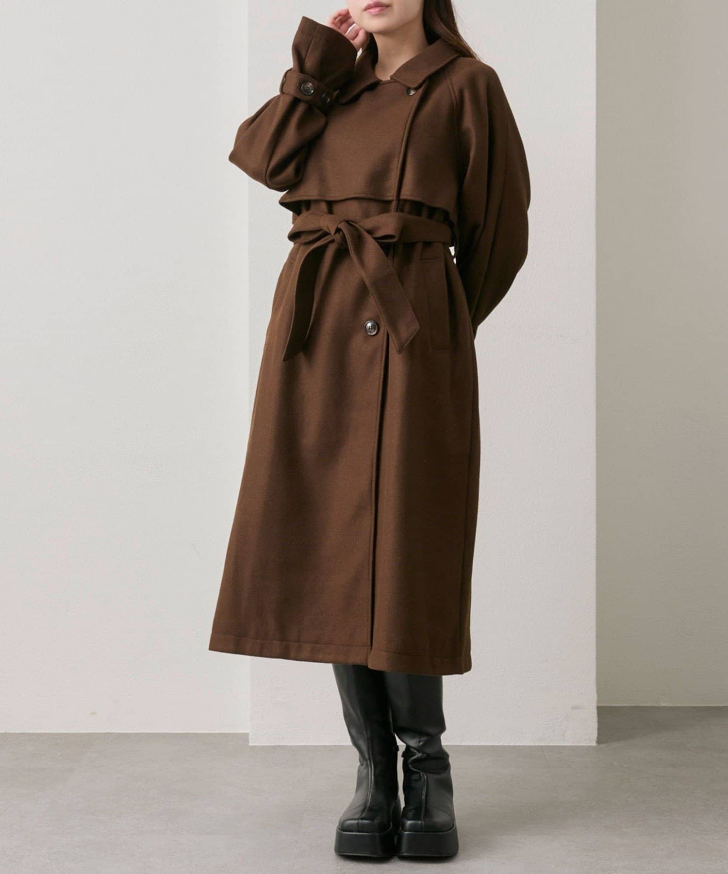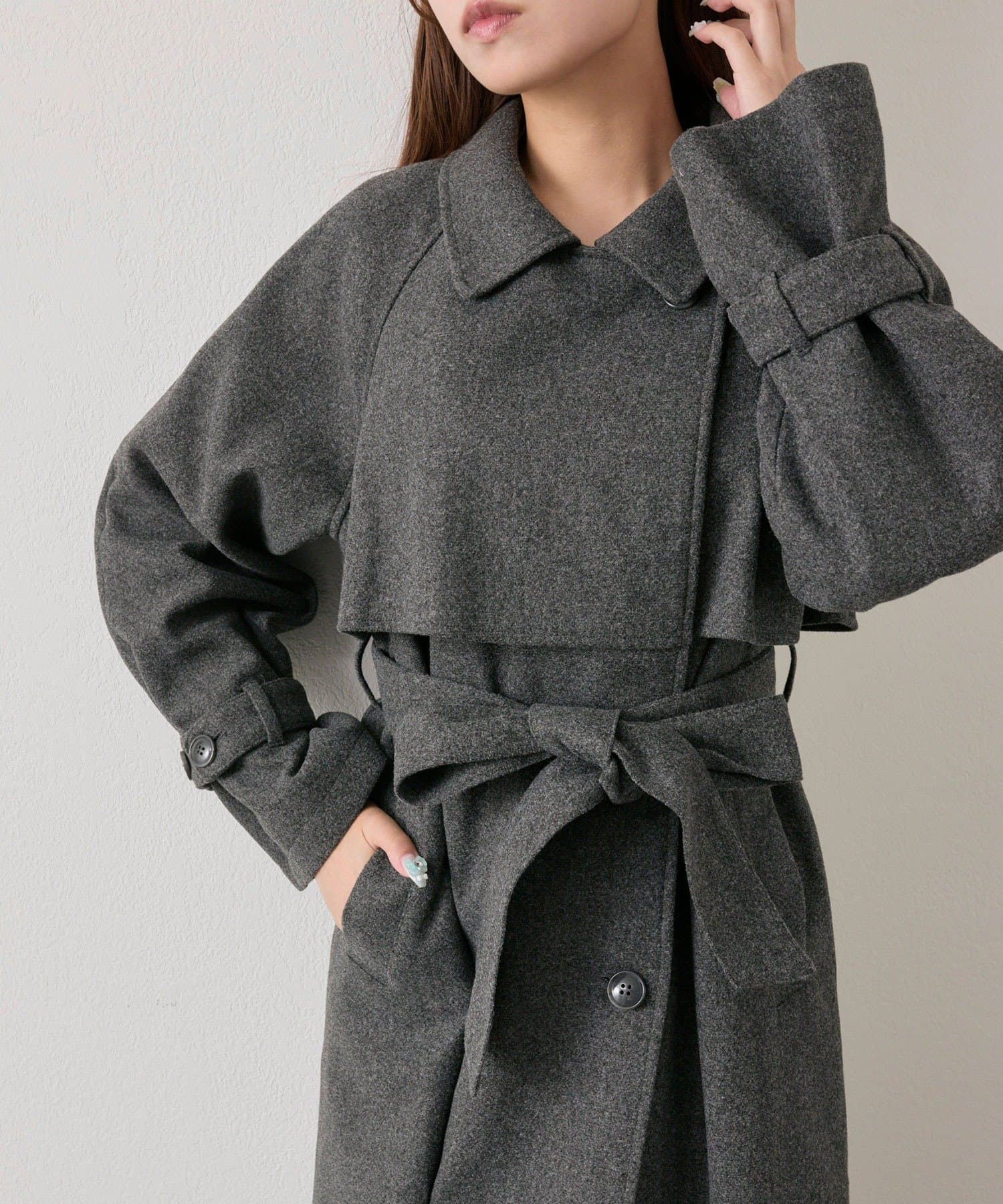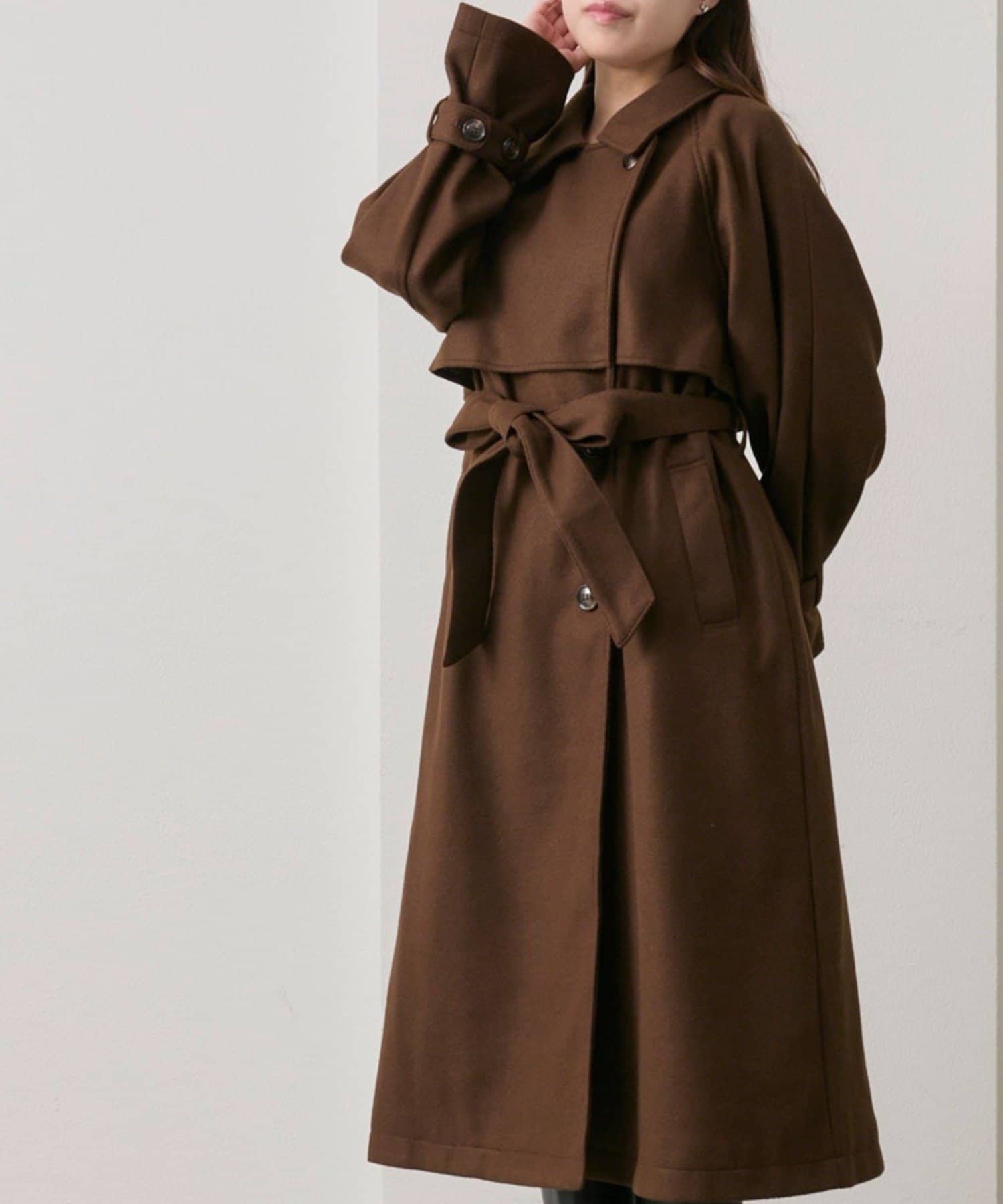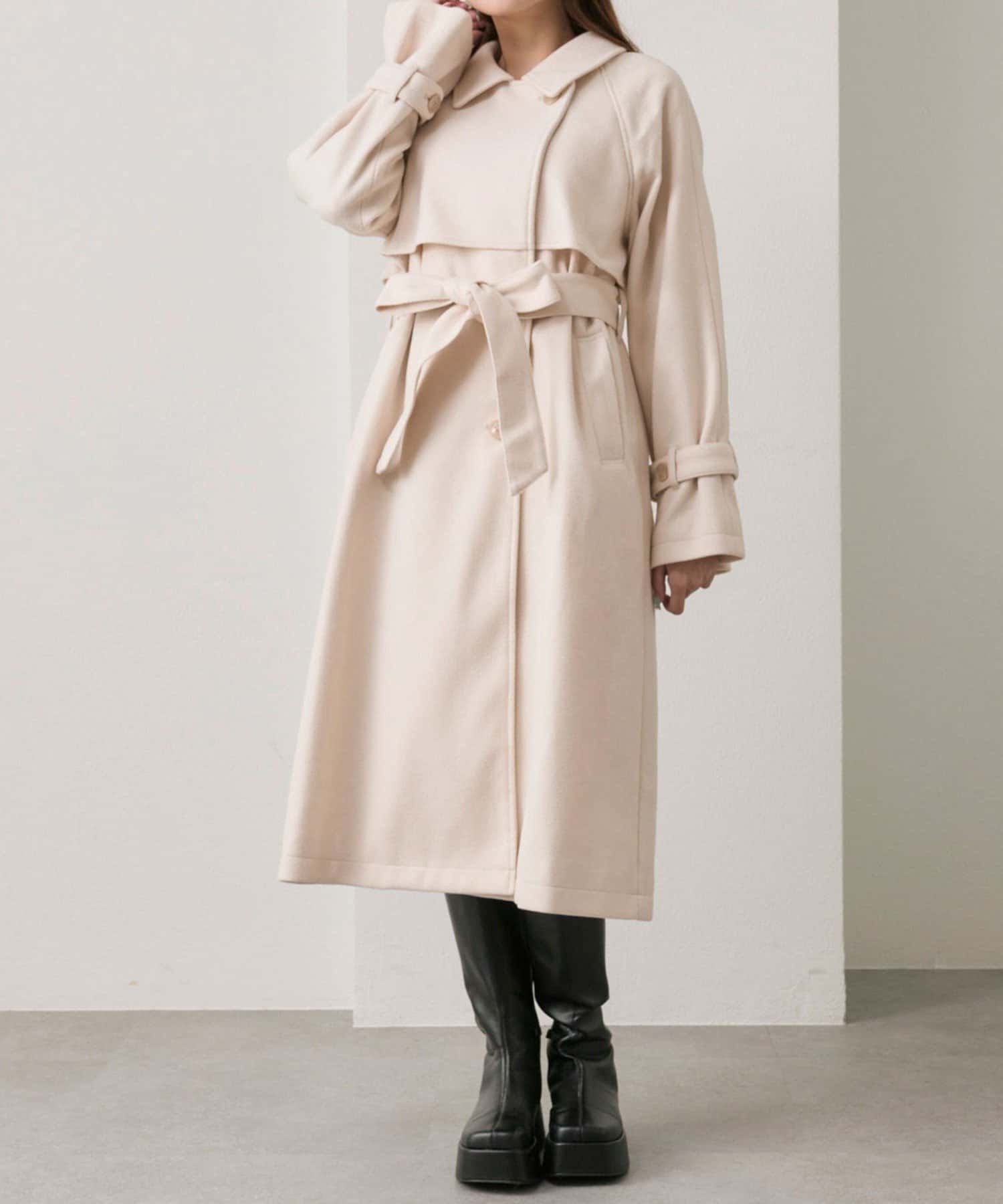 ・前を開けて着るときは後ろでベルトを結ぶとすっきりとしたシルエットで着用していただけます。