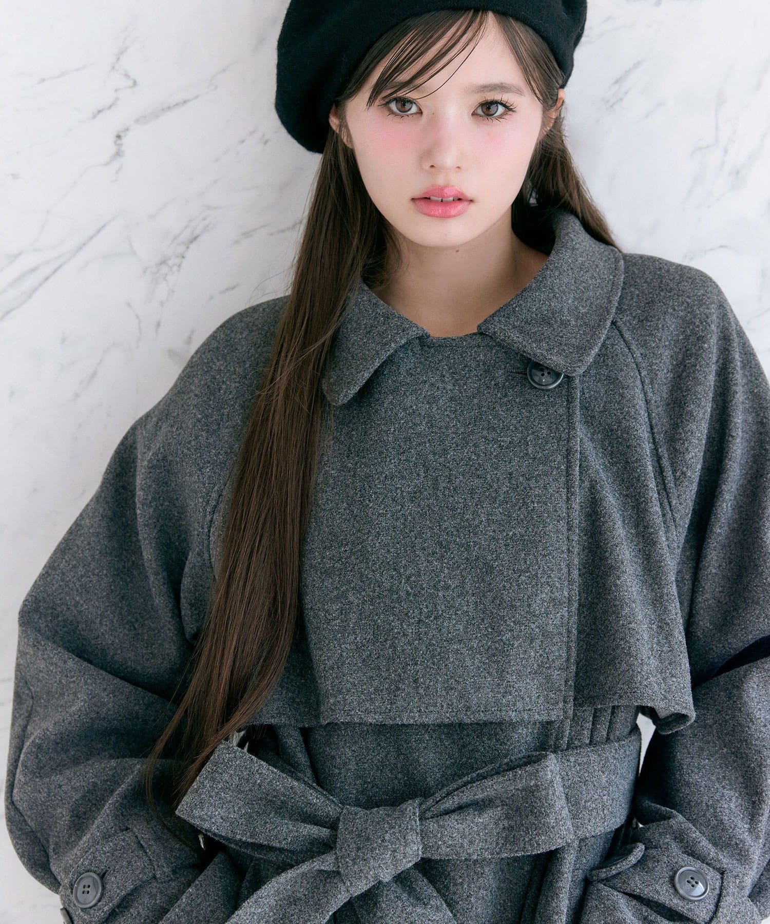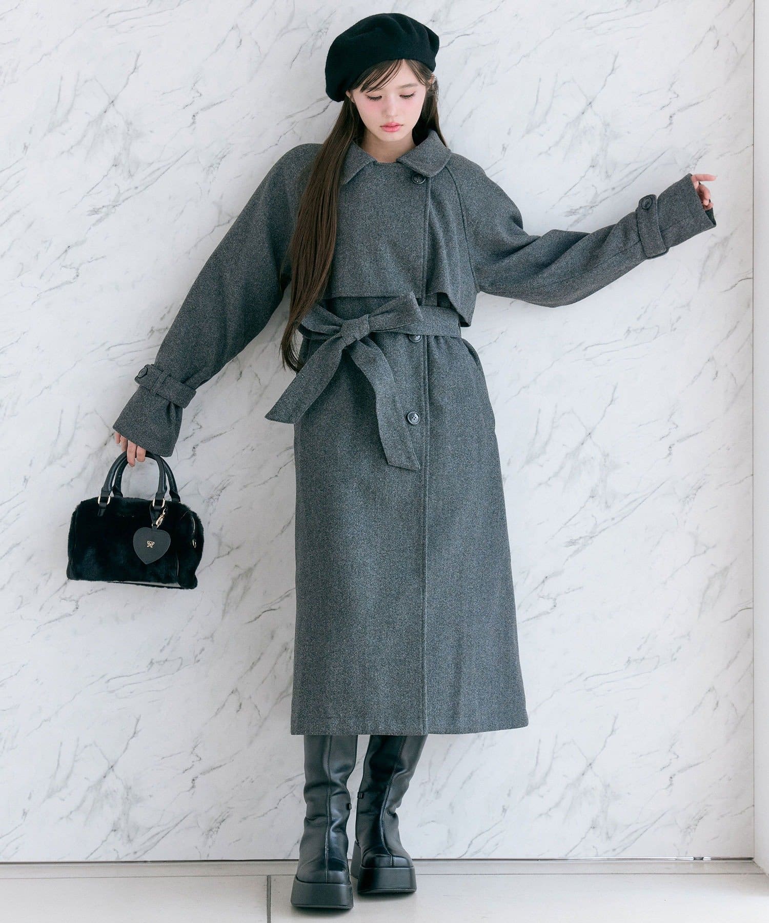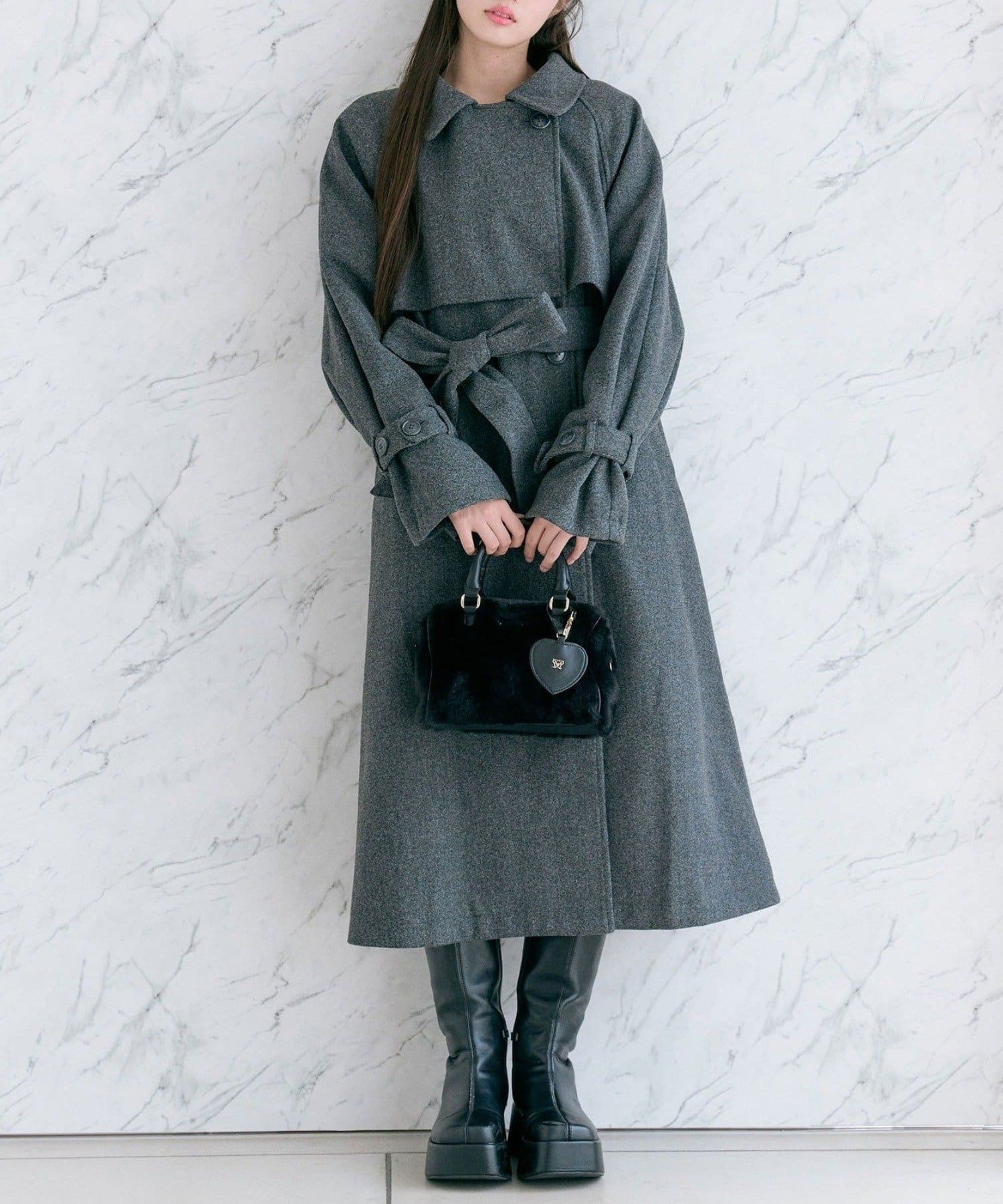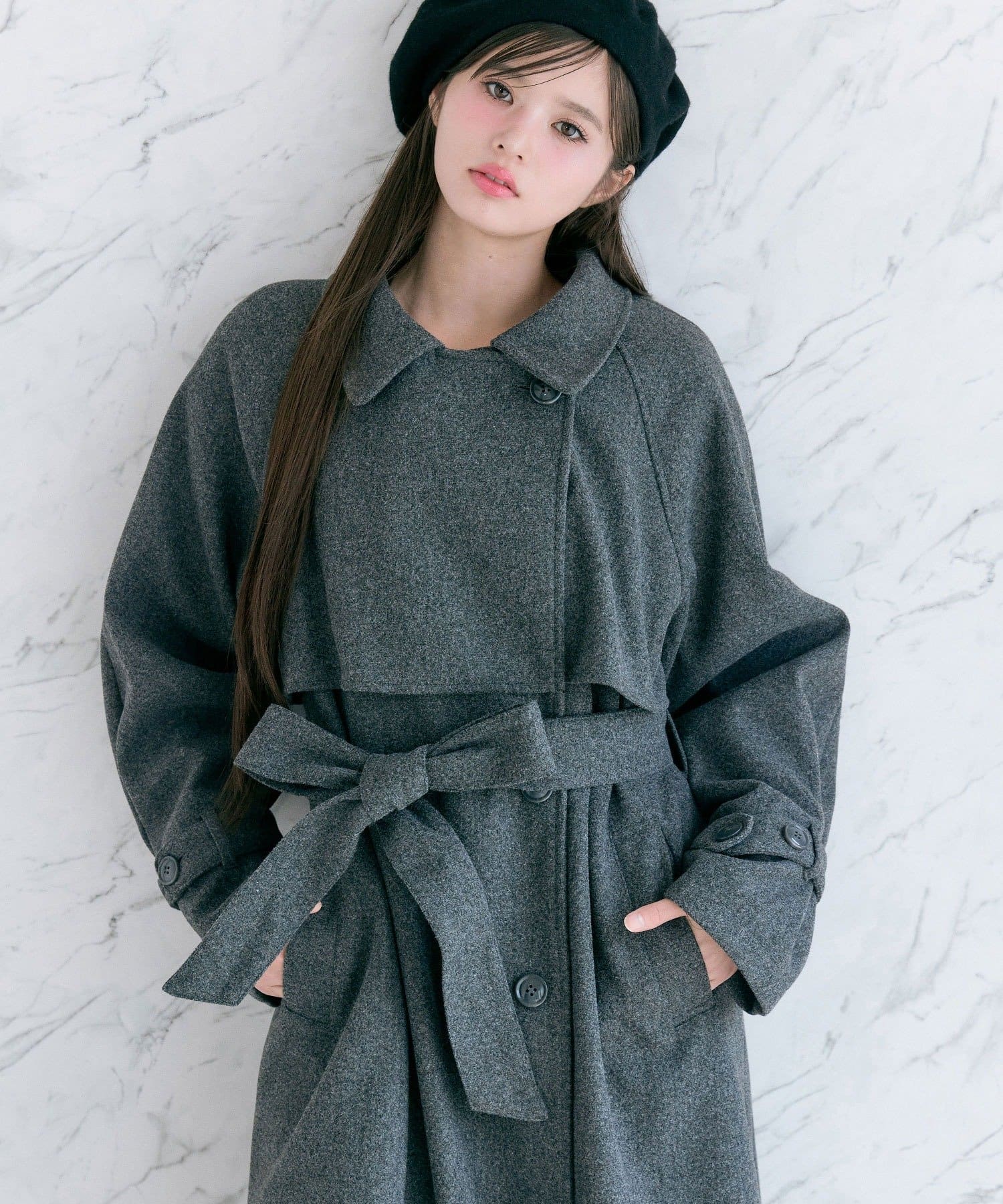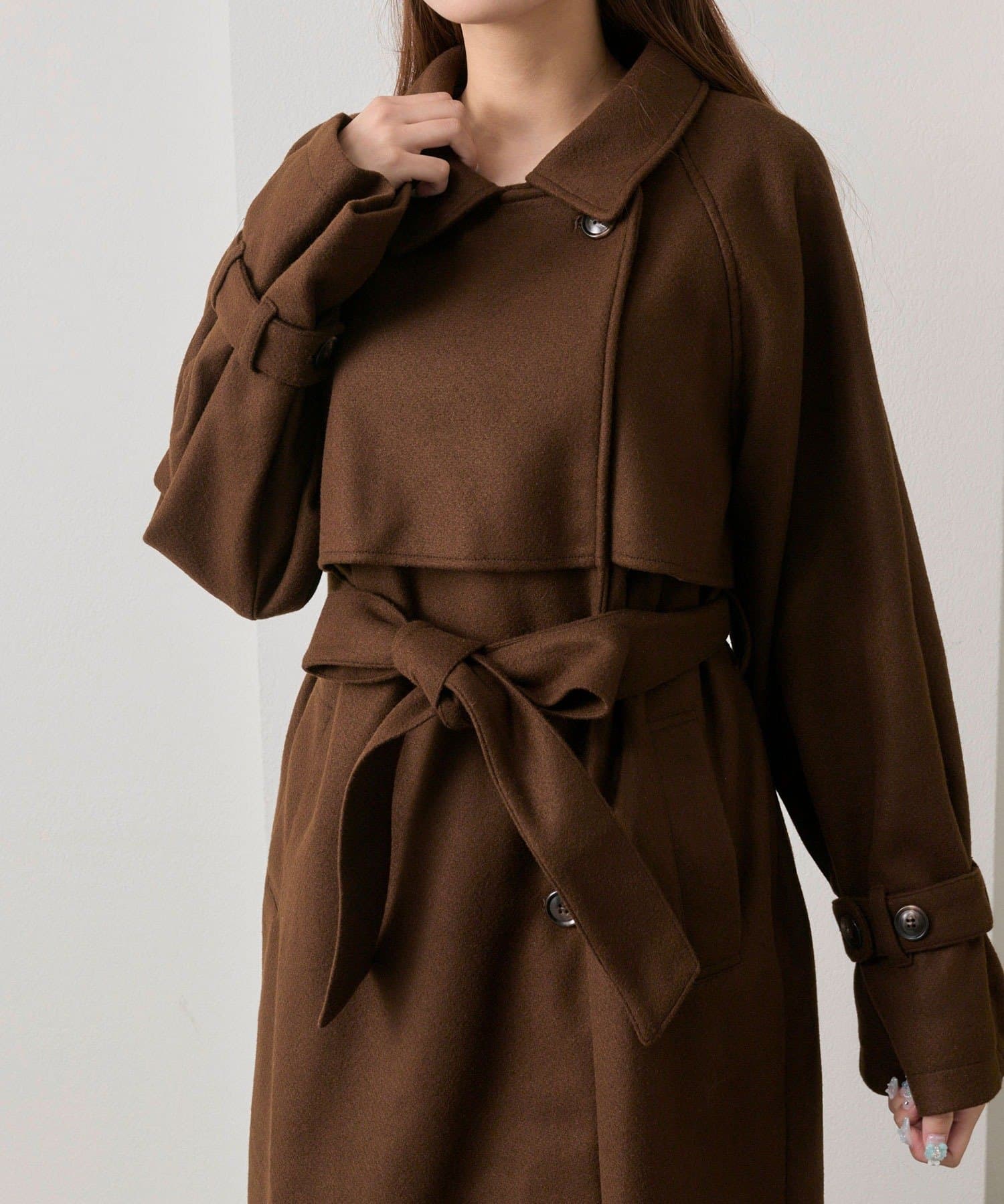 ・前を開けて着るときは後ろでベルトを結ぶとすっきりとしたシルエットで着用していただけます。
