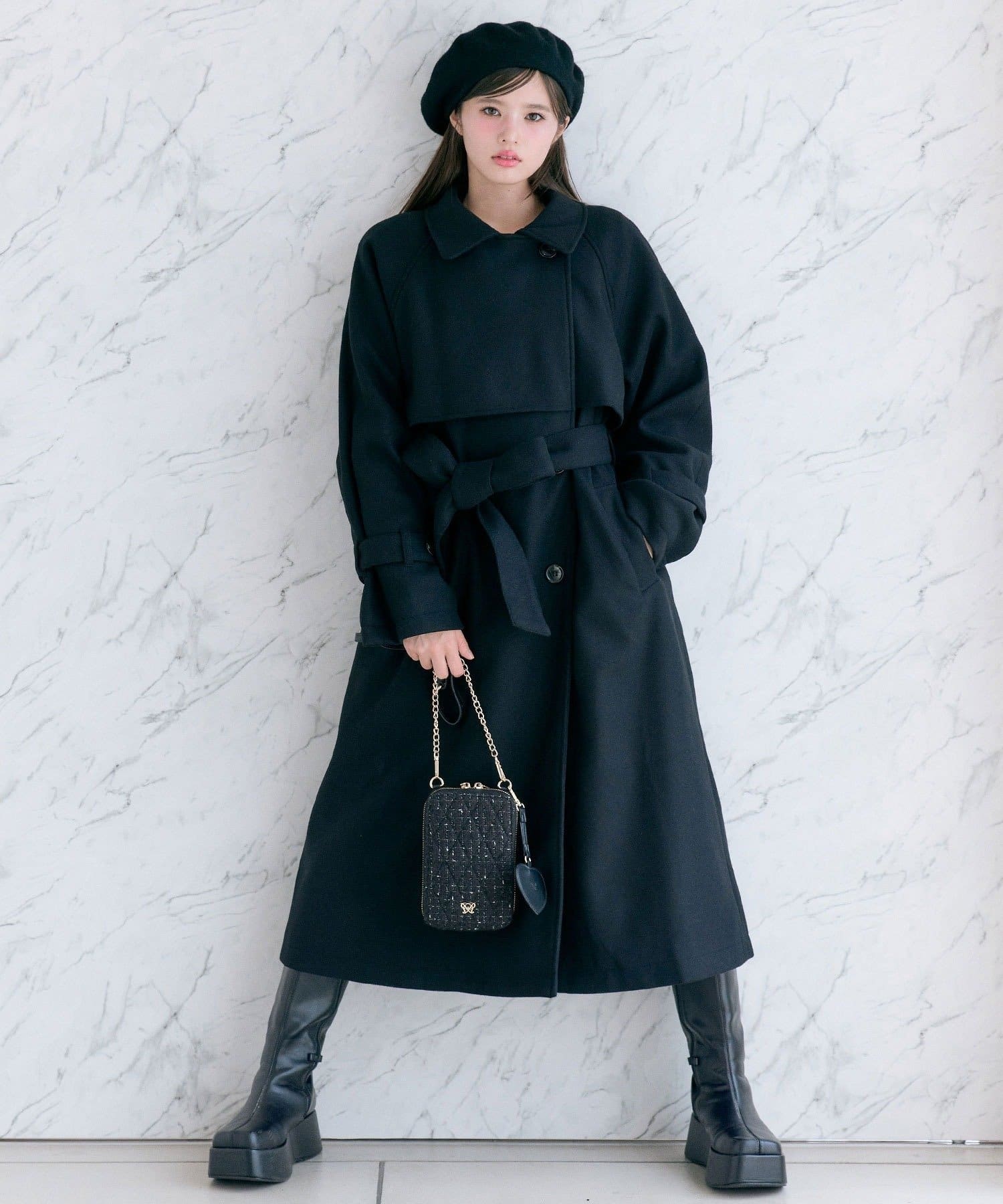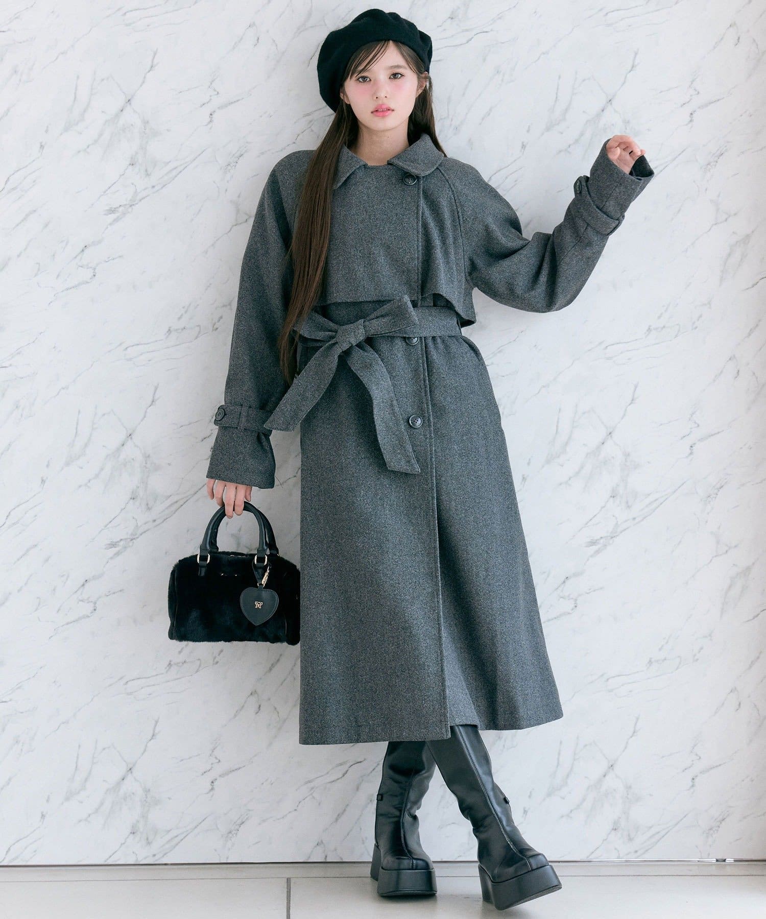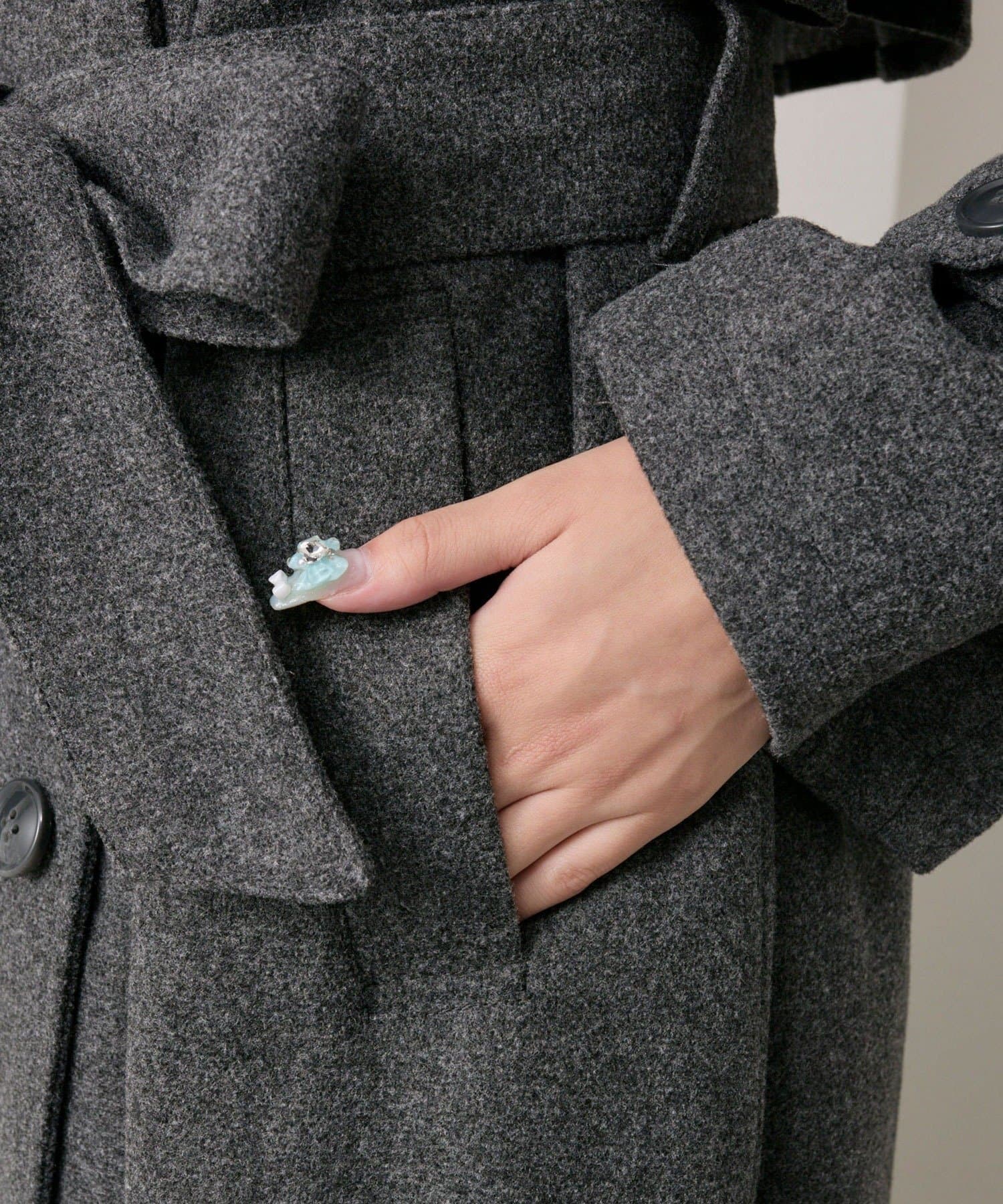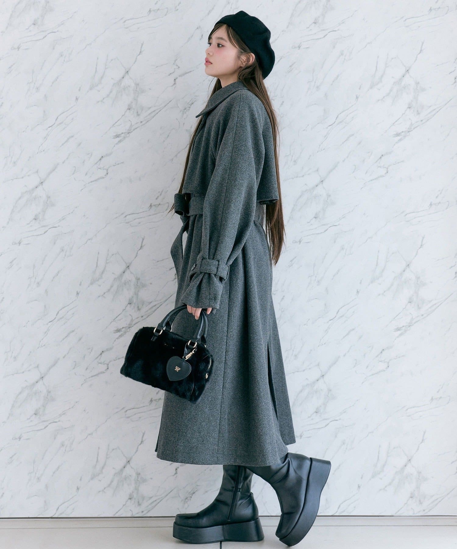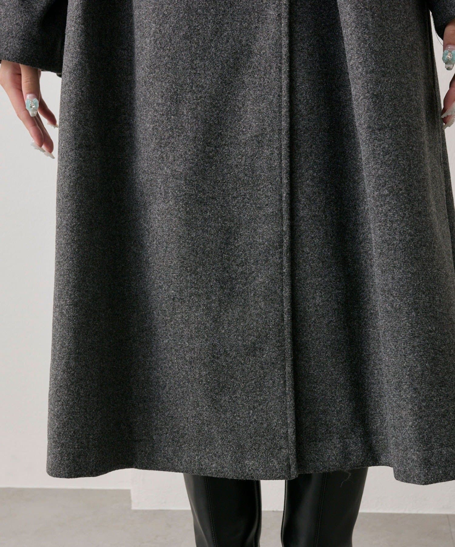 ・前を開けて着るときは後ろでベルトを結ぶとすっきりとしたシルエットで着用していただけます。