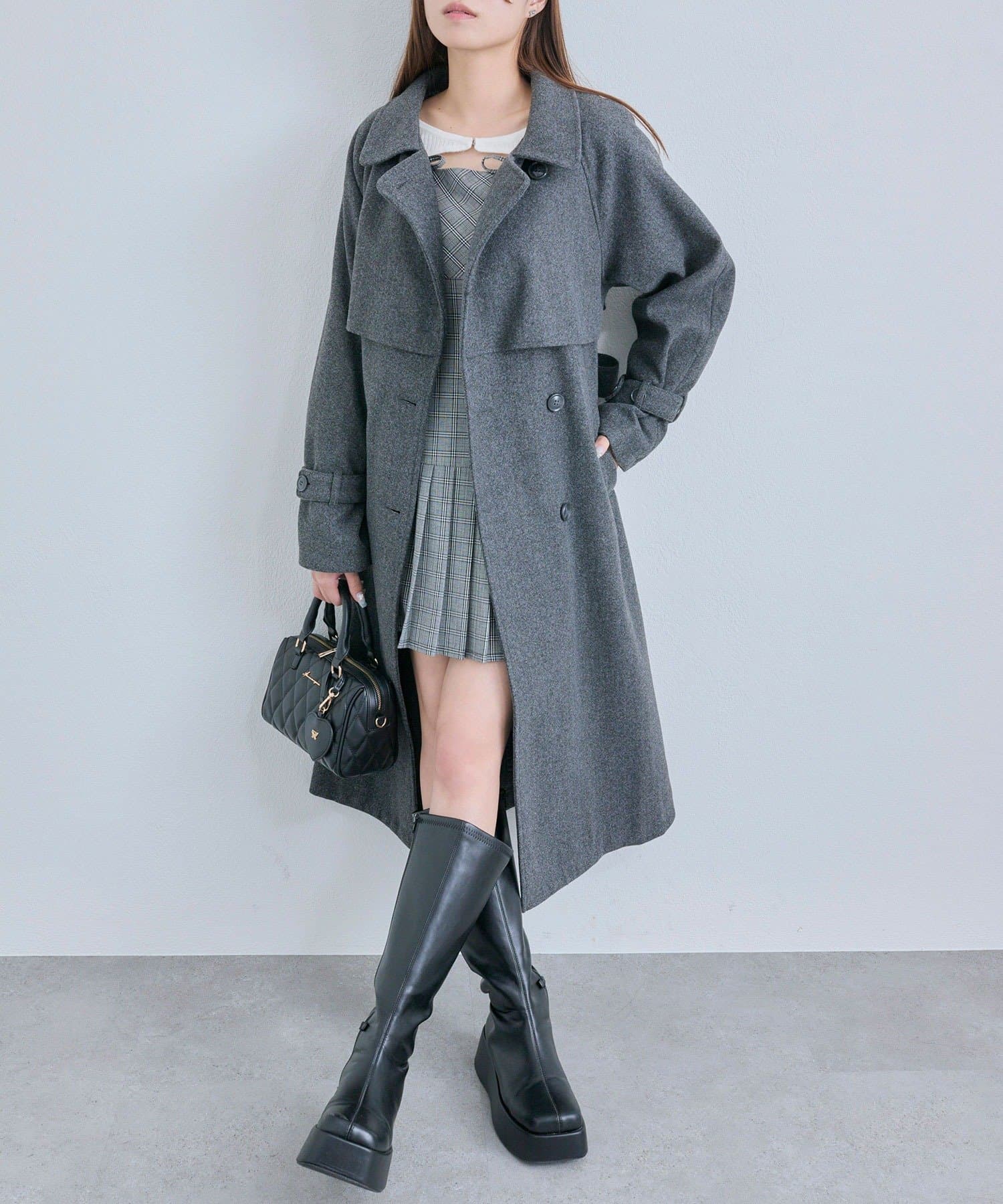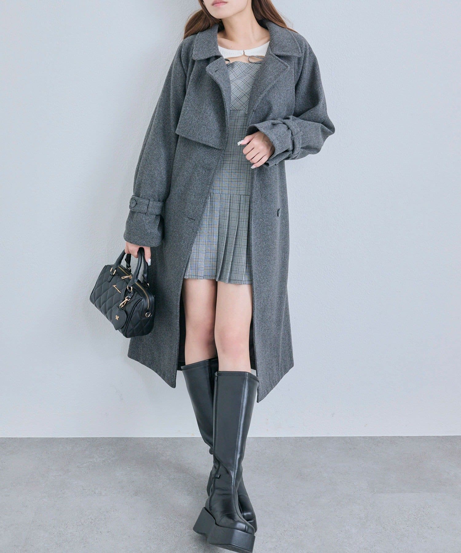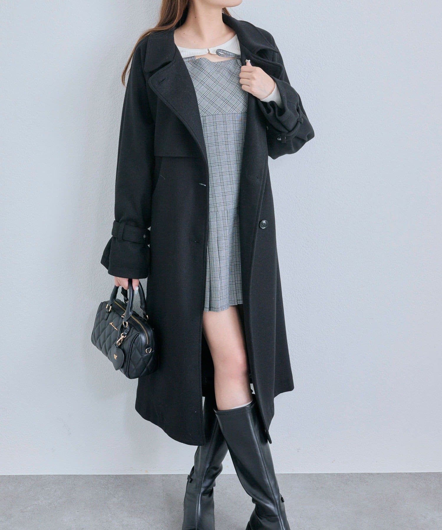 ・ミニボトムにブーツを合わせでガーリーコーデにも◎
