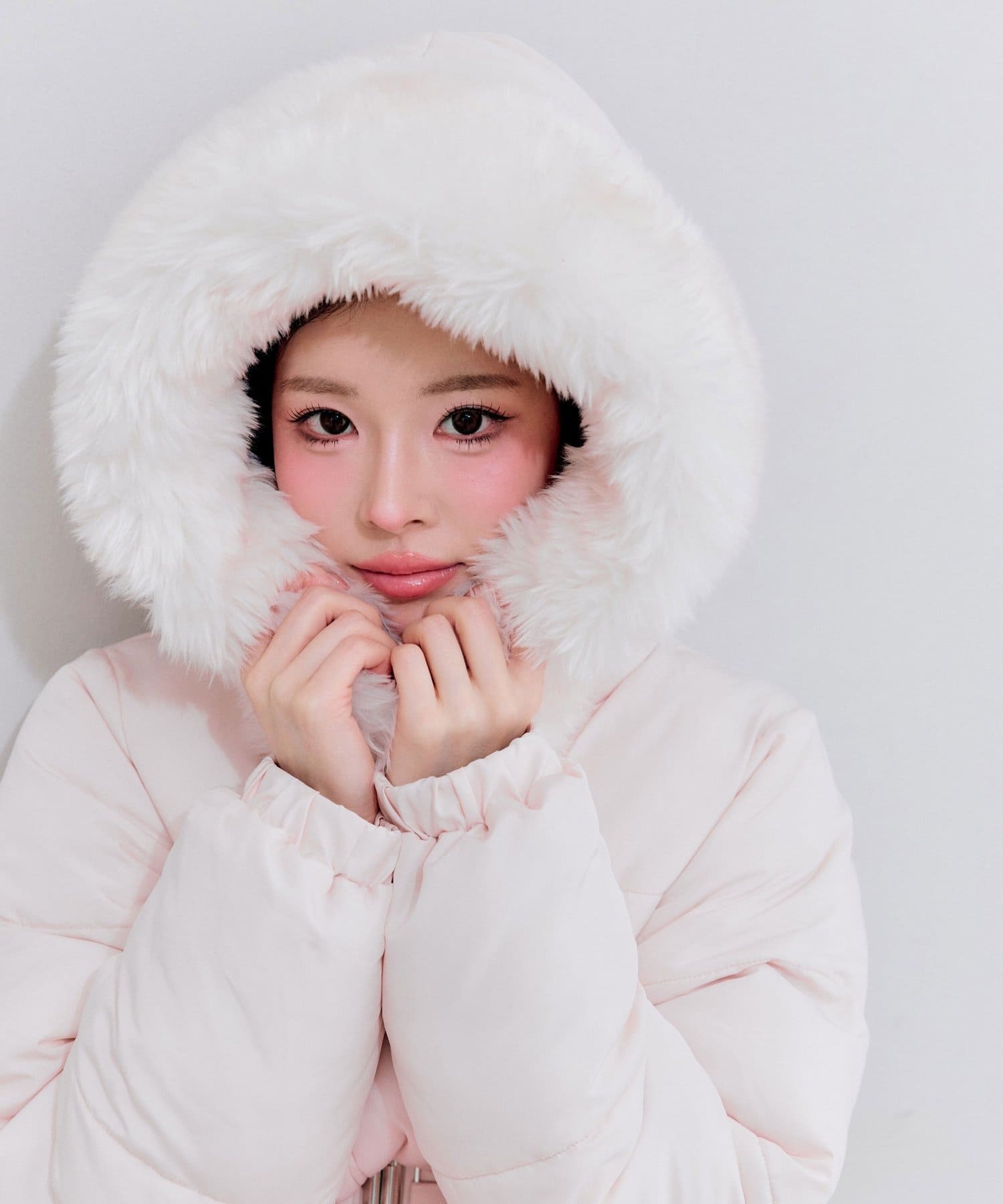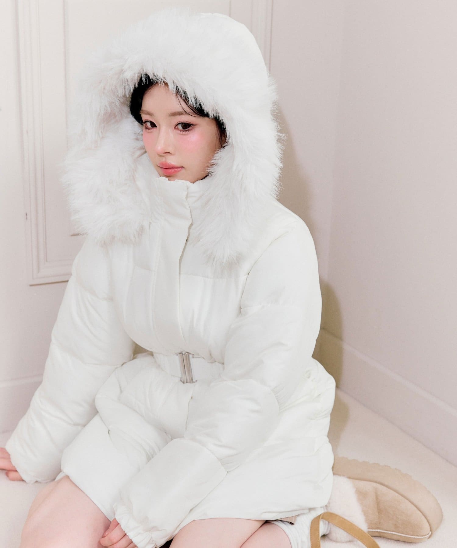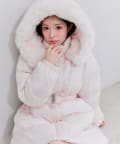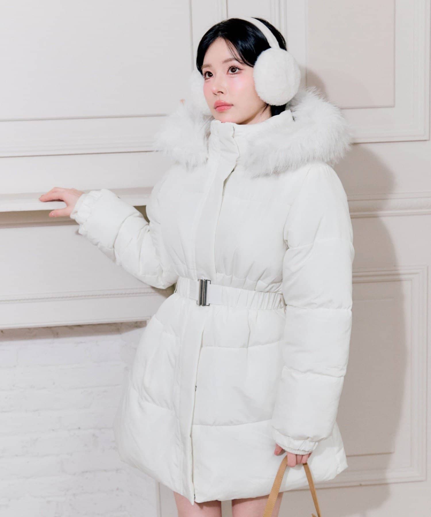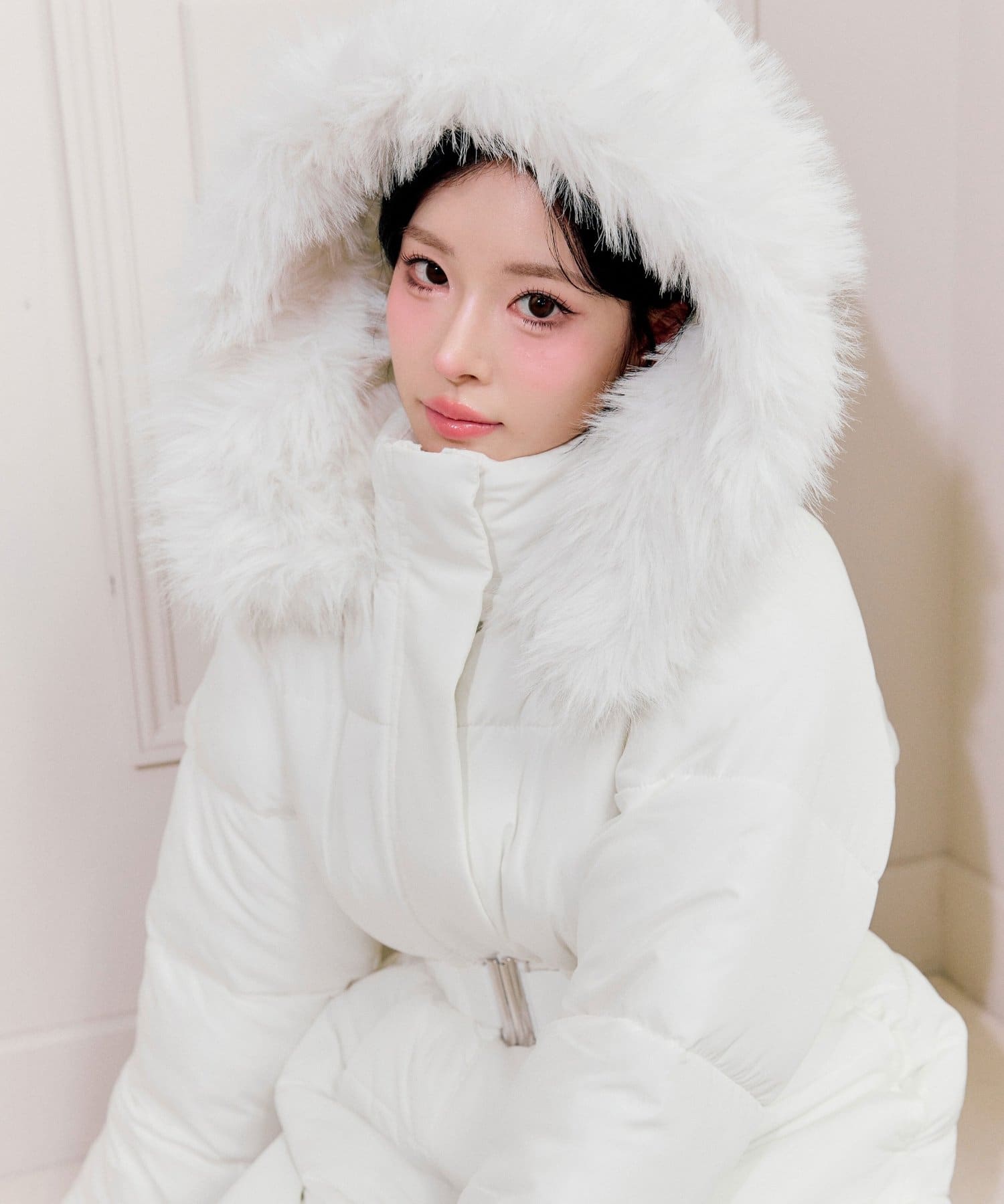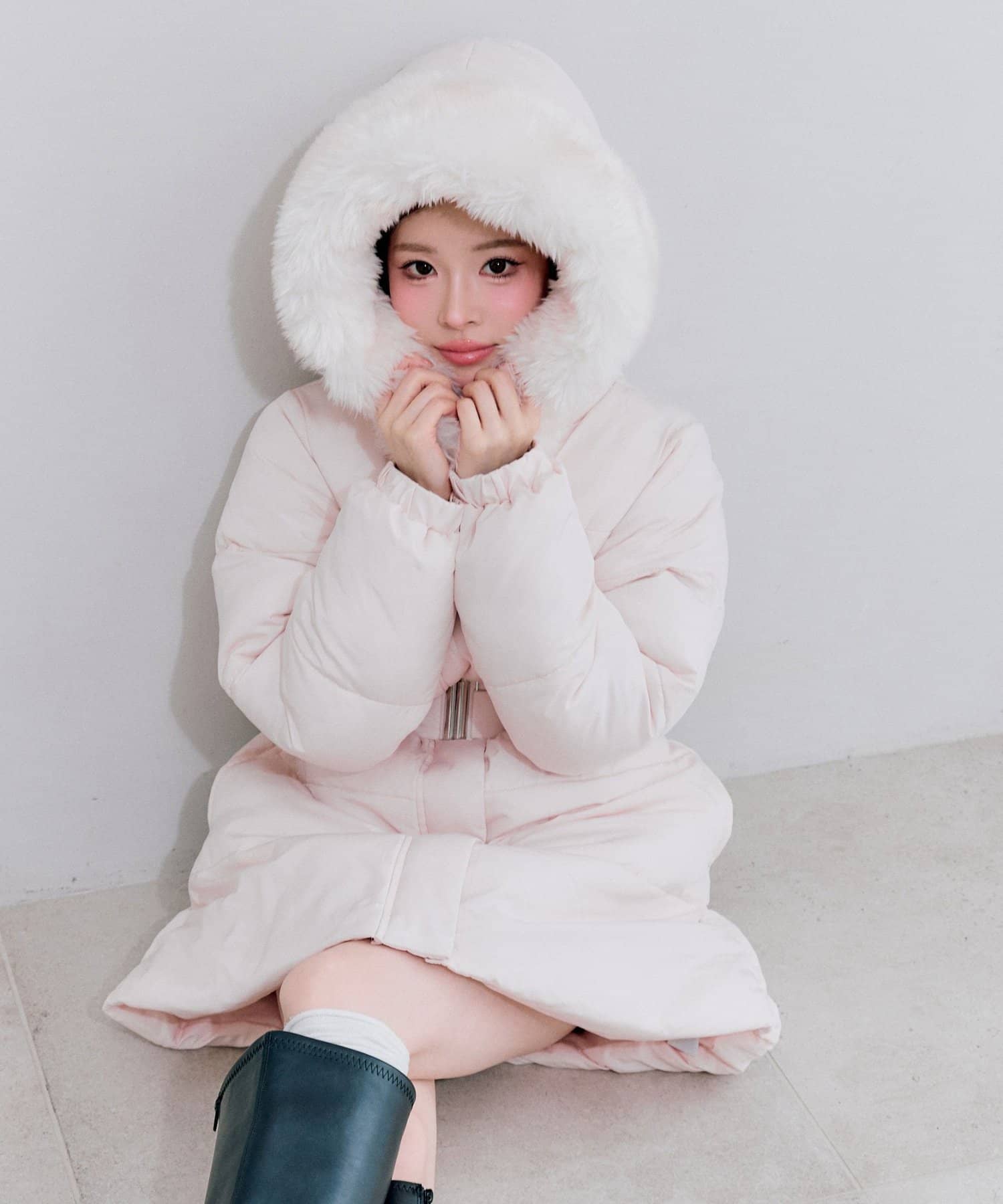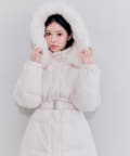 ・フードの存在感たっぷりなファーが、華やかさと小顔効果を同時に叶えてくれます。
