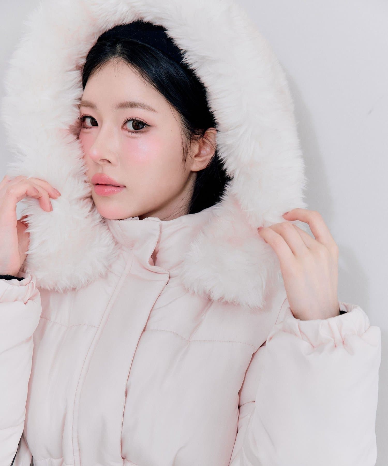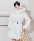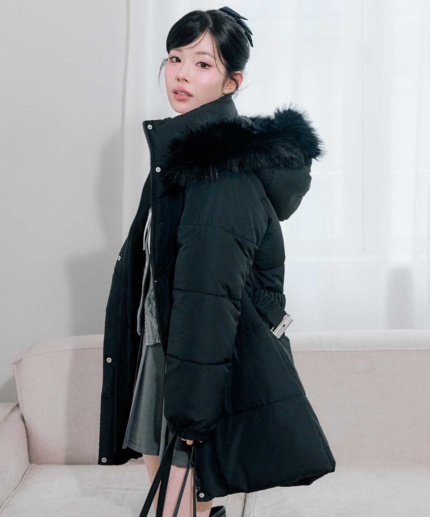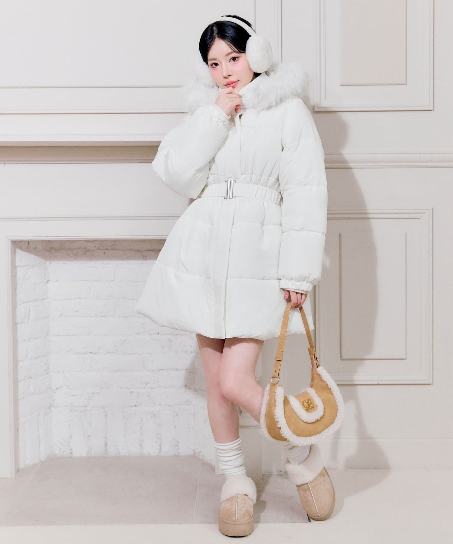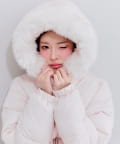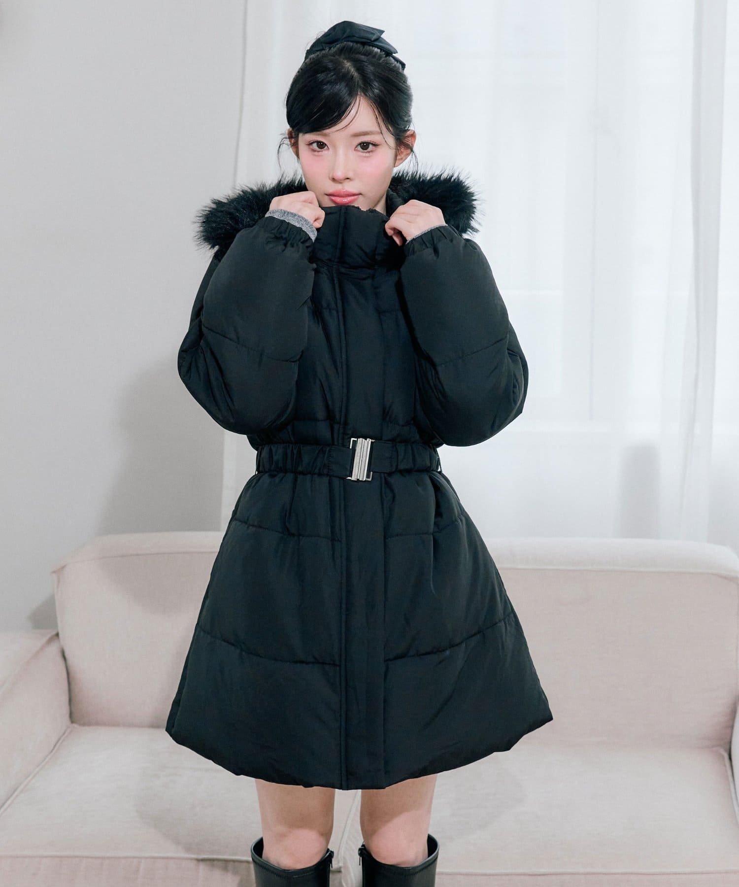 ・フードの存在感たっぷりなファーが、華やかさと小顔効果を同時に叶えてくれます。