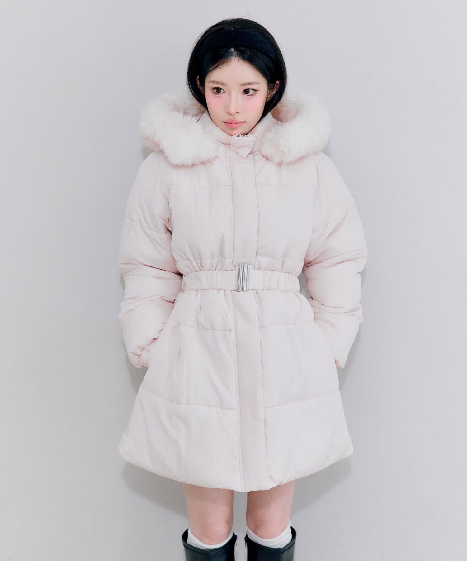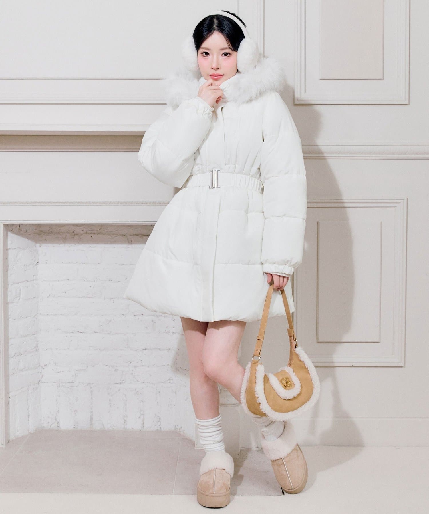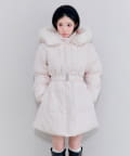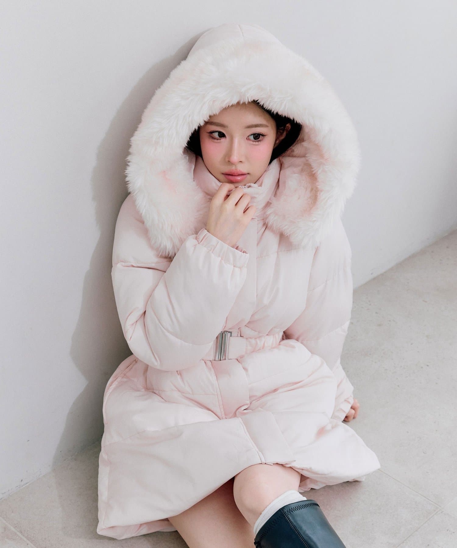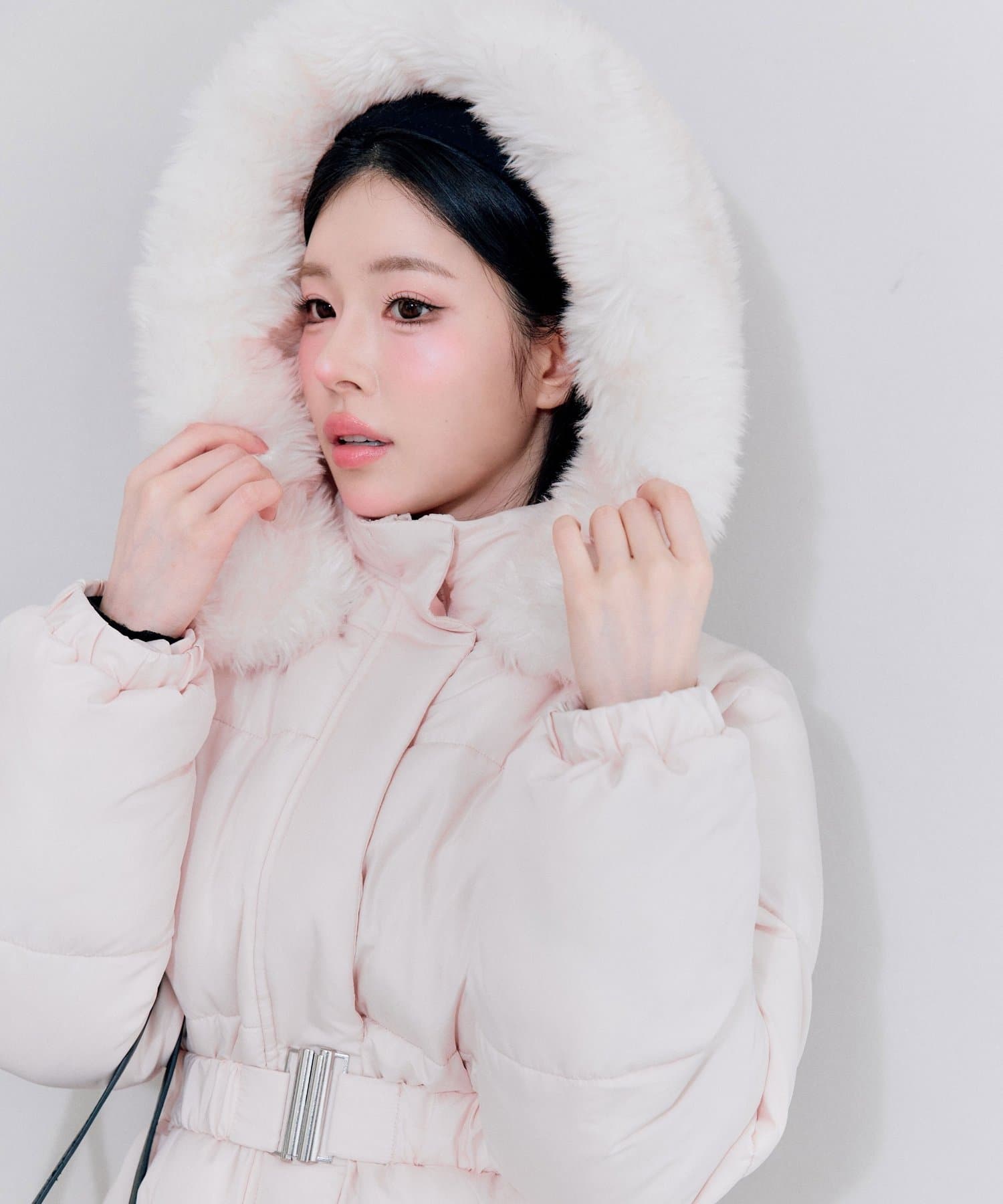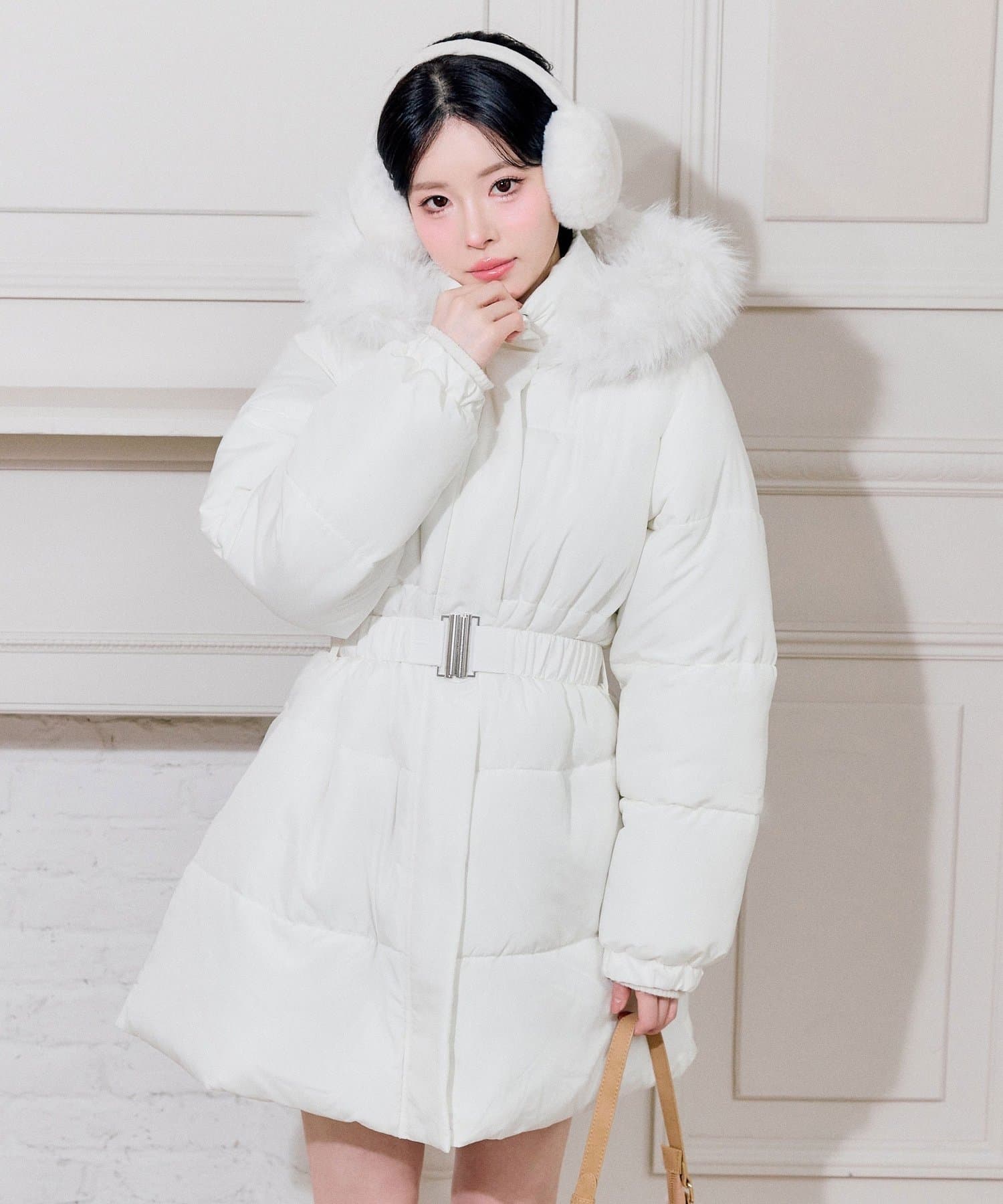 ・フードの存在感たっぷりなファーが、華やかさと小顔効果を同時に叶えてくれます。
