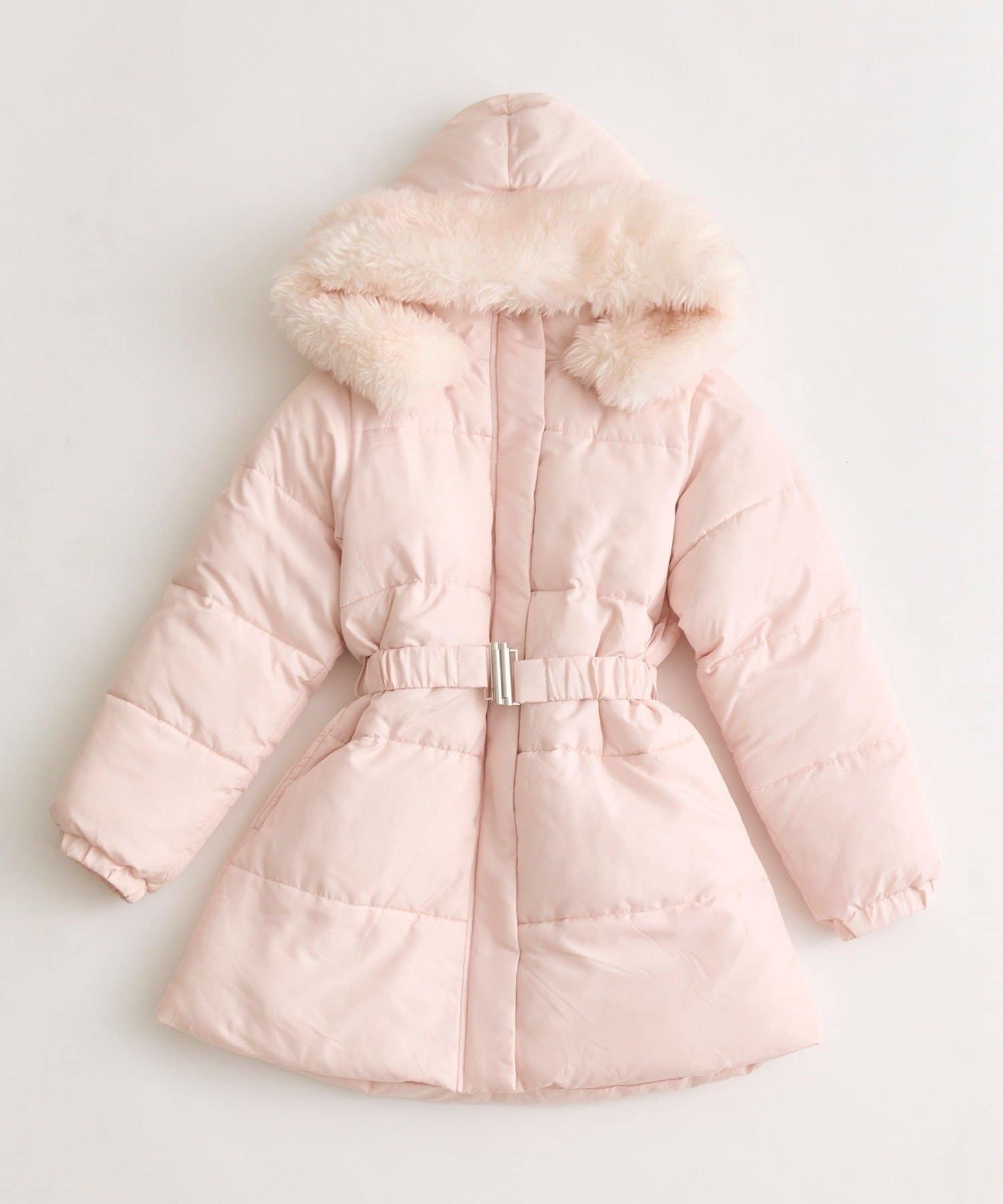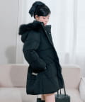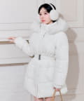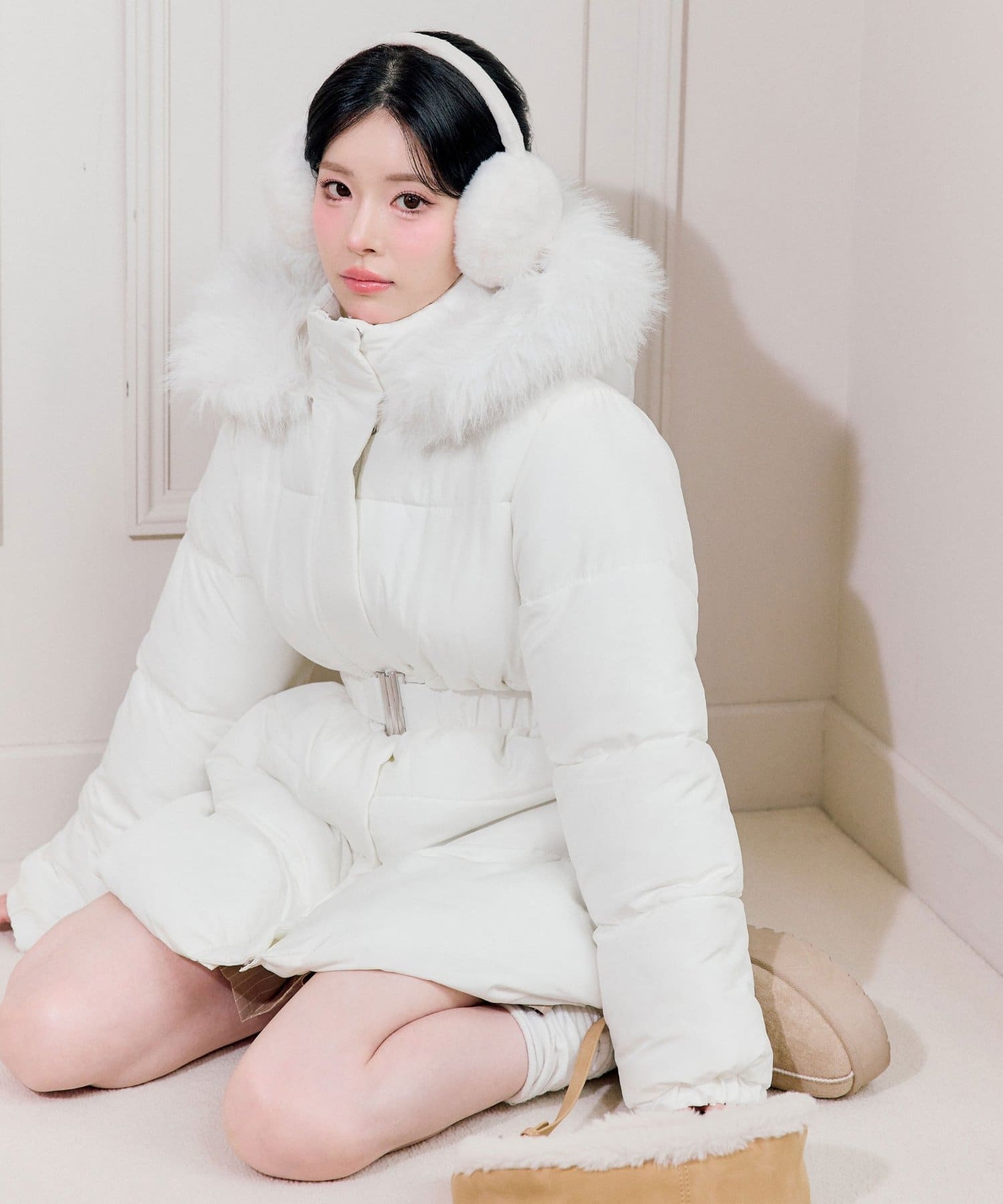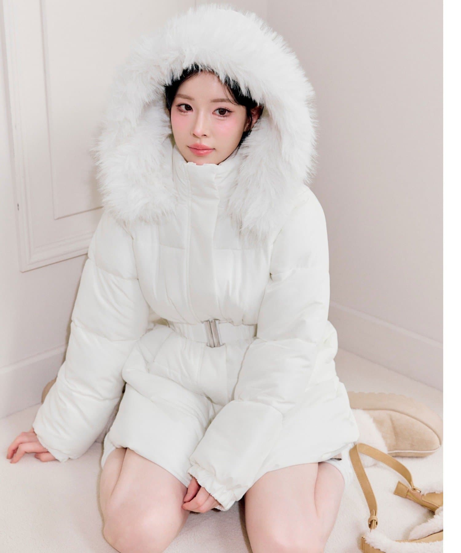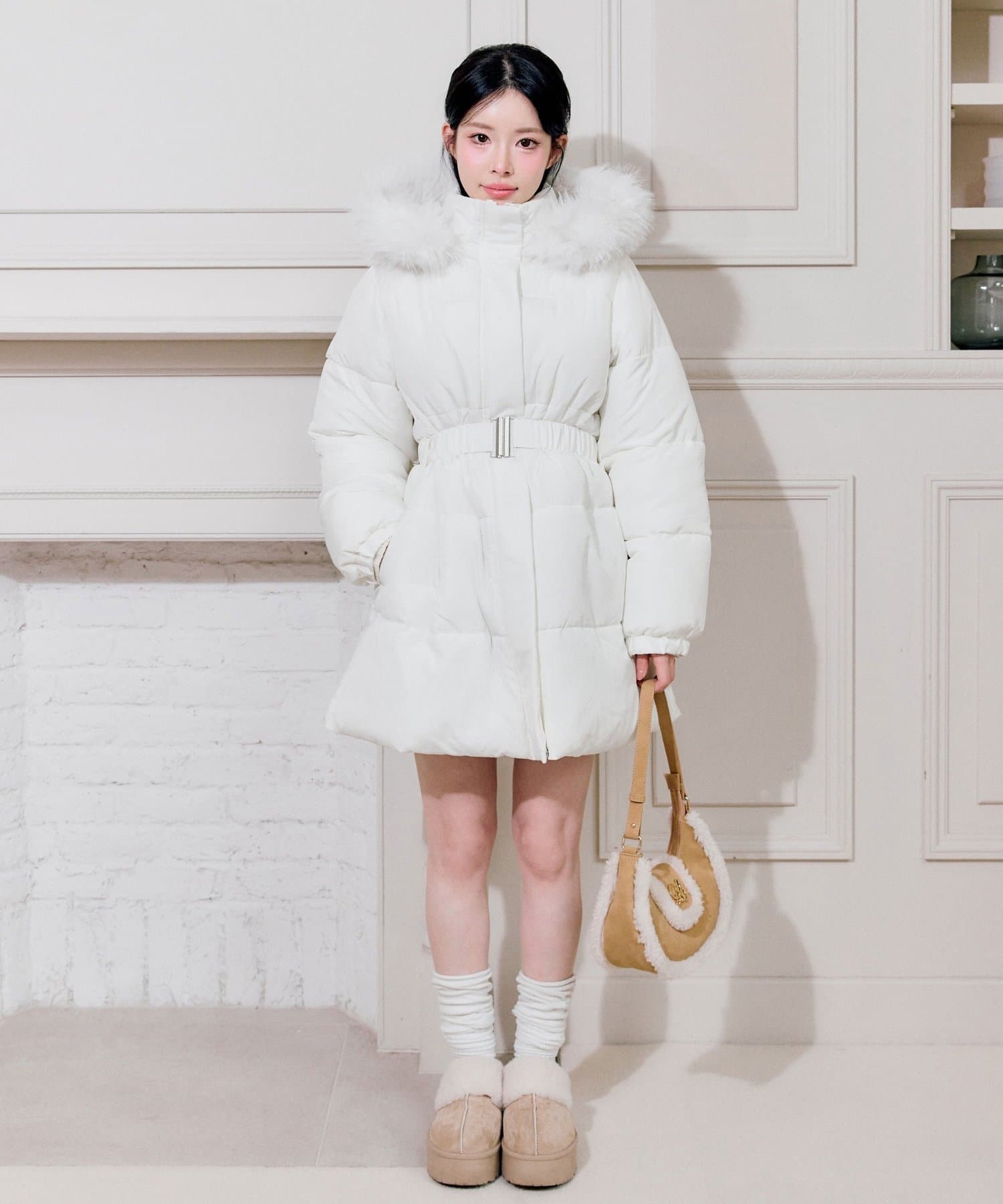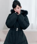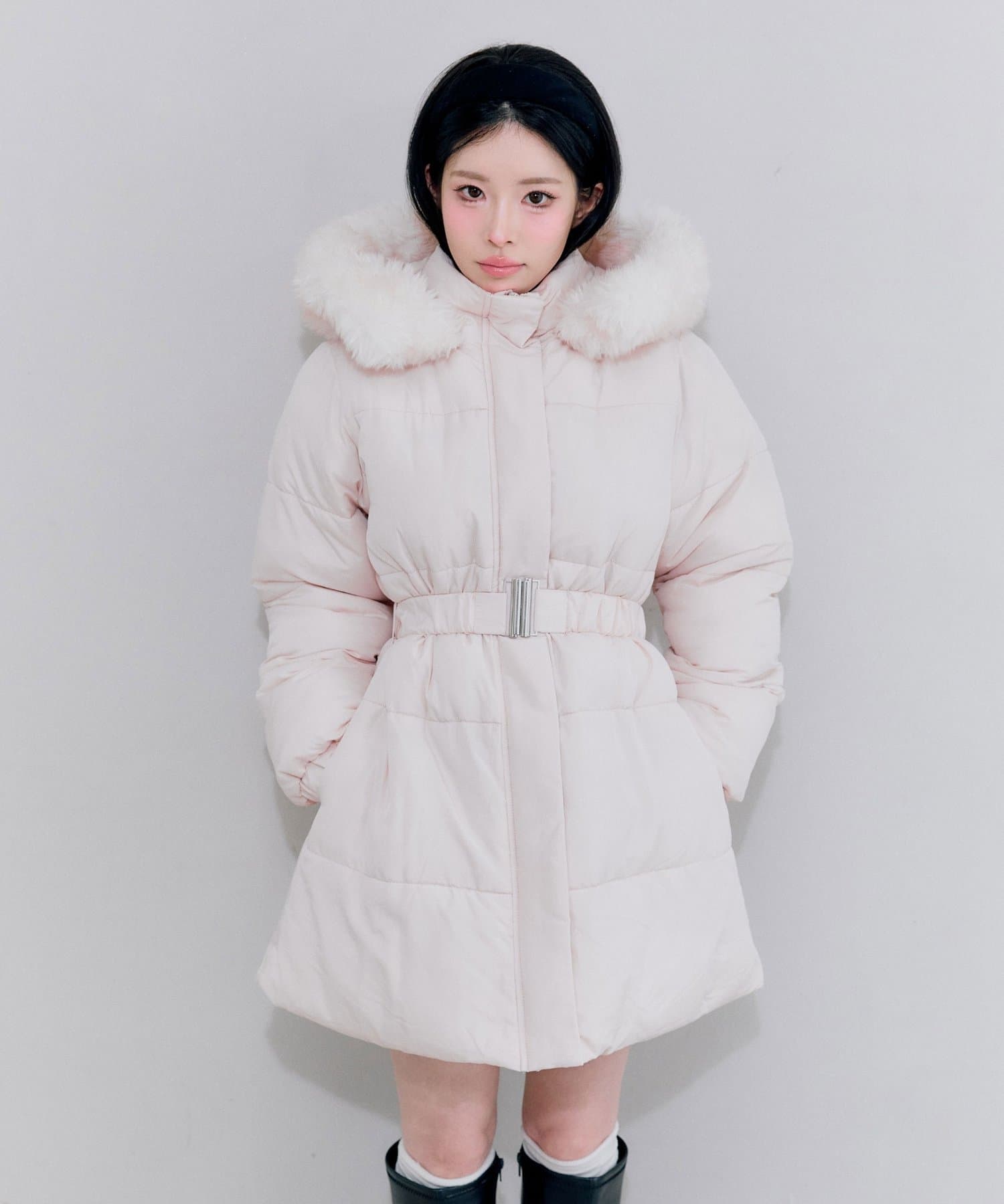 ・フードの存在感たっぷりなファーが、華やかさと小顔効果を同時に叶えてくれます。