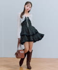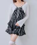 ・オフ(レース×グレー)/ブラウン(チェック×ブラウン)/花柄(花柄×レース)/ブラック(チェック×オフ)の4色展開