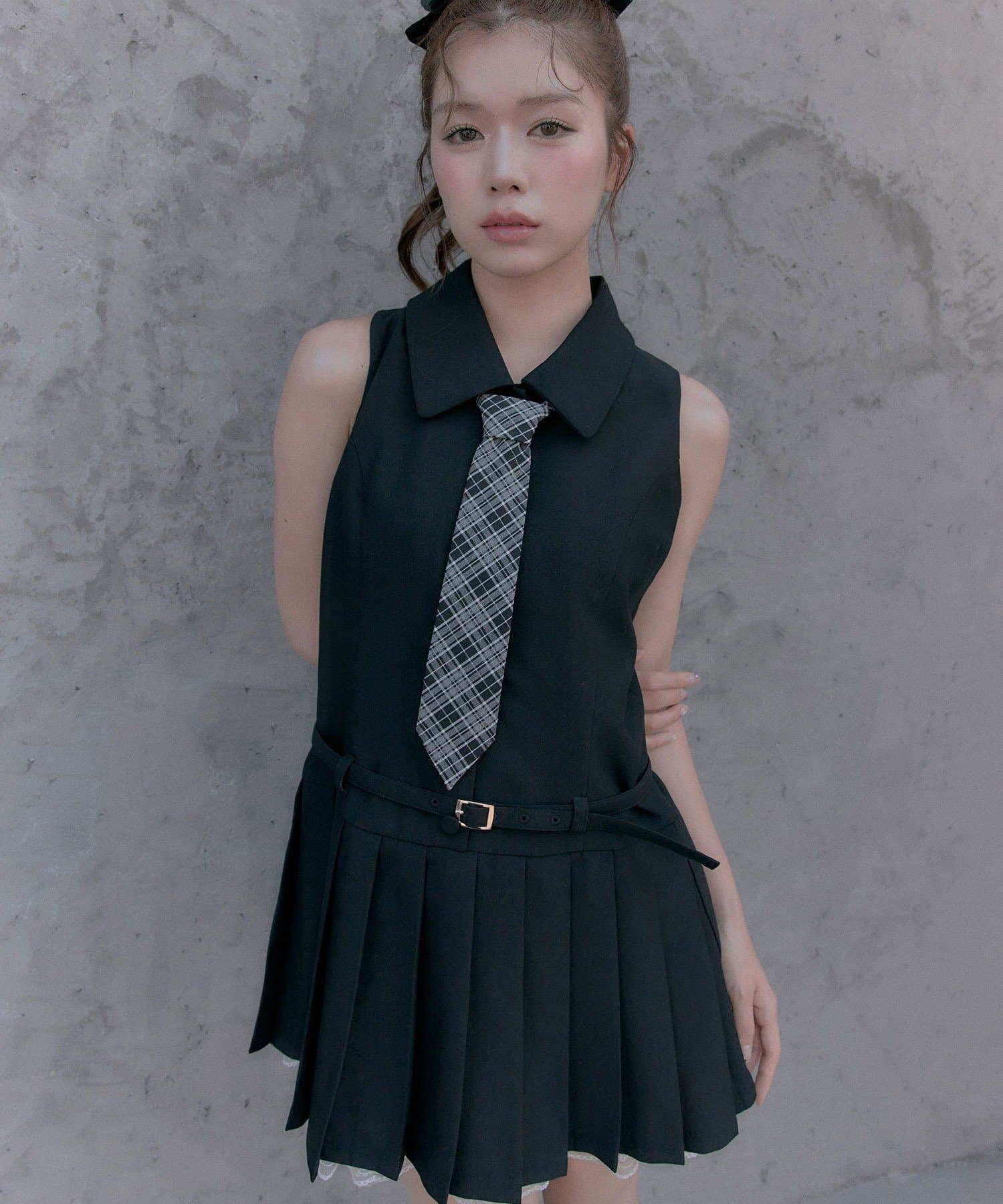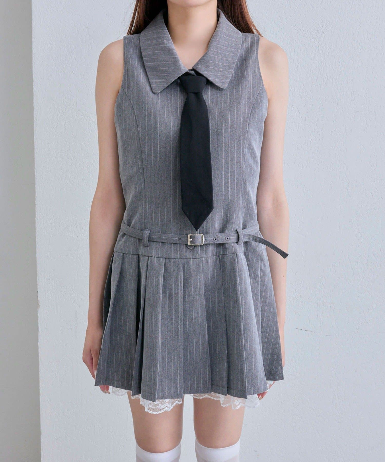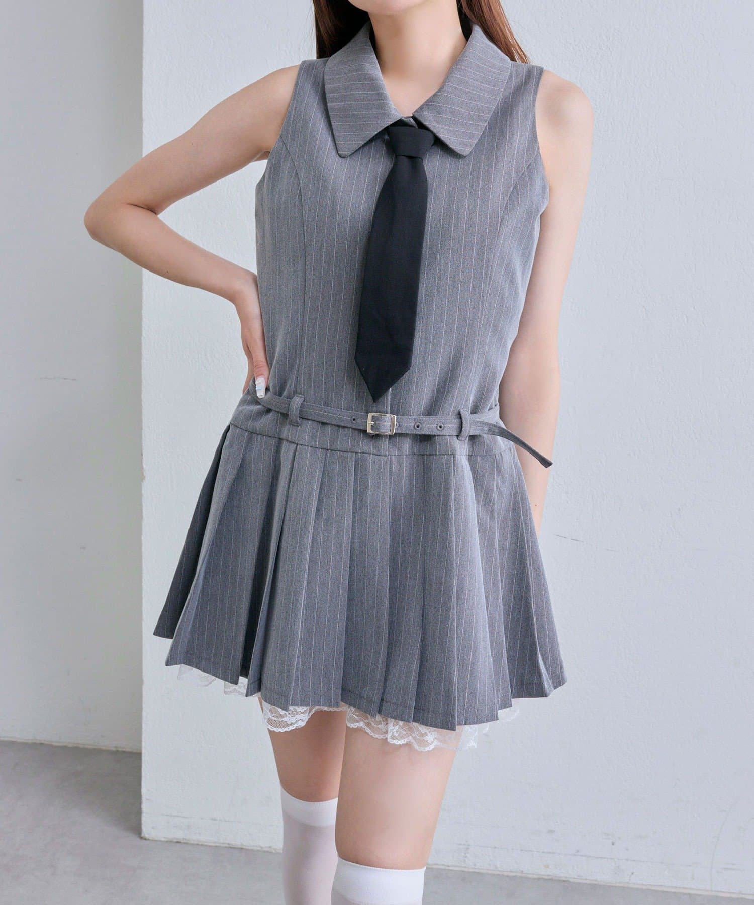 【PinSucreCollection】ノースリーブネクタイワンピース