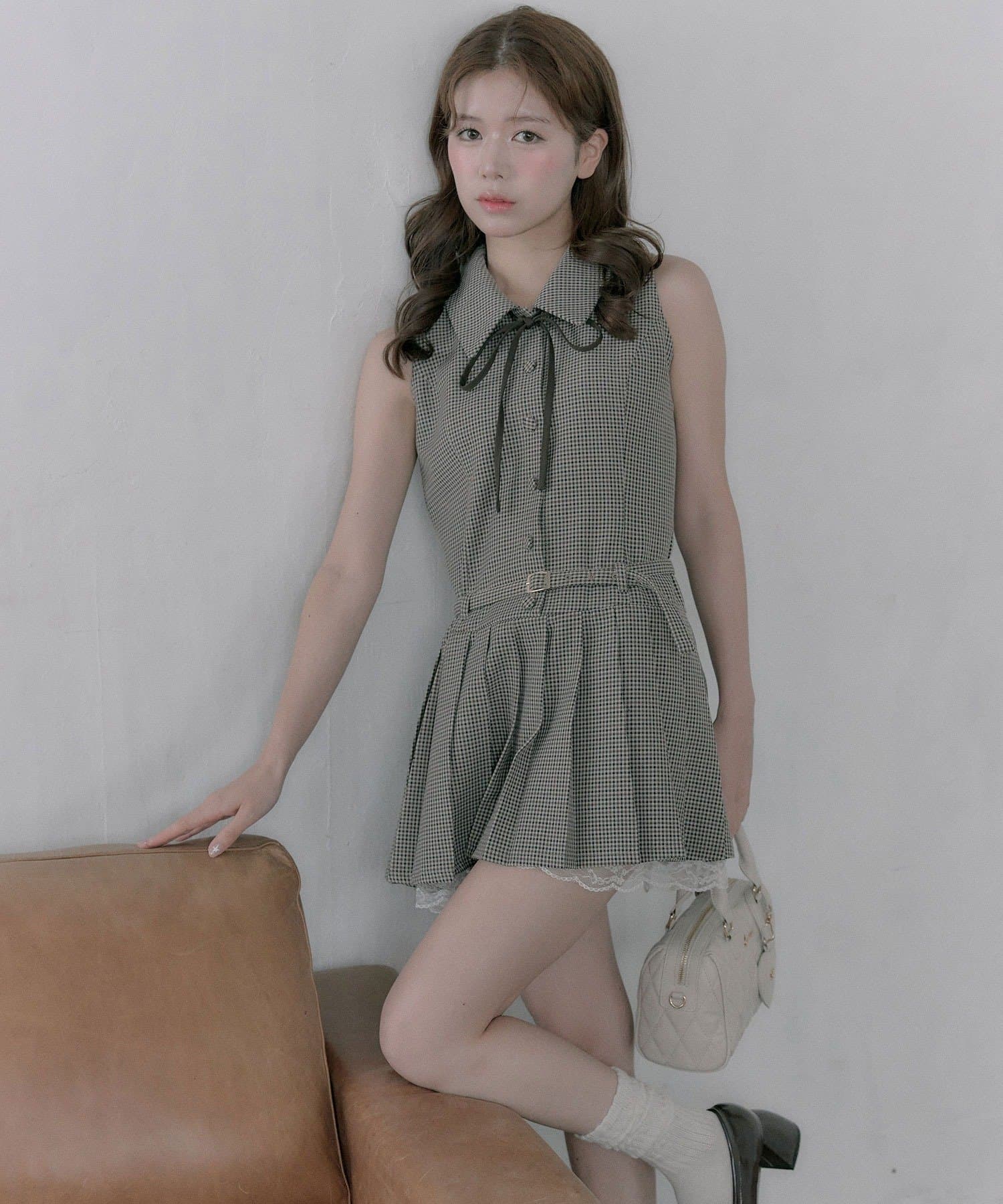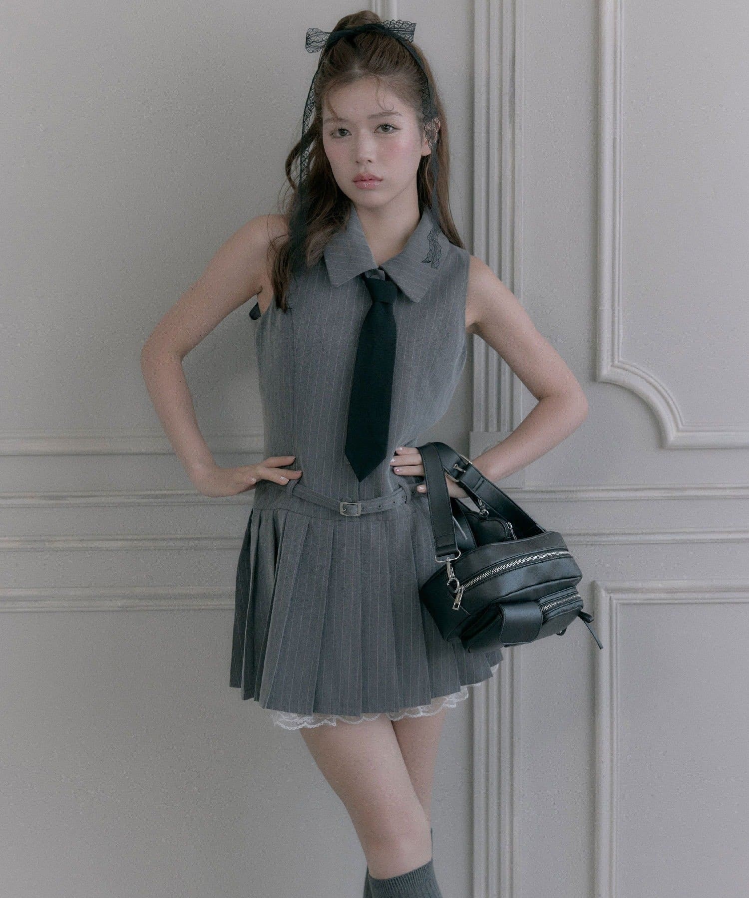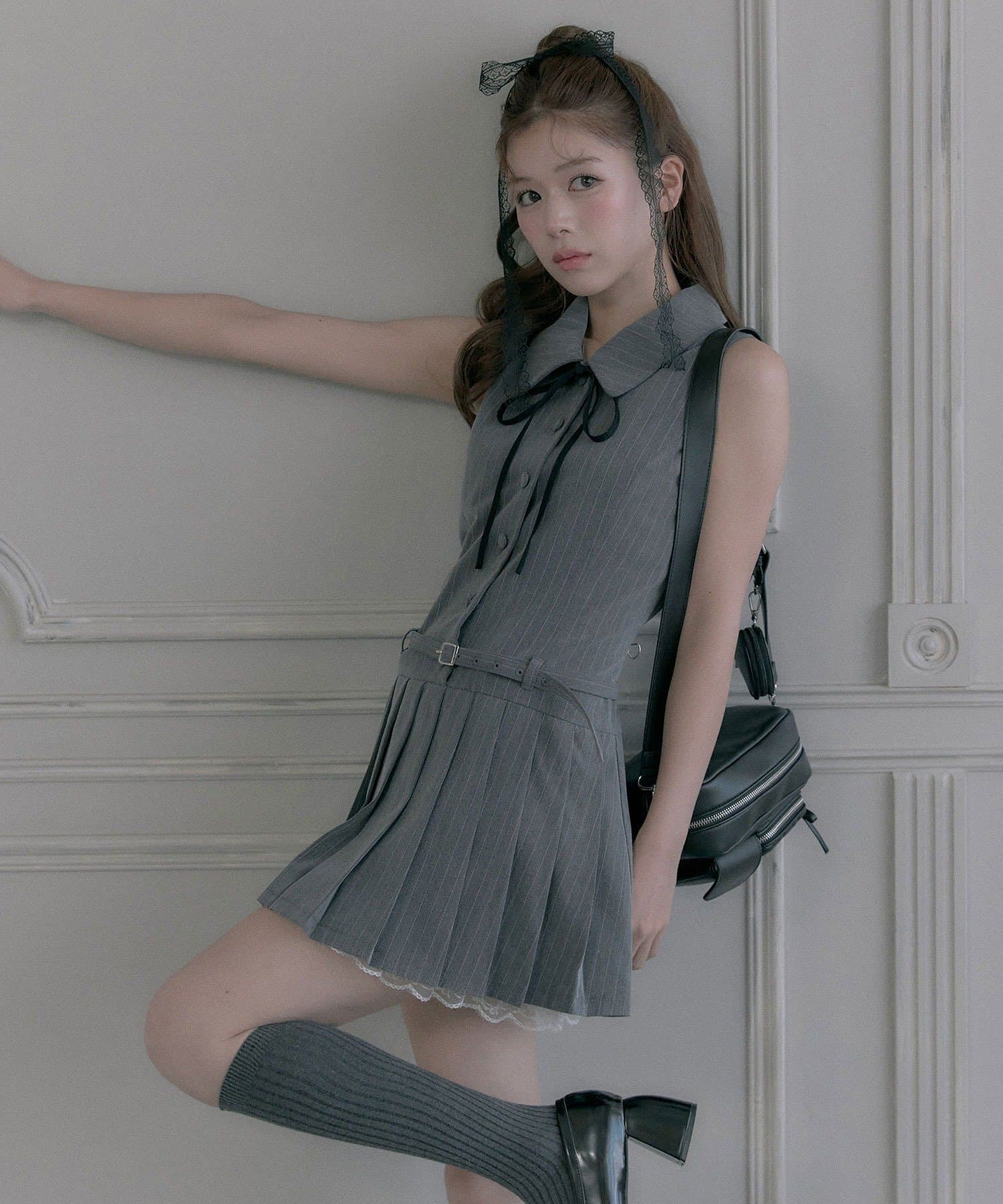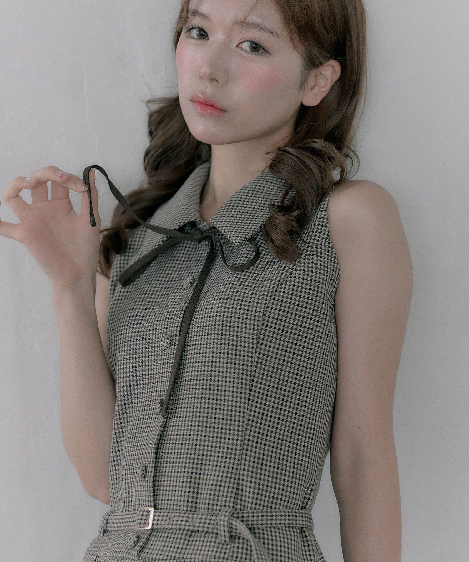 【PinSucreCollection】ノースリーブネクタイワンピース