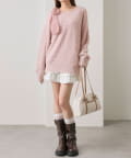 ・ミニボトムを合わせてガーリーなミニワンピース風に着こなすがおすすめ。
