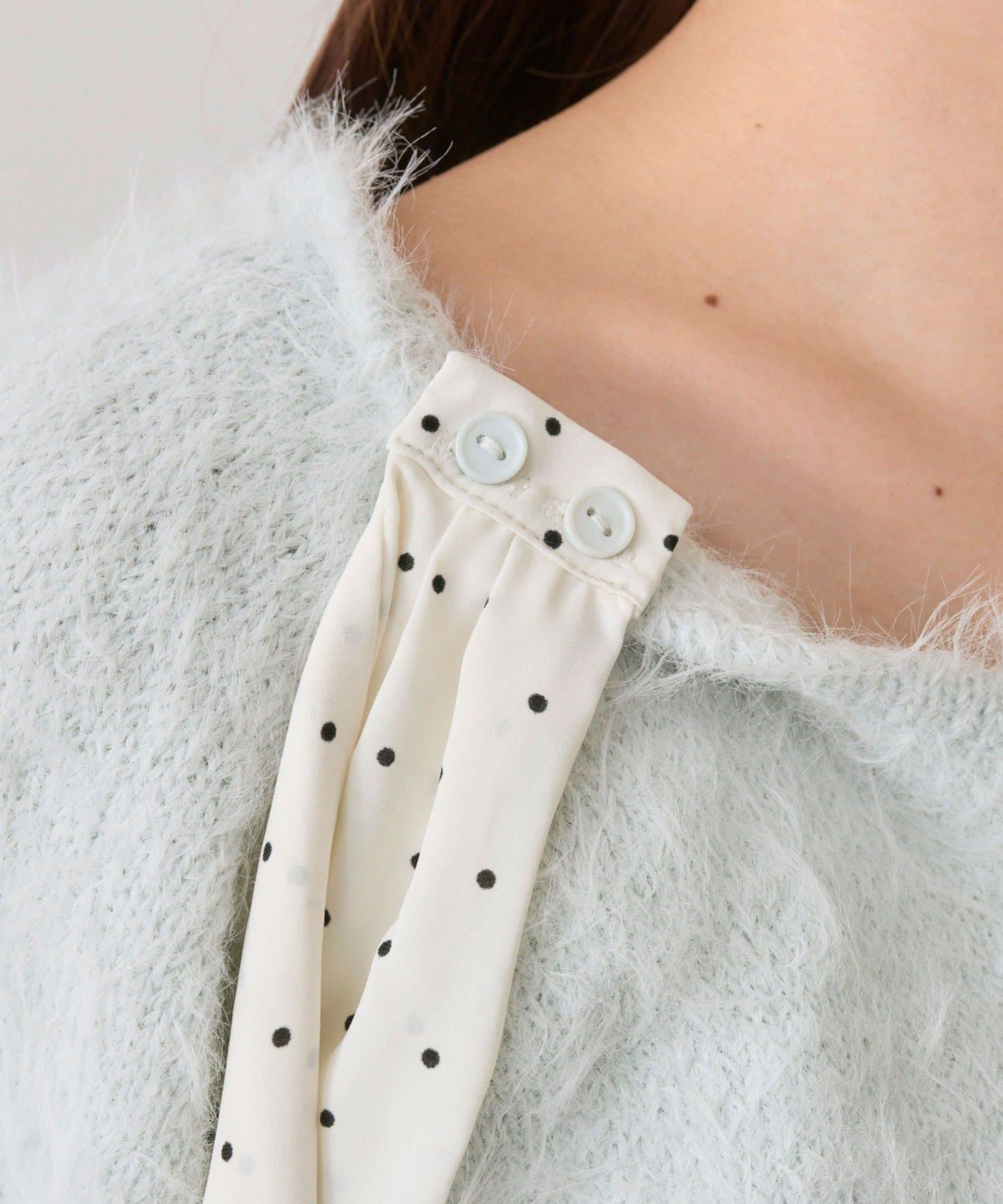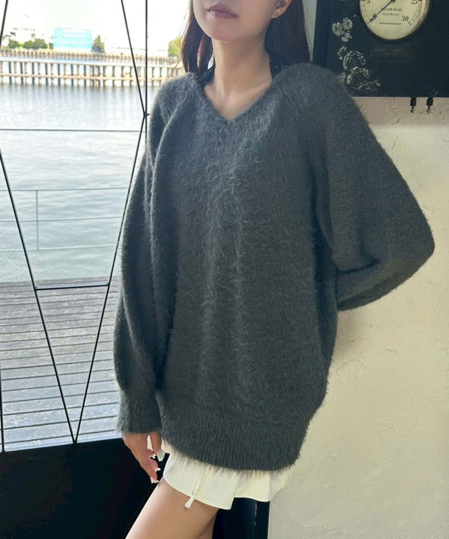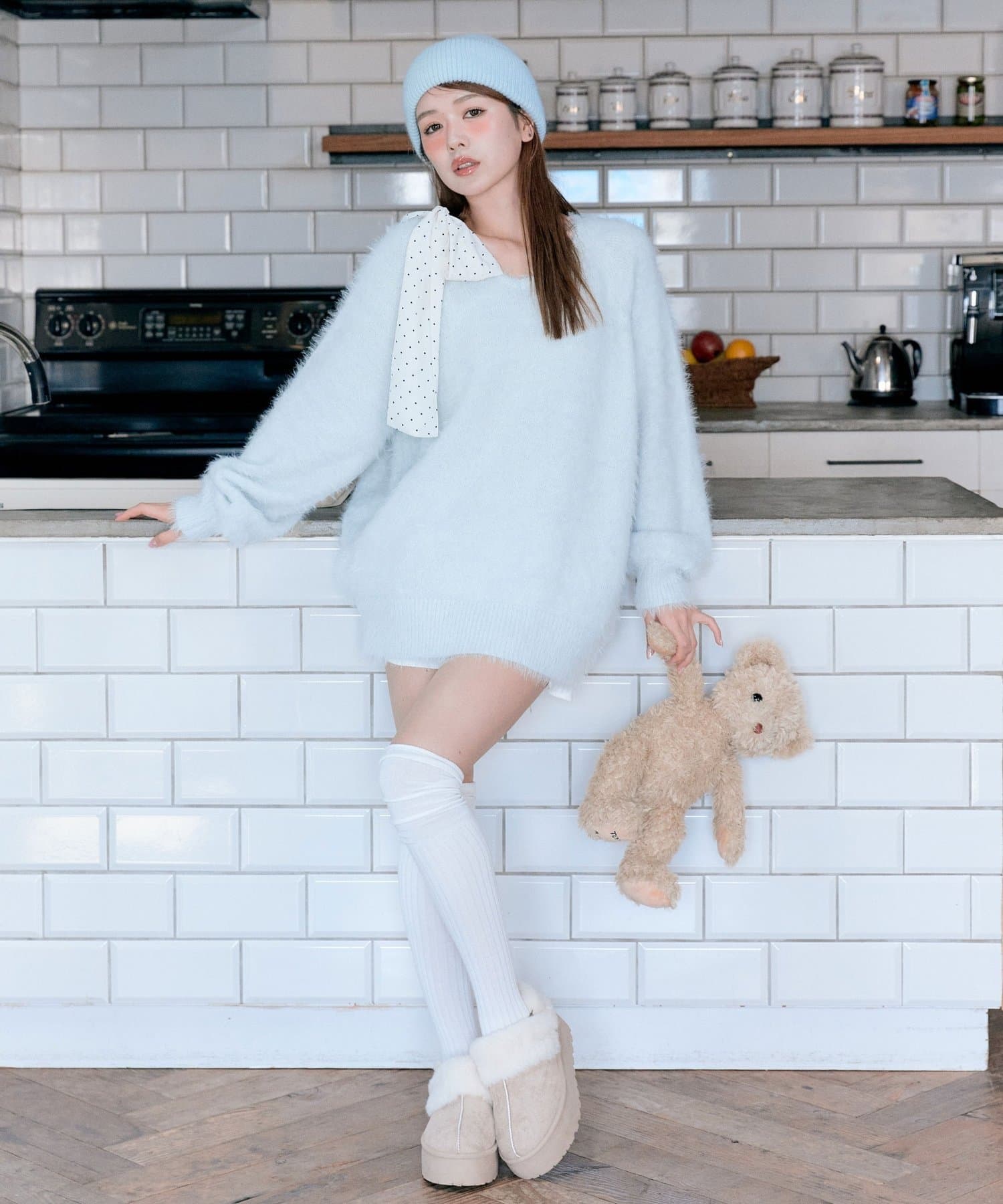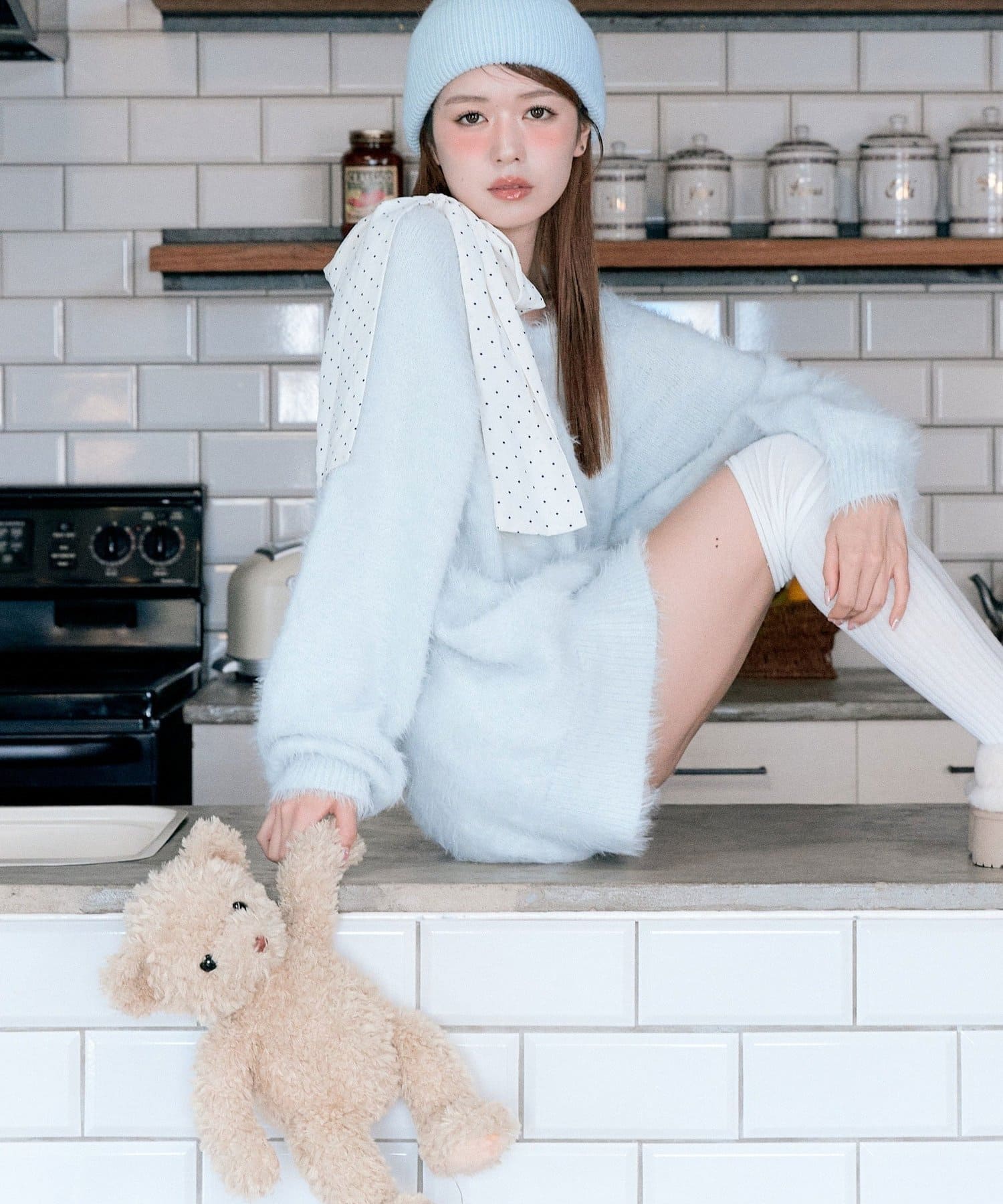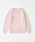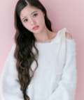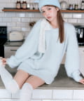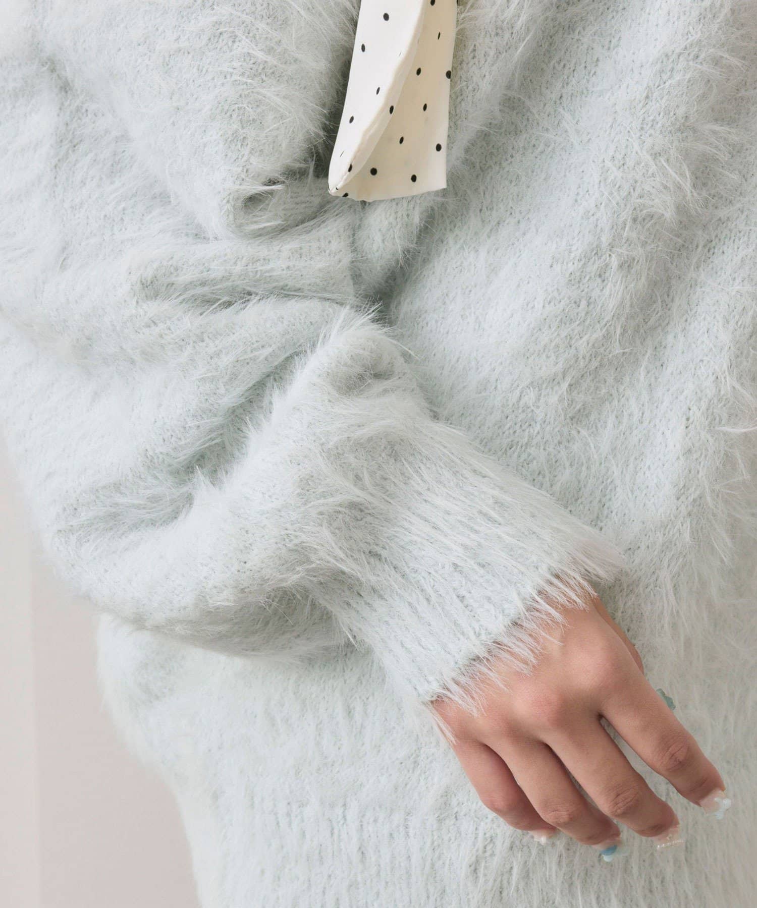 ・ふわふわシャギーニットに、大きなリボンをあしらったガーリーデザイン。