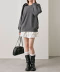 ・ミニボトムを合わせてガーリーなミニワンピース風に着こなすがおすすめ。
