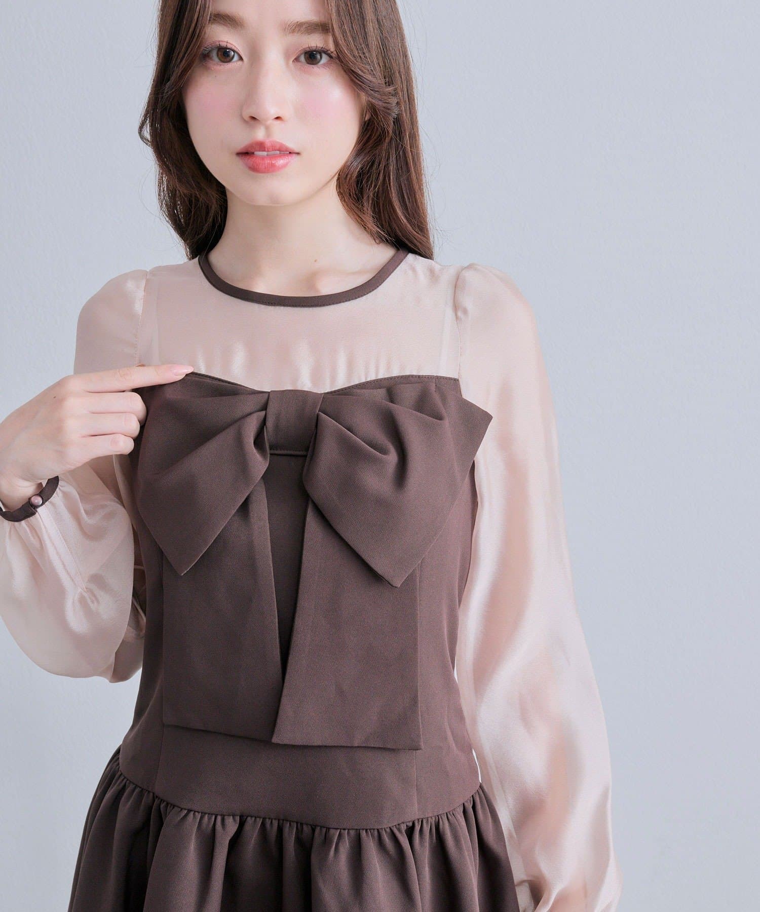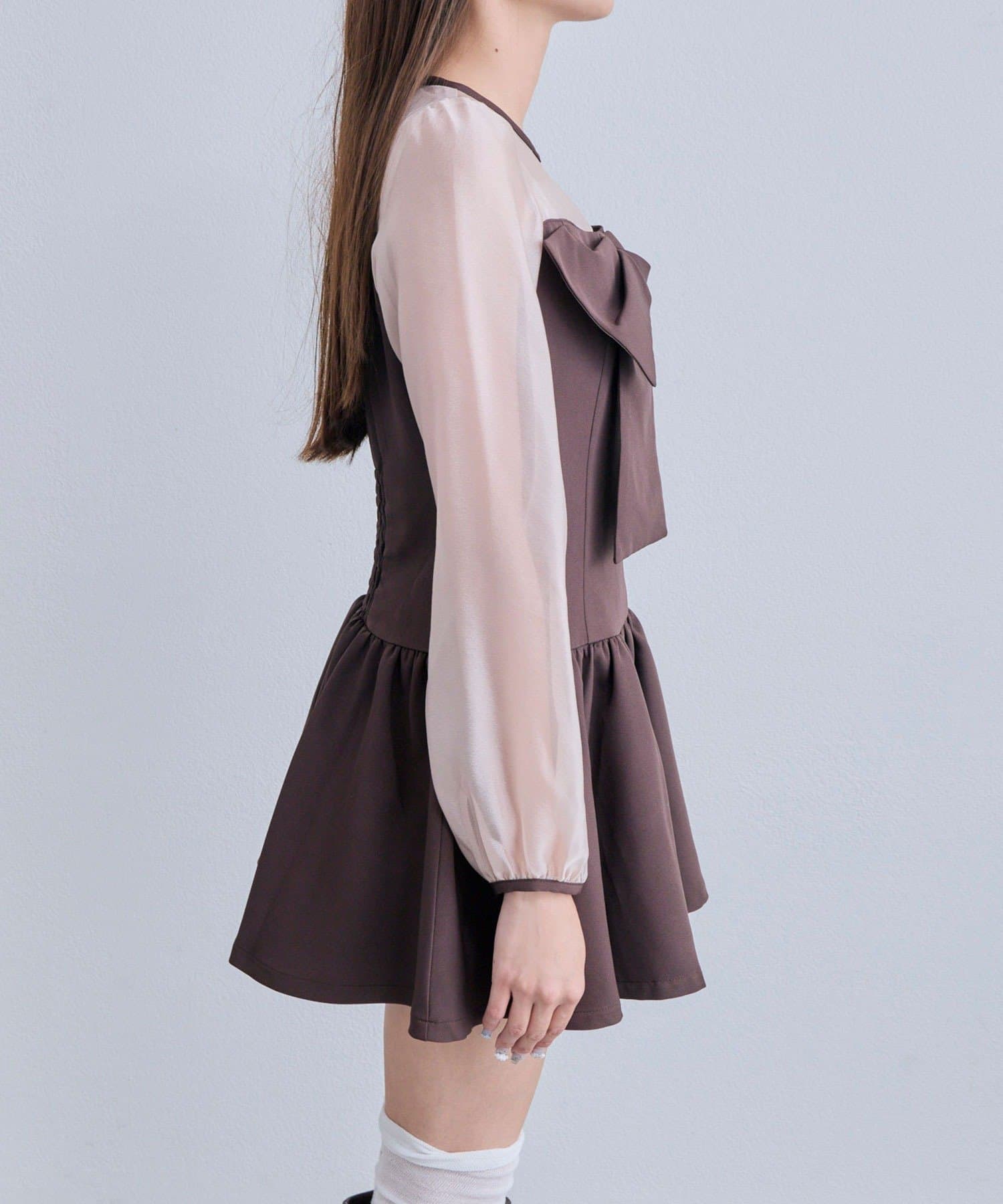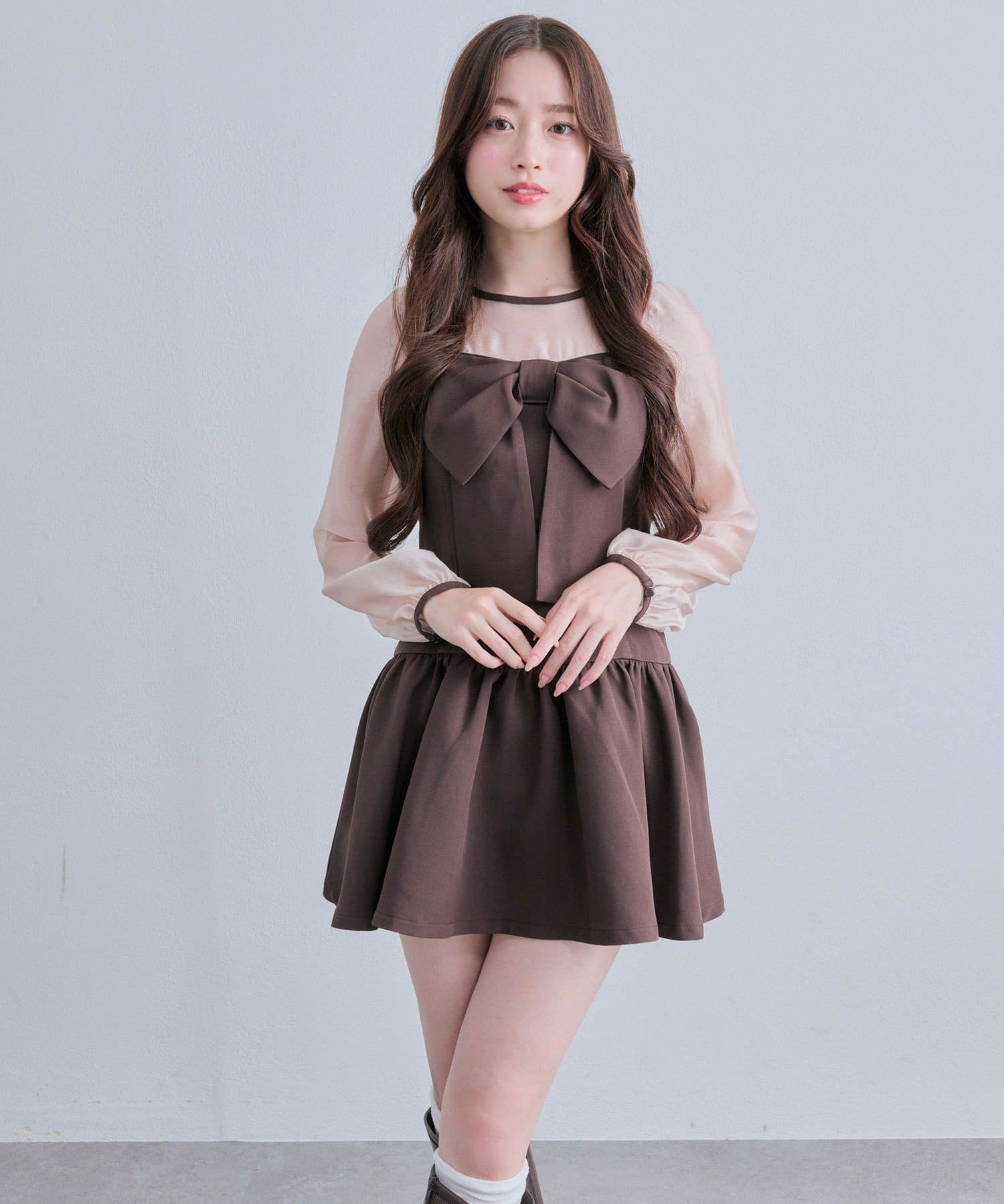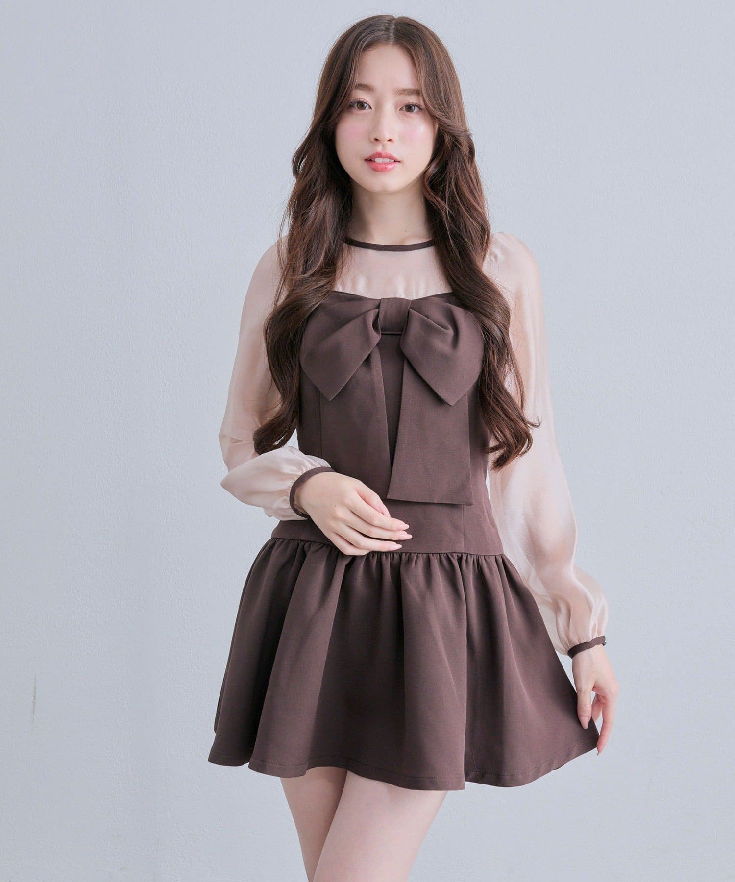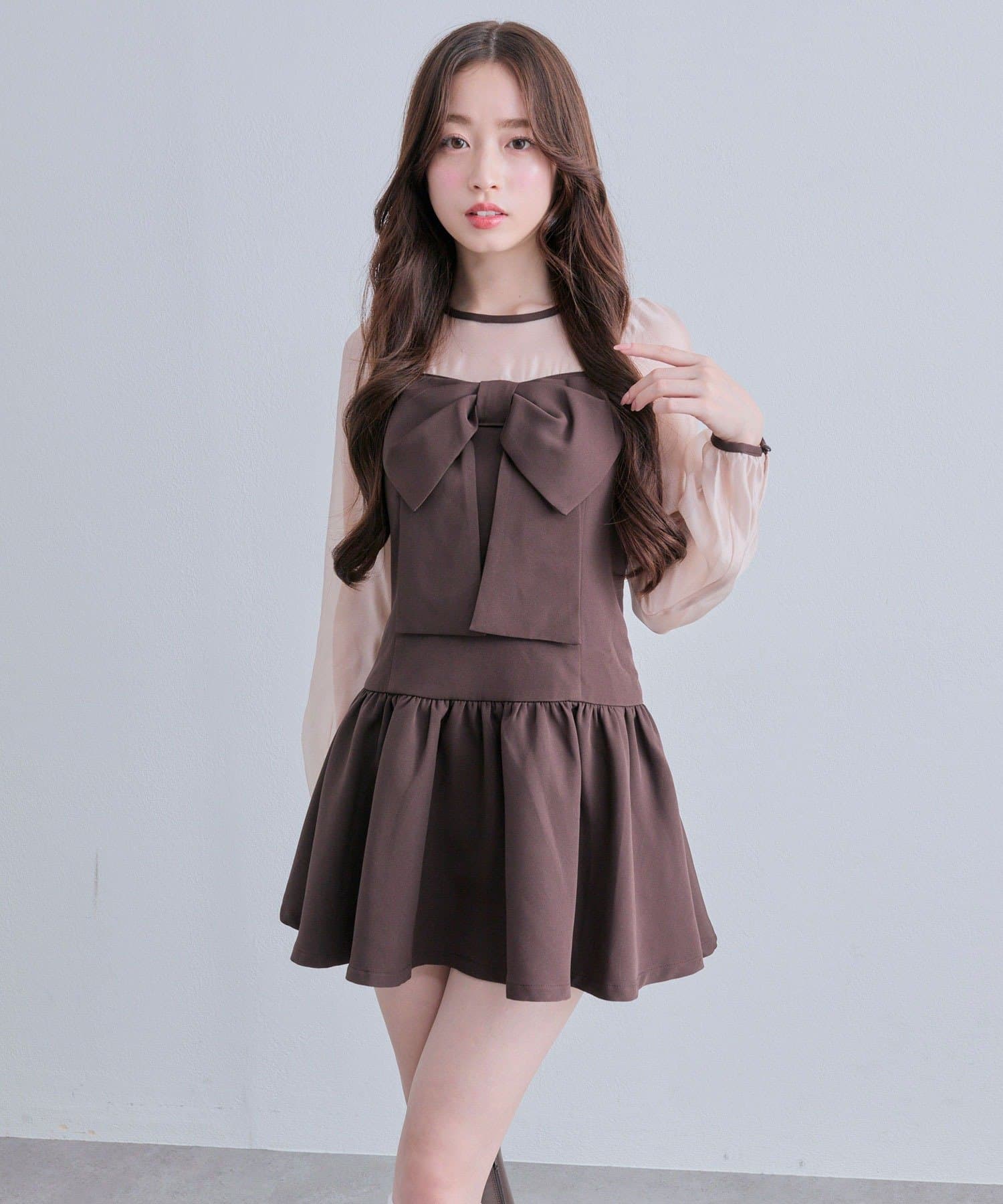 ・フロントの大きなリボンがかわいい、オケージョンにもぴったりなミニワンピース。