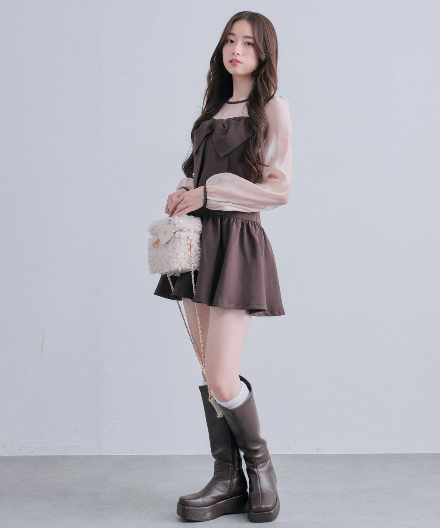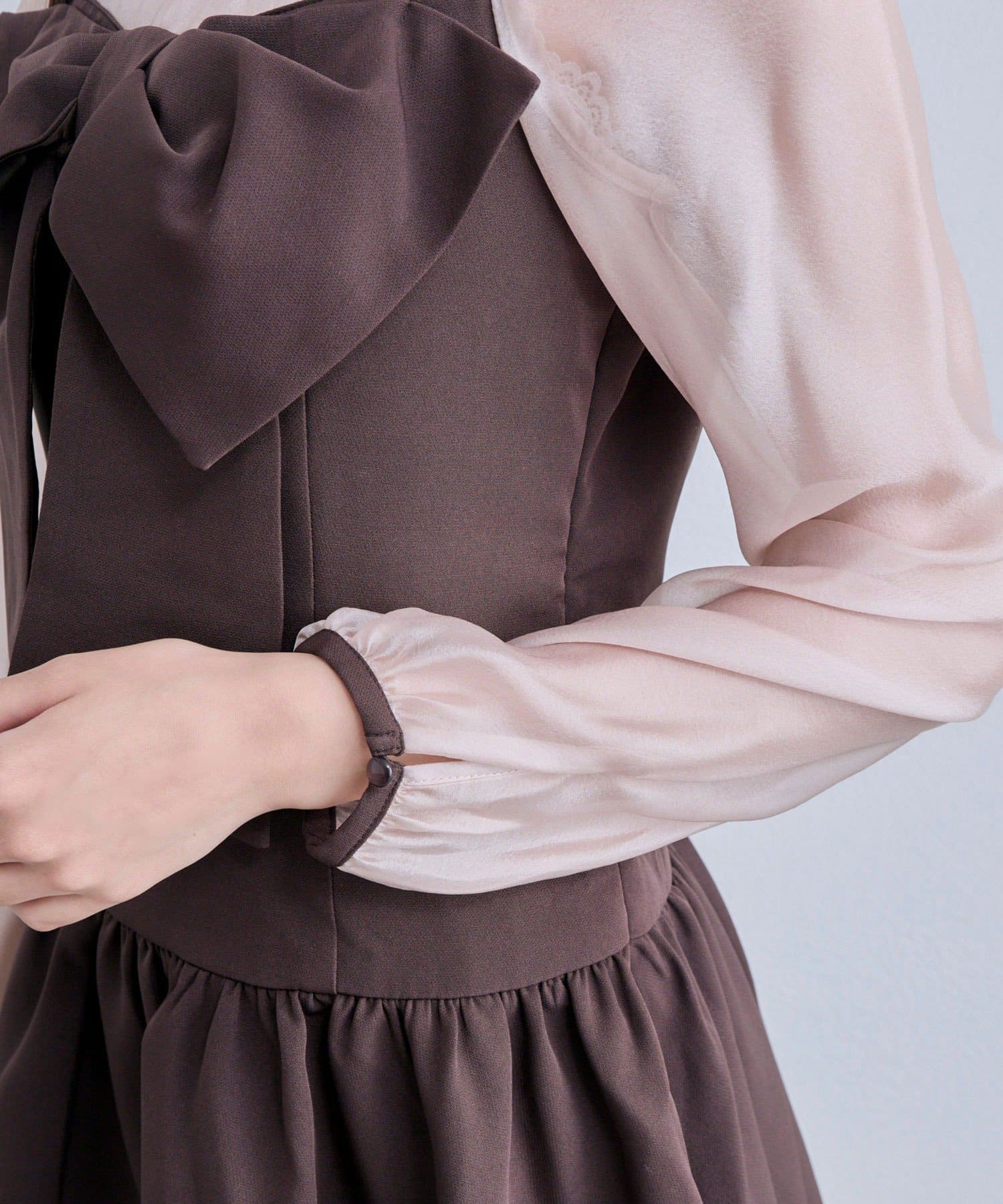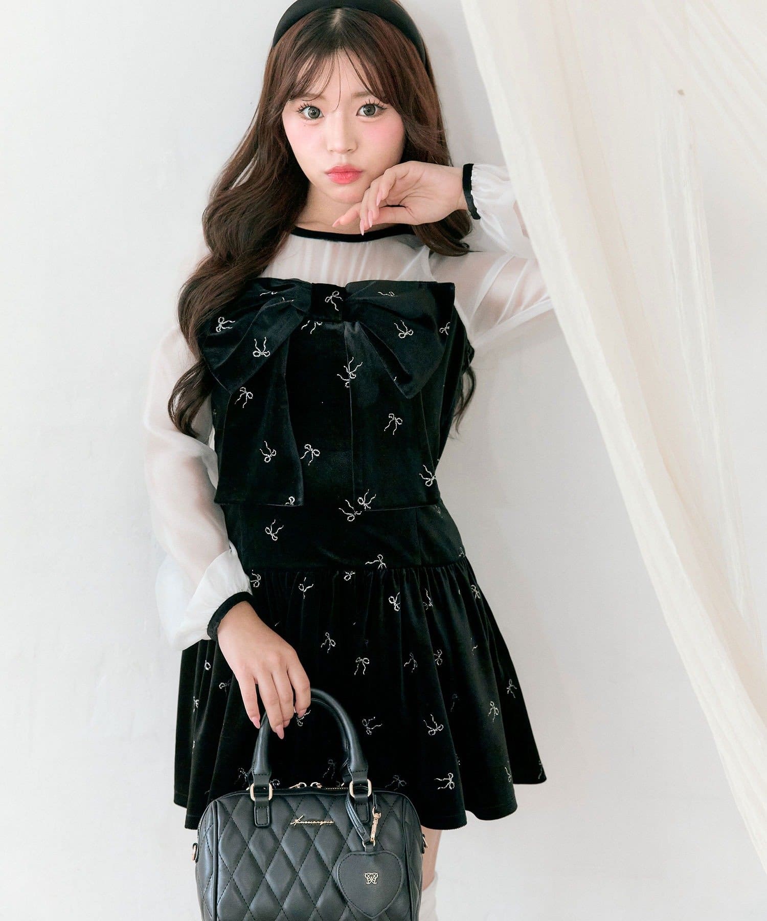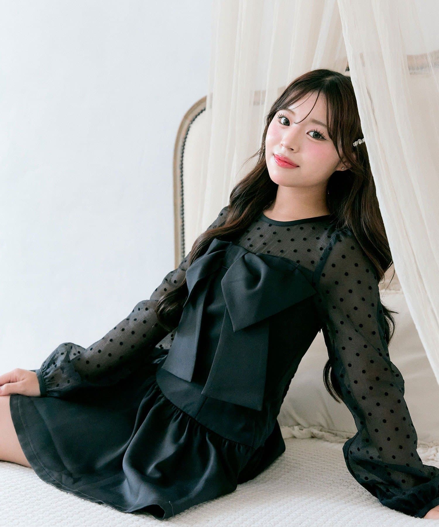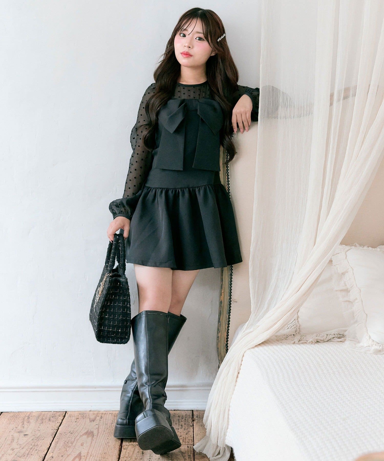 ・フロントの大きなリボンがかわいい、オケージョンにもぴったりなミニワンピース。