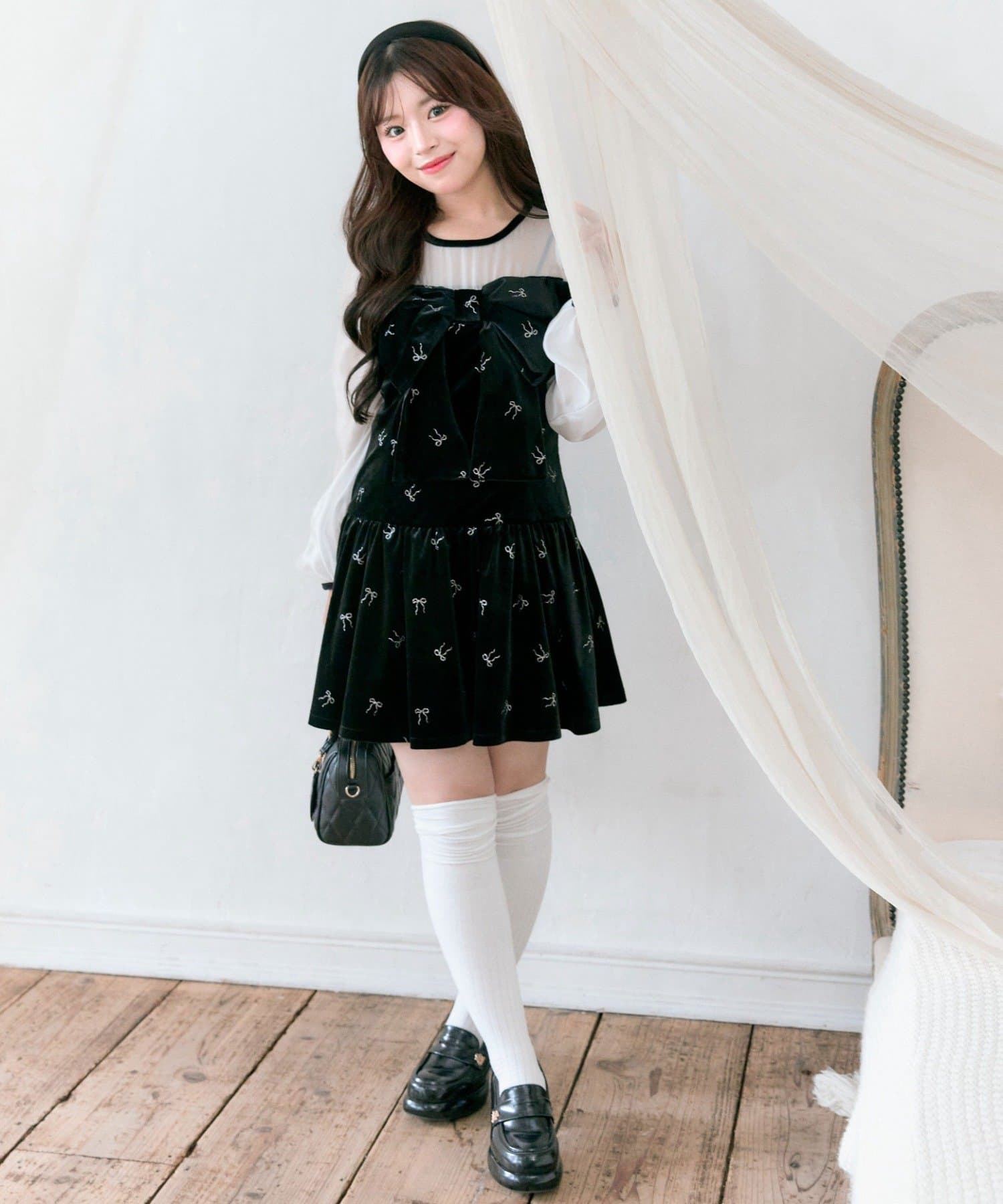 • OLIVE des OLIVE(オリーブ デ オリーブ) 【TwinkleCollection】リボンミニワンピース