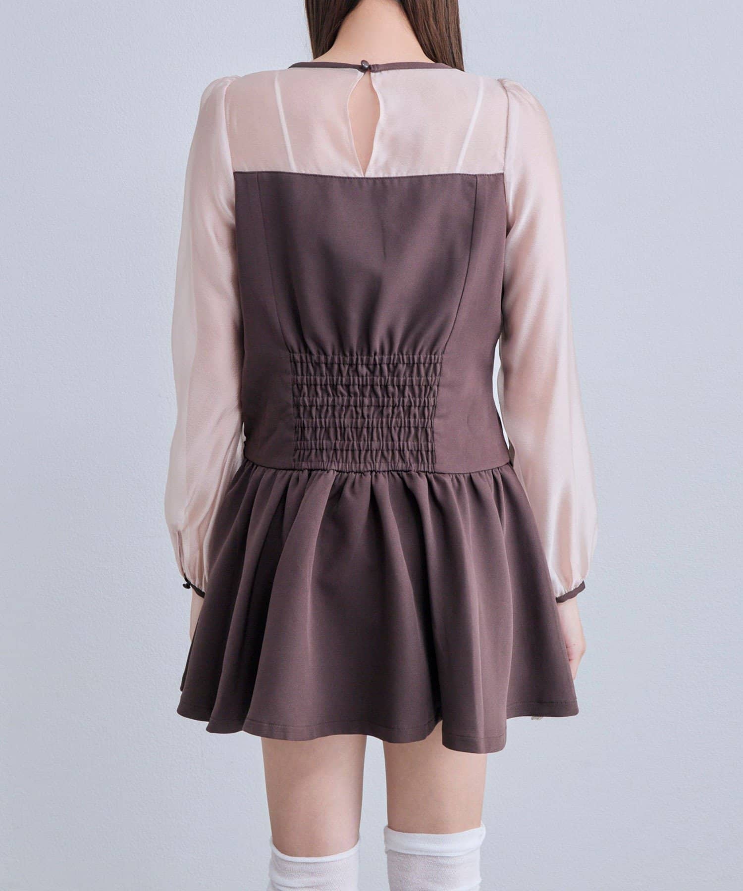 ・袖やデコルテ部分は透ける素材で、さりげなく肌見せが叶います。