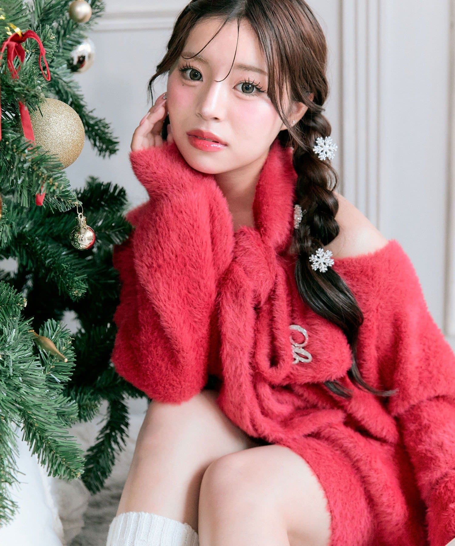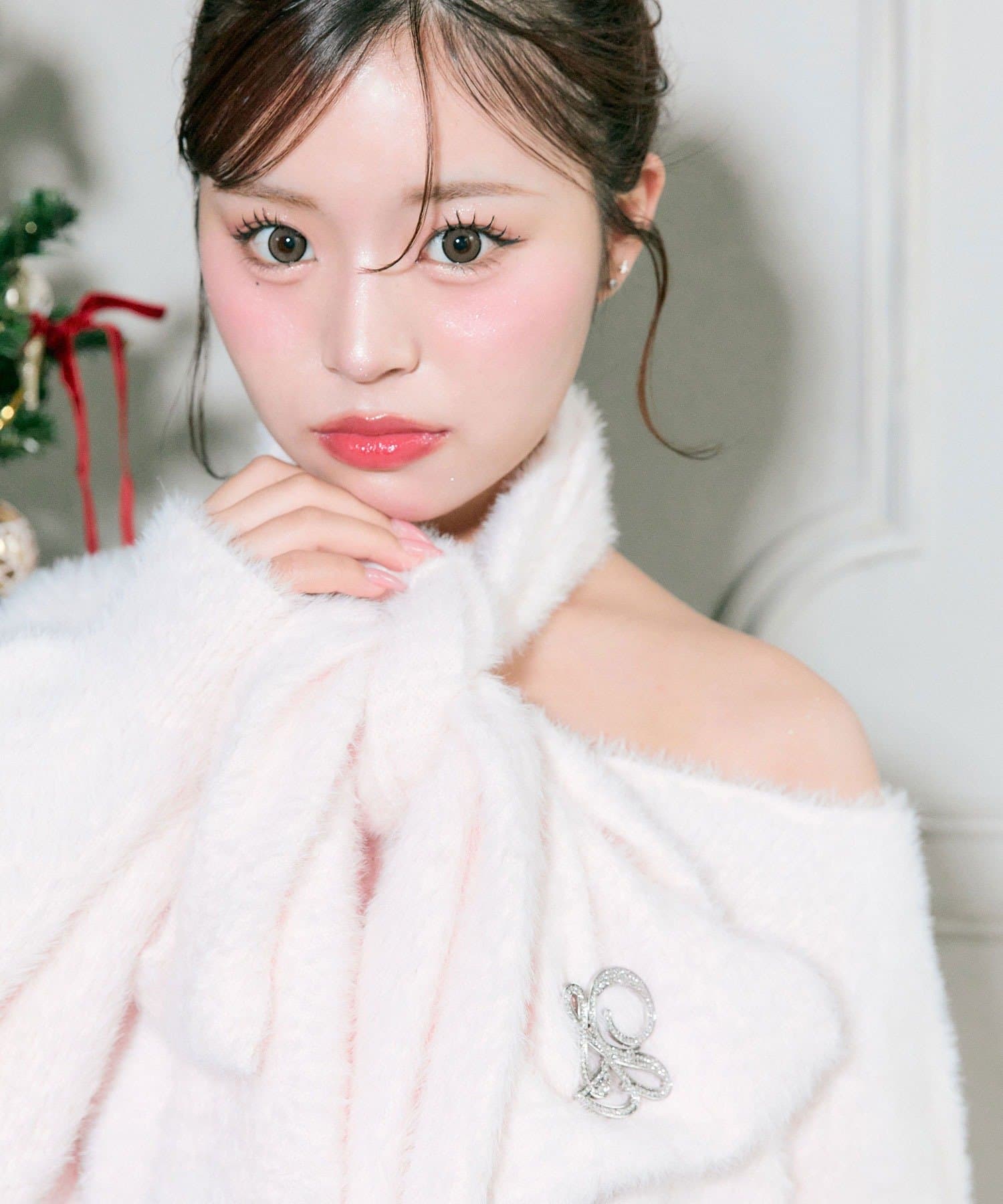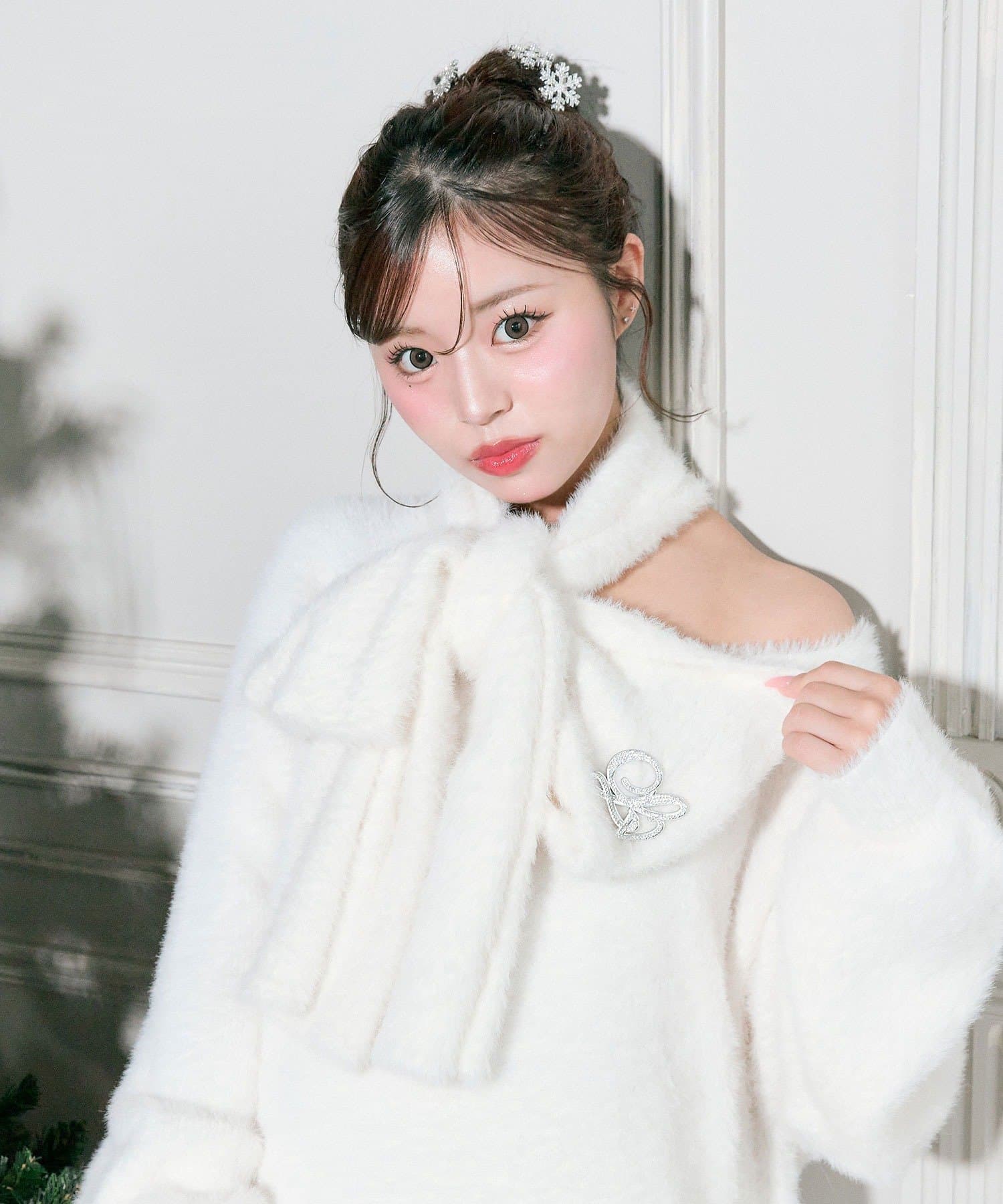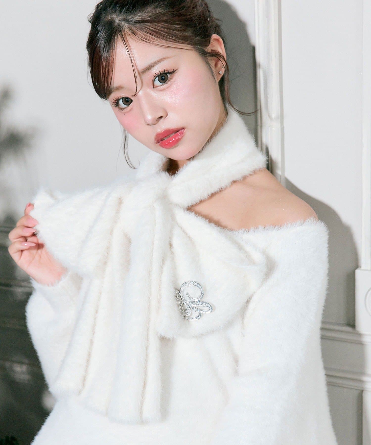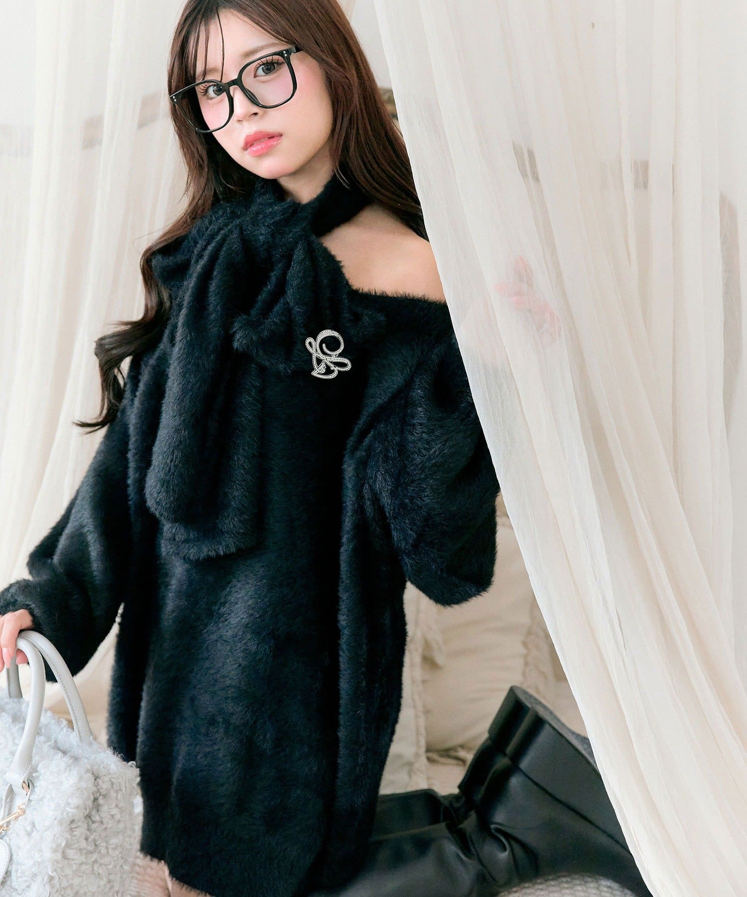 ・マフラー、ブローチ、ニットワンピースで分かれてるので、別々でも使えて着回し力抜群です。