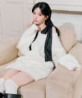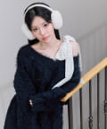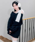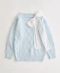・シーズンムード高まるケーブルニットに、大きなリボンをあしらったガーリーデザイン。