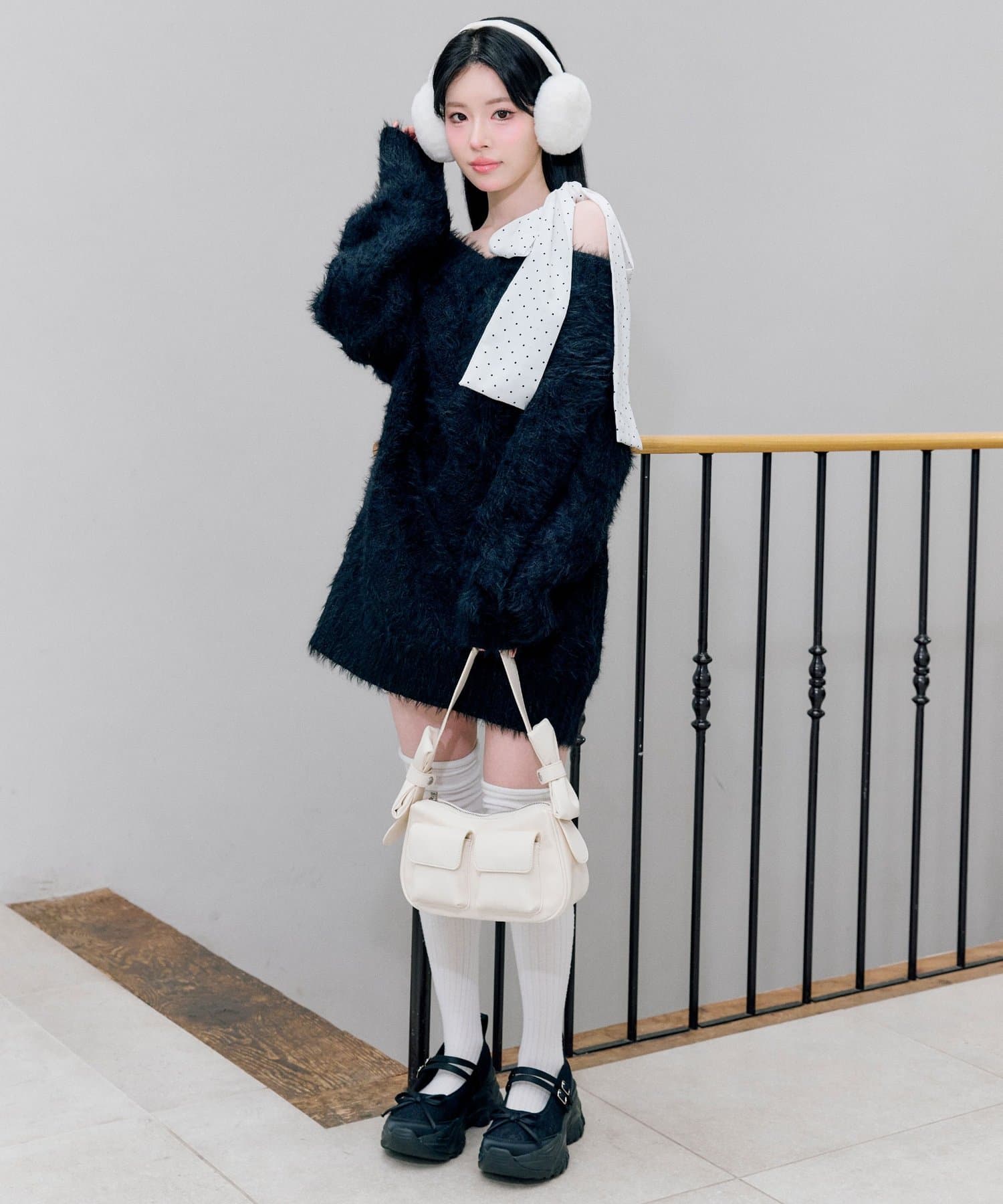・リボンはボタンで取り外し可能で、ワンショルやオフショルなどアレンジ次第でいろんな着こなしを楽しめます。