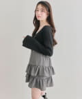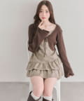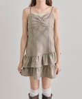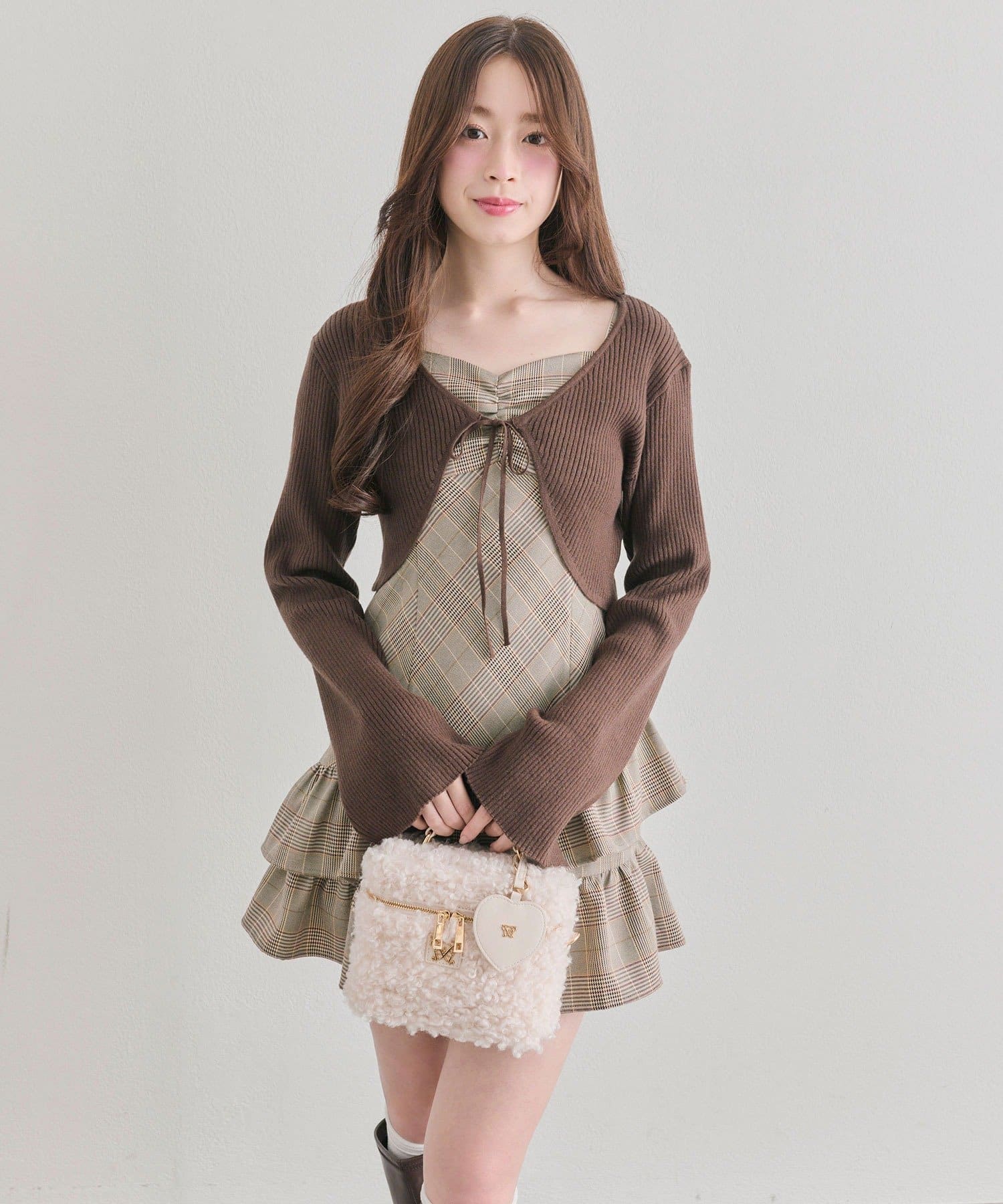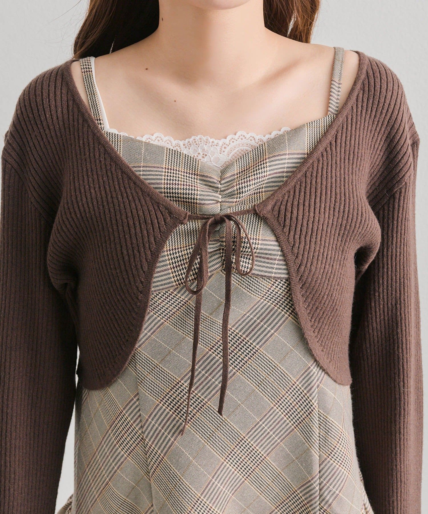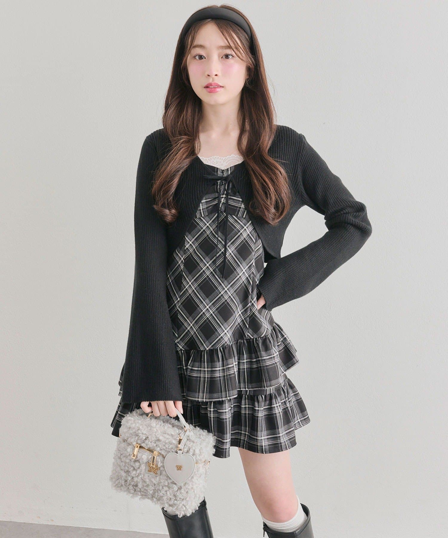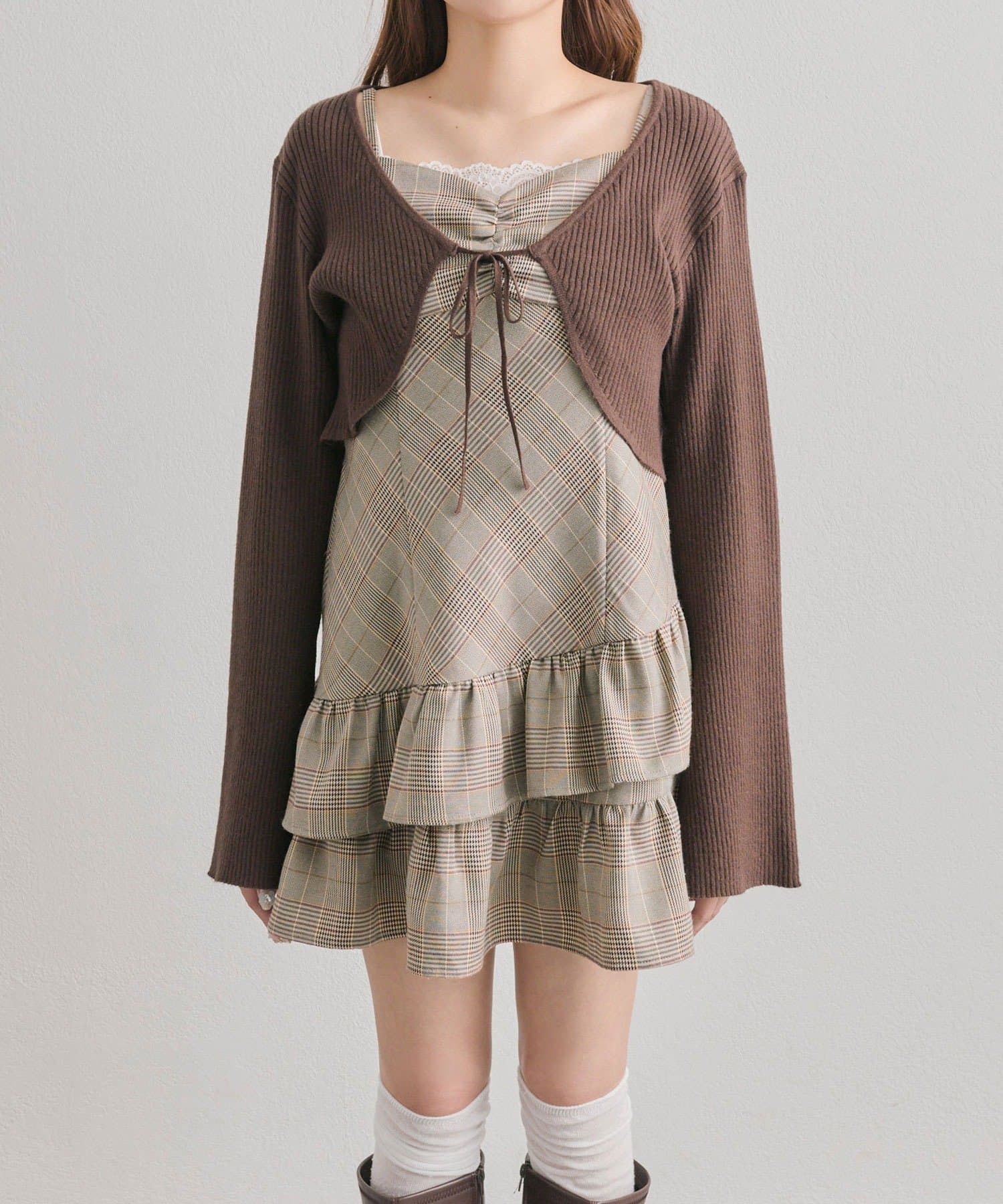 ・程よいボリュームのフリルデザインがかわいいキャミワンピースと、フィット感があり華奢見えするボレロのセット。