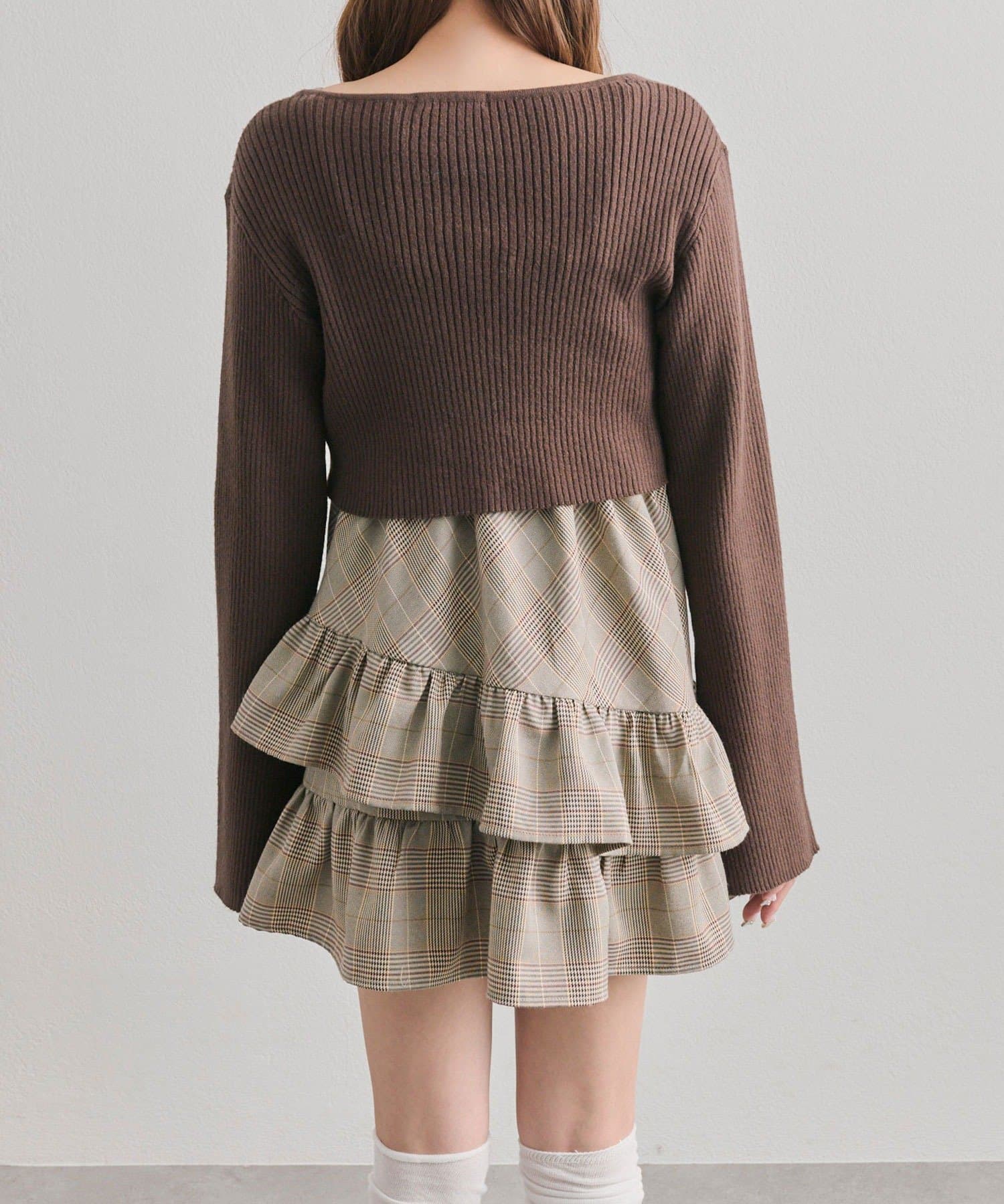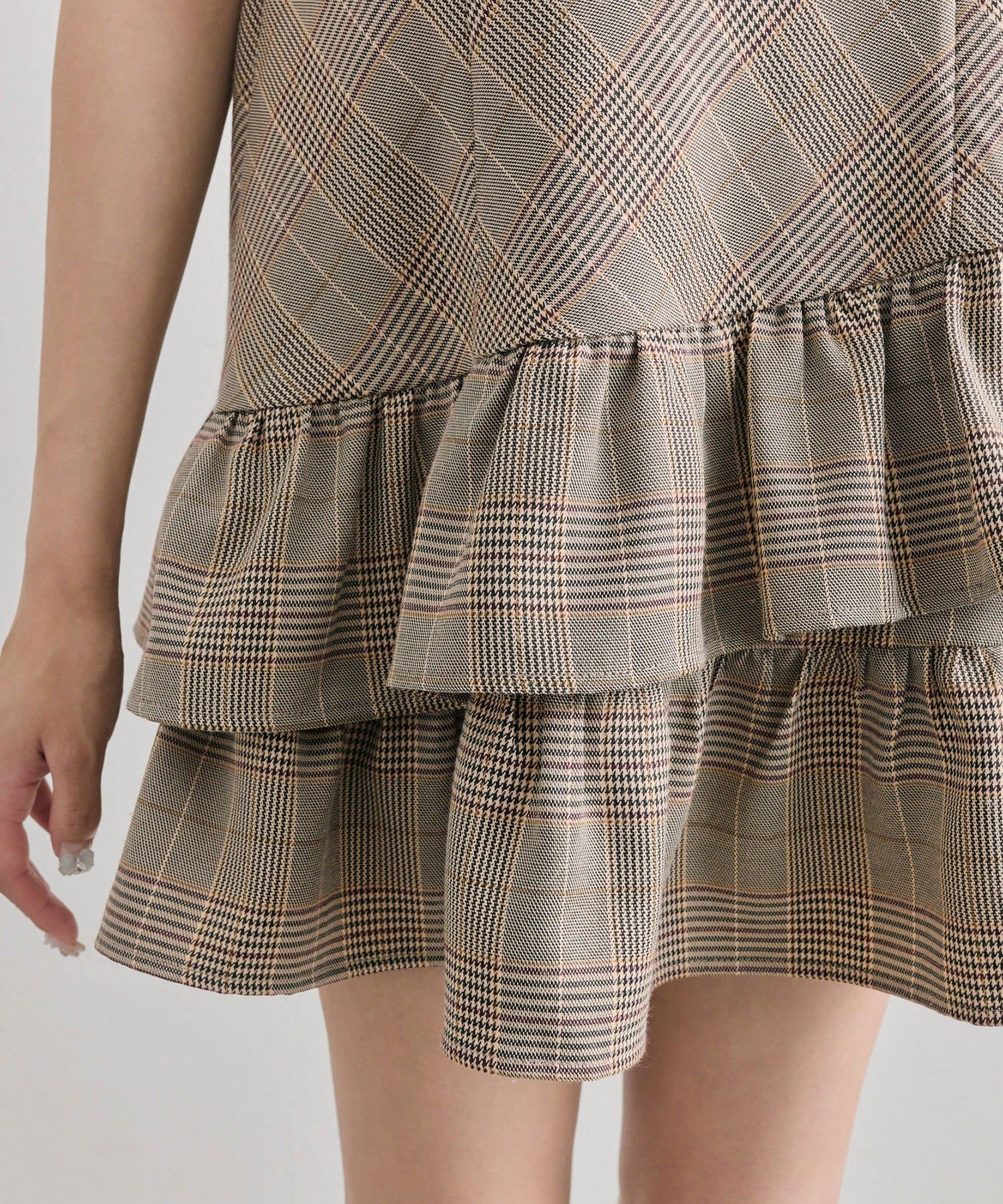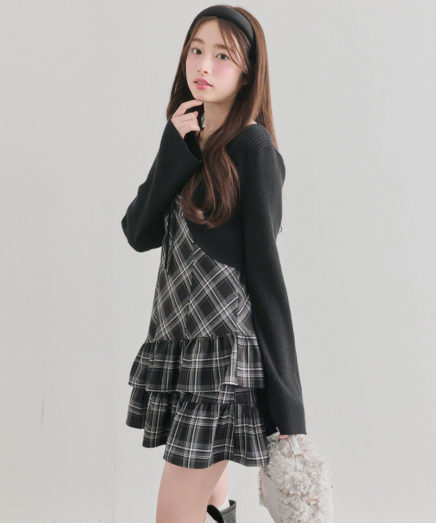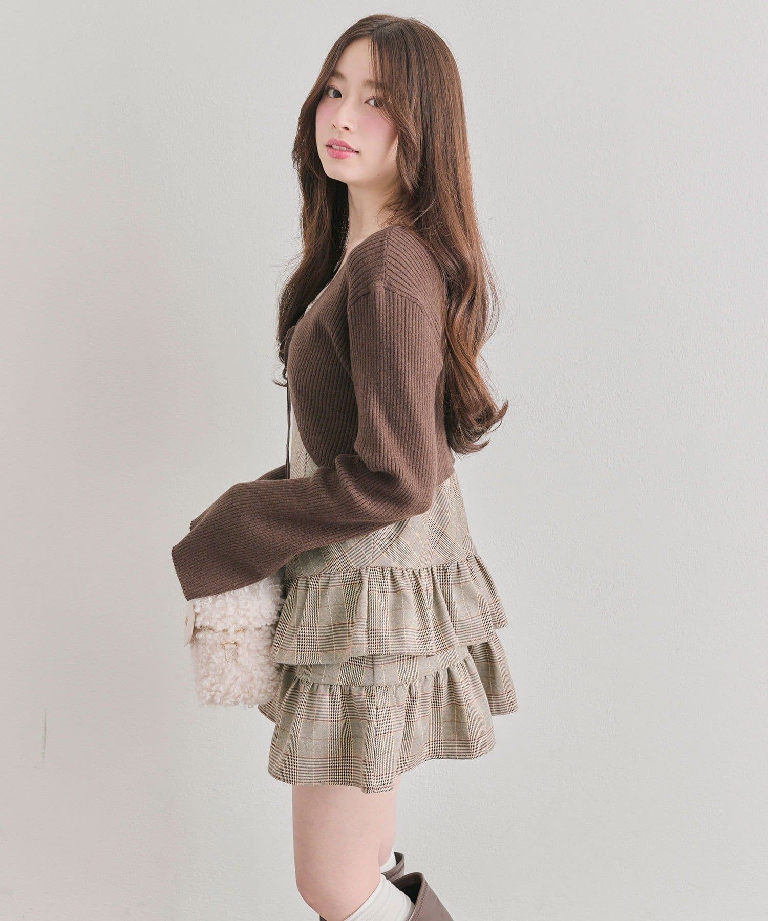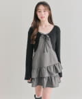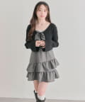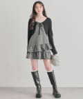 ・程よいボリュームのフリルデザインがかわいいキャミワンピースと、フィット感があり華奢見えするボレロのセット。