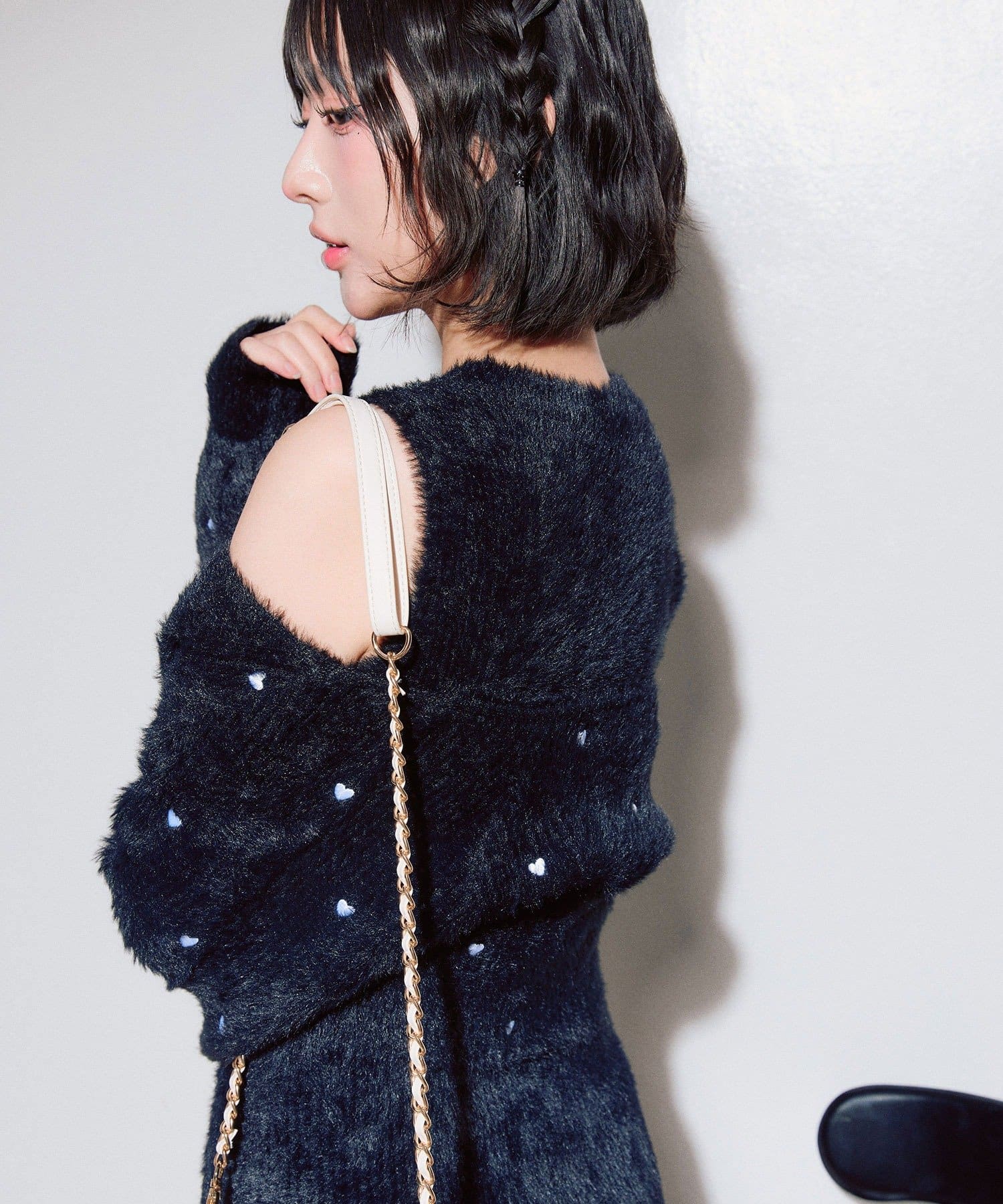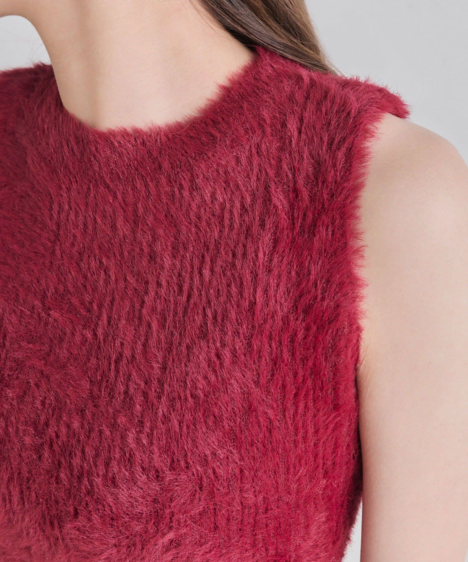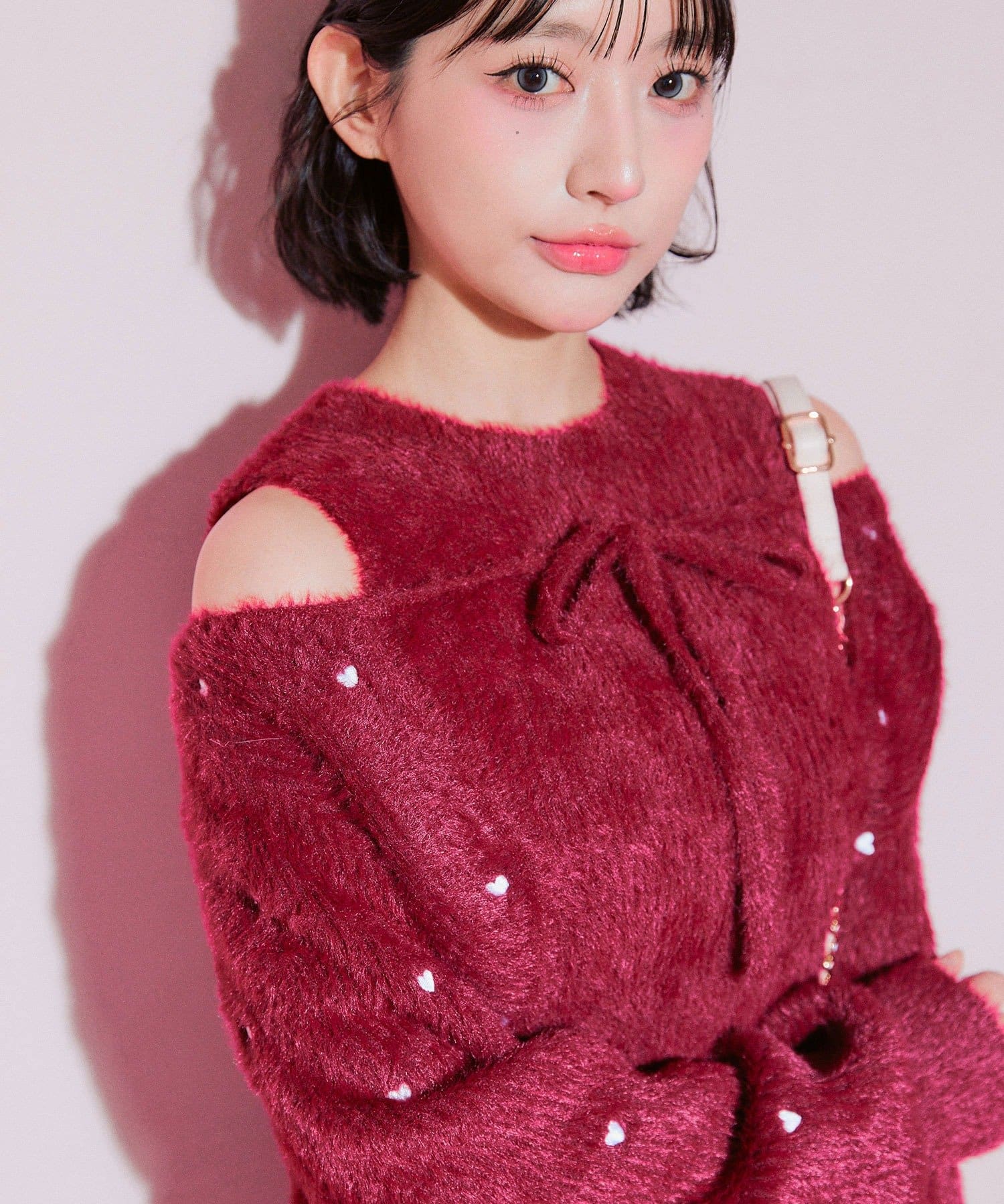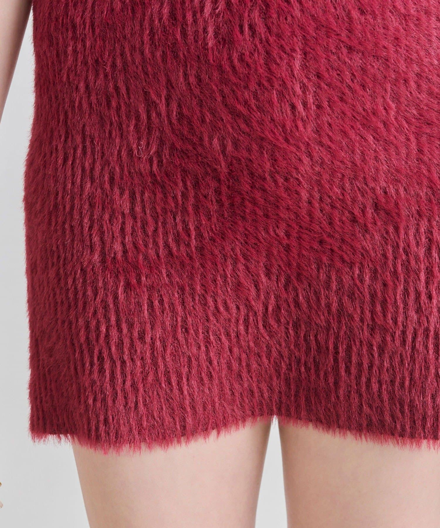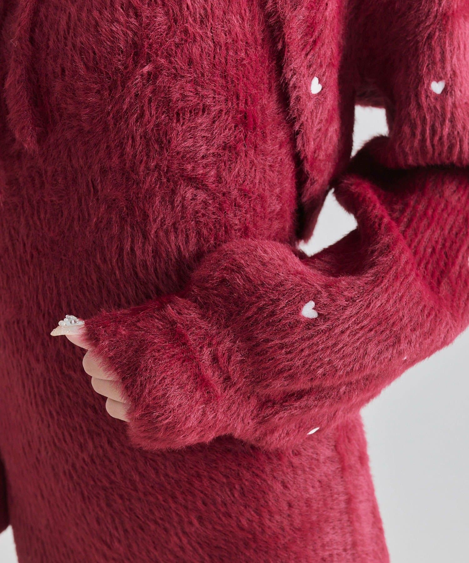 ・毛足の長いシャギーニット素材が女の子らしい柔らかな雰囲気を演出します。