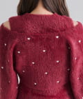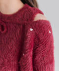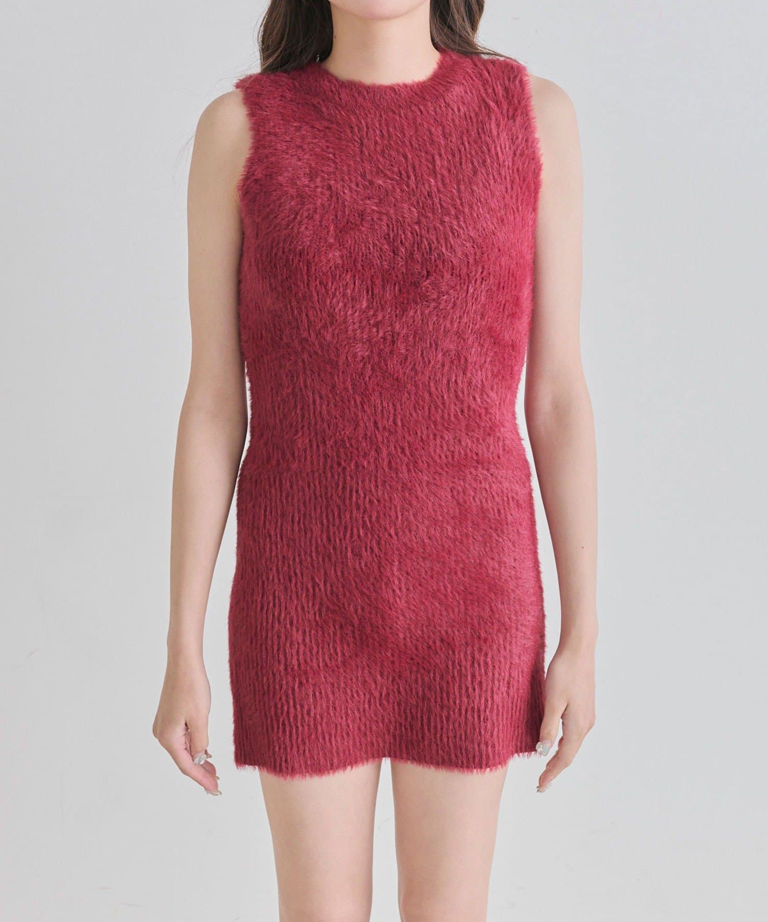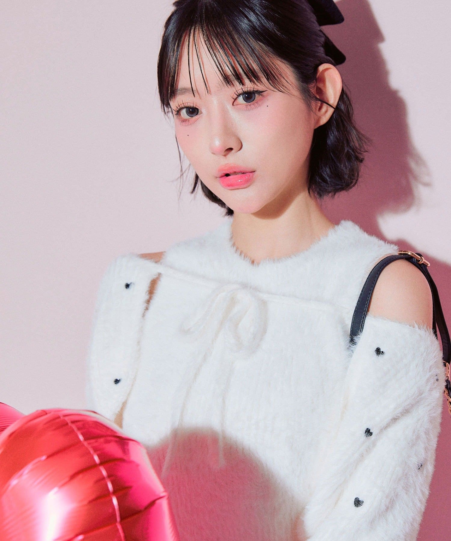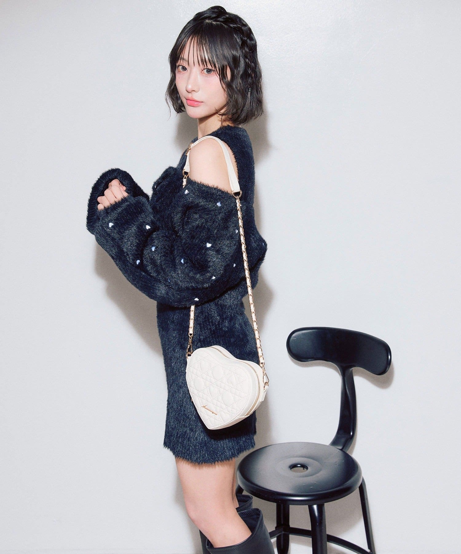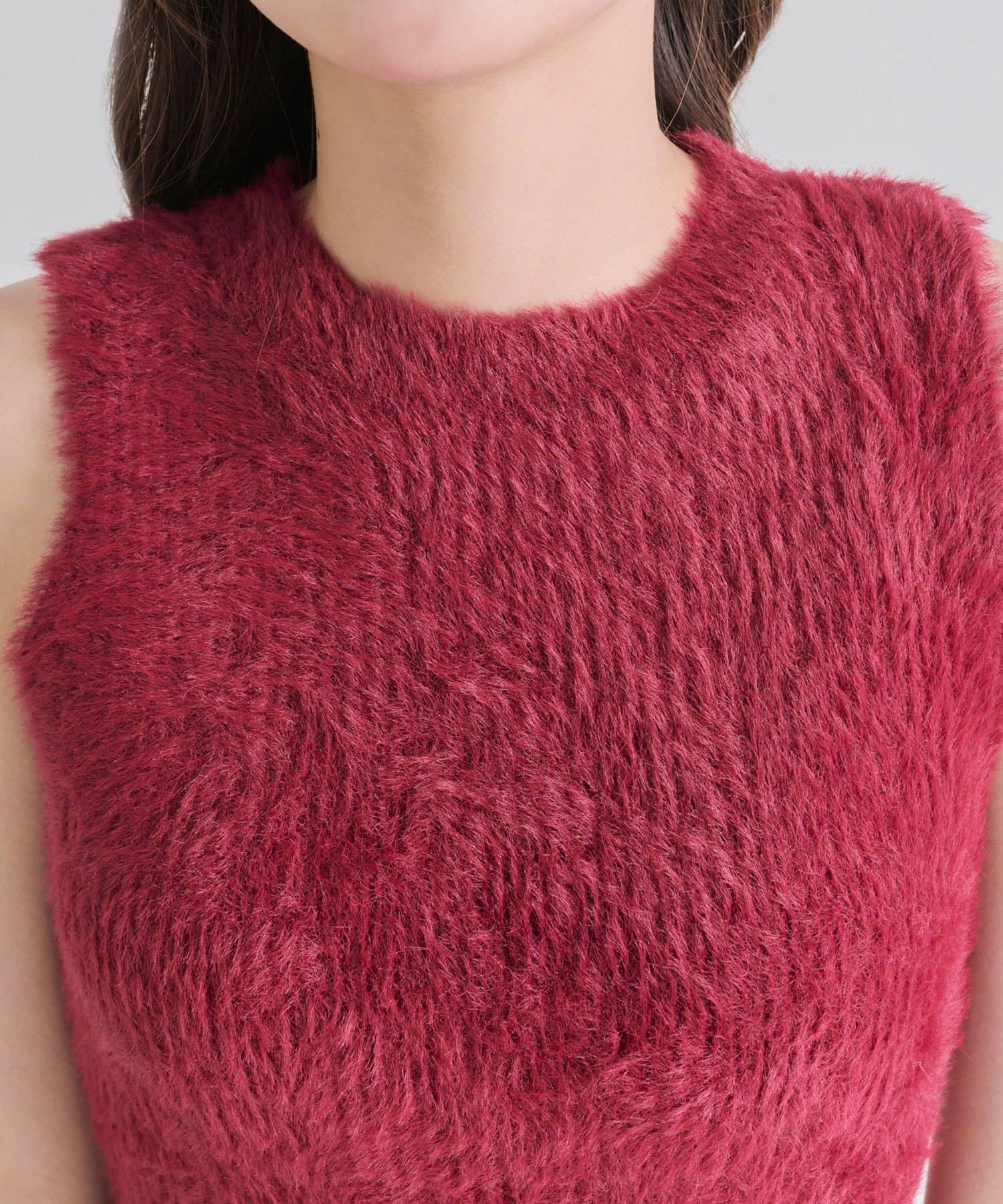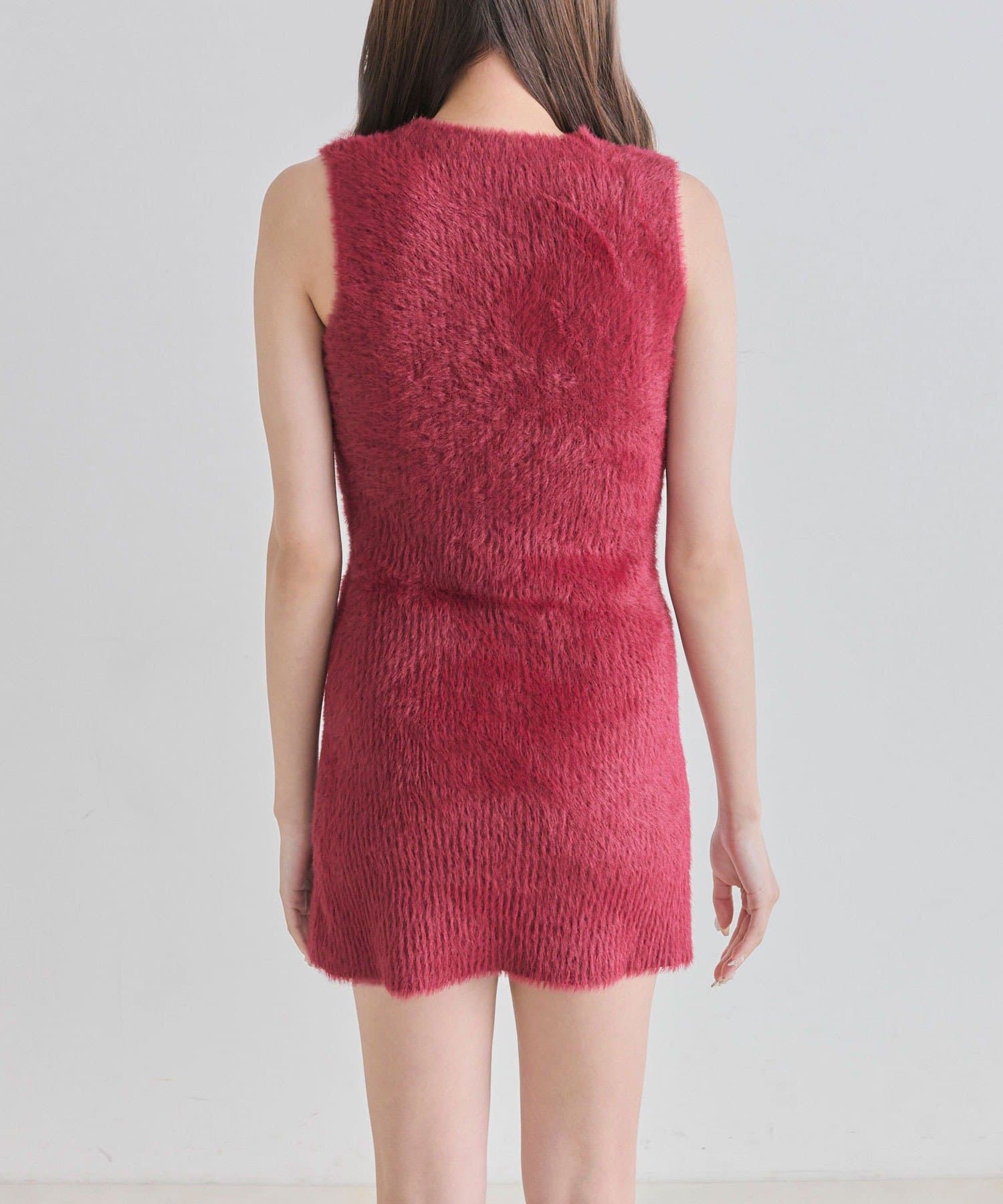 ・毛足の長いシャギーニット素材が女の子らしい柔らかな雰囲気を演出します。