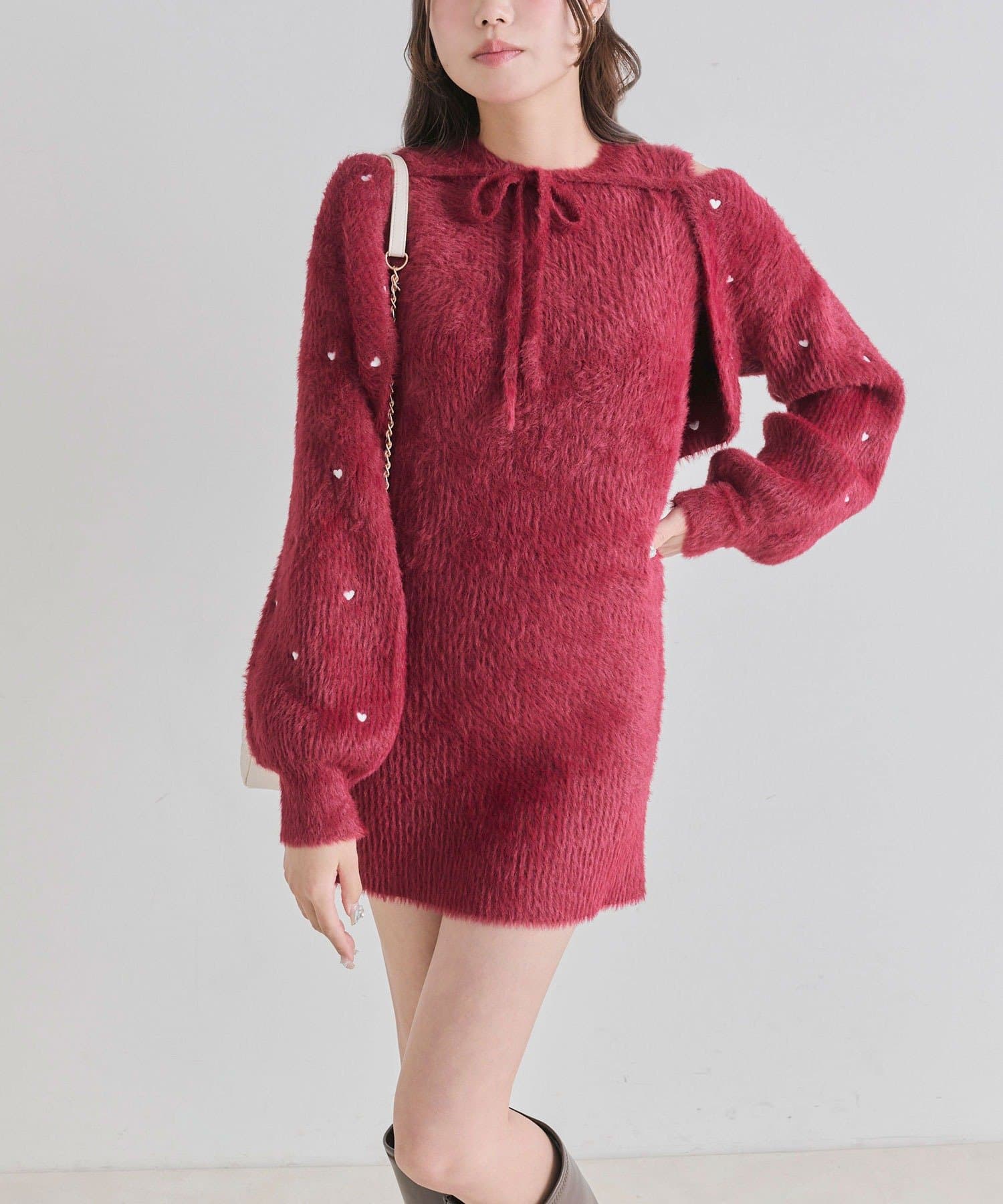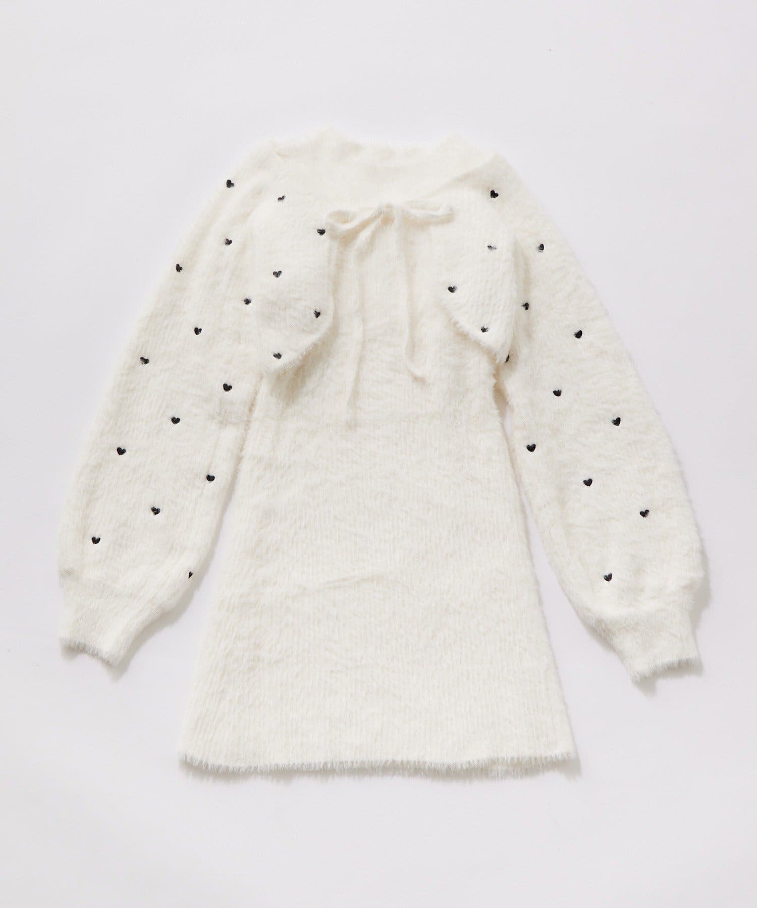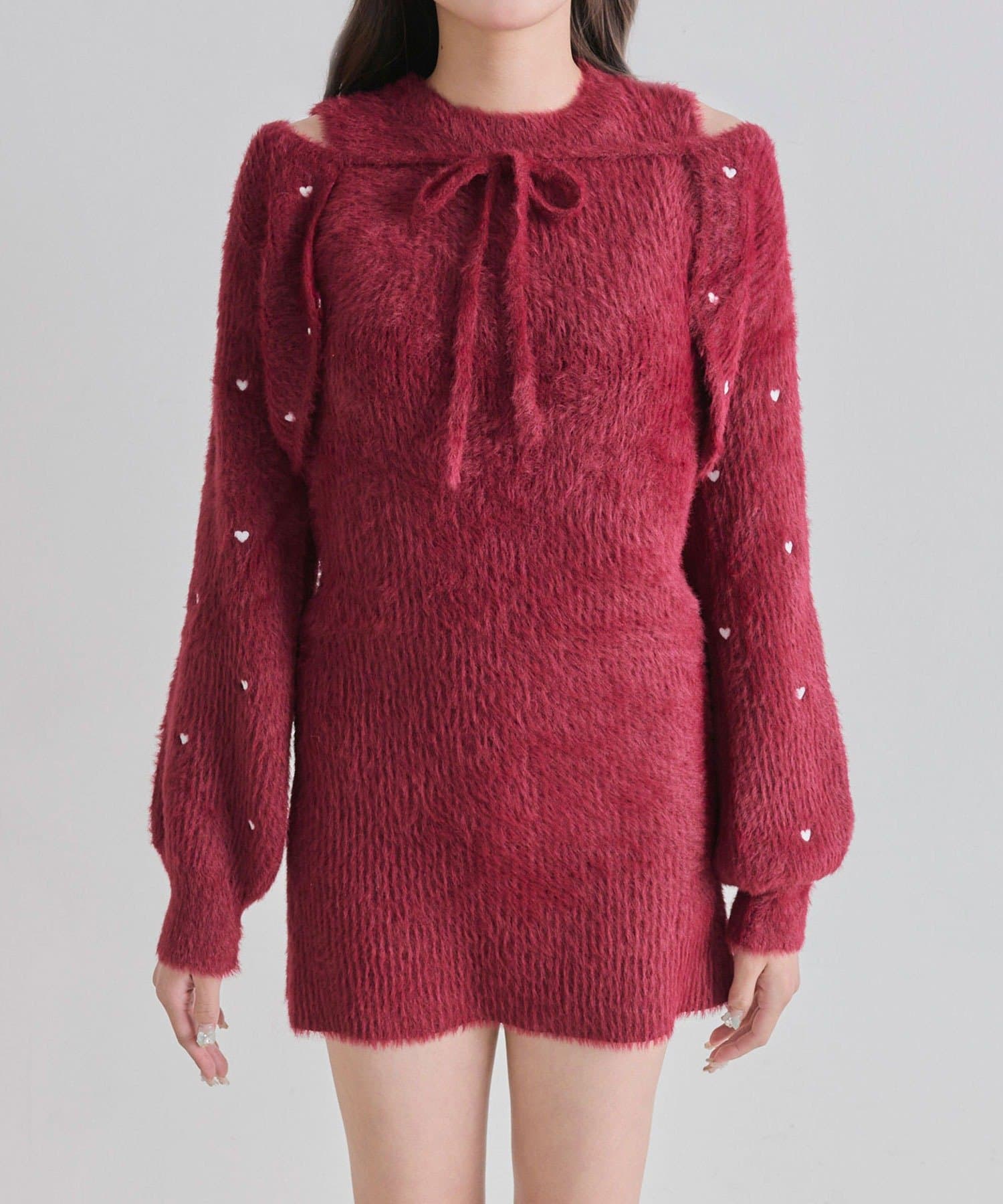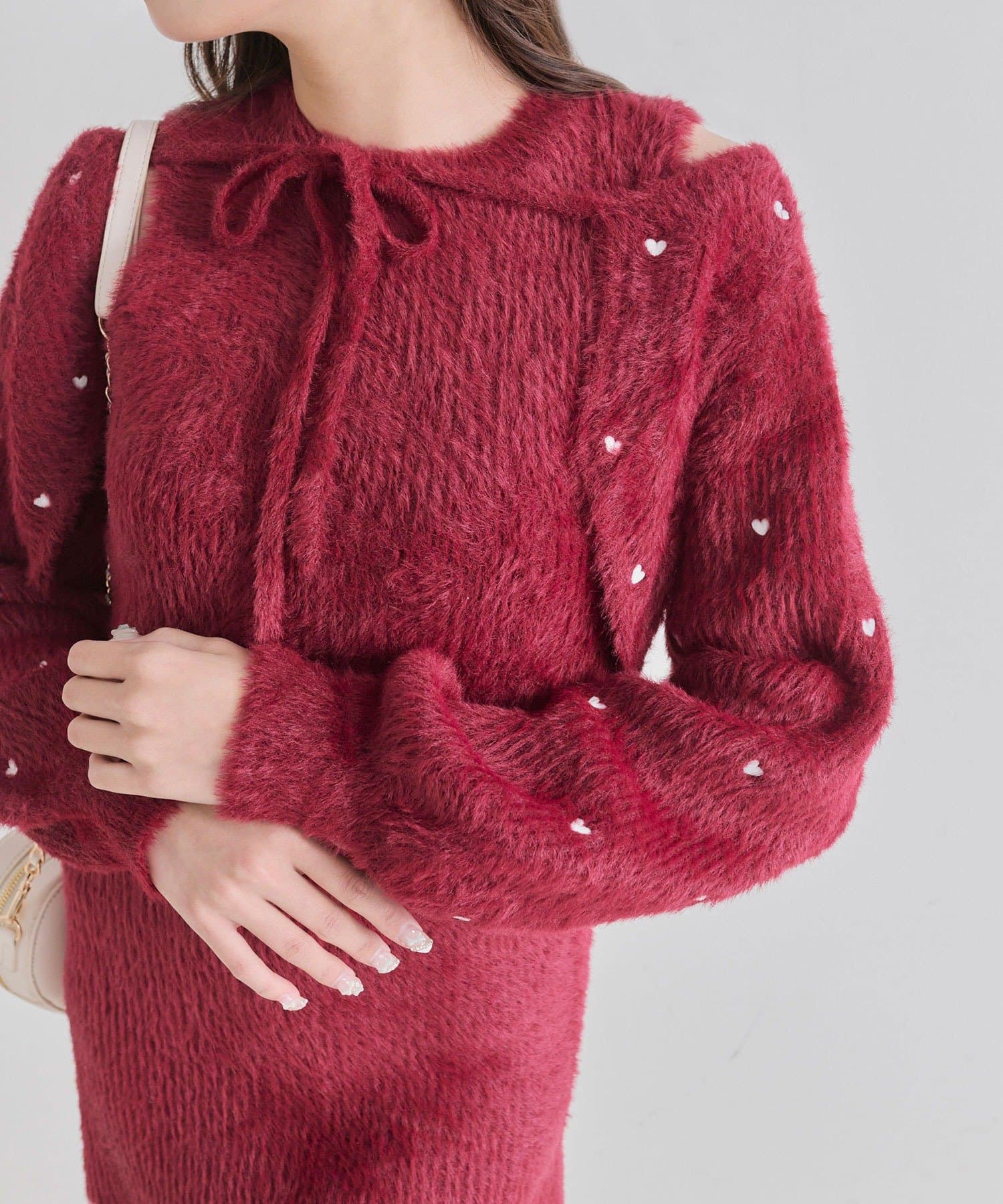 ・ハート刺繍がかわいいボレロと、ノースリーブですっきり着れるニットワンピのセットアイテム。