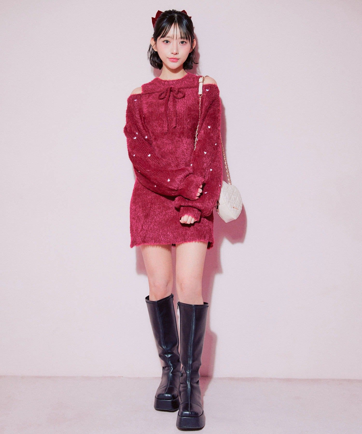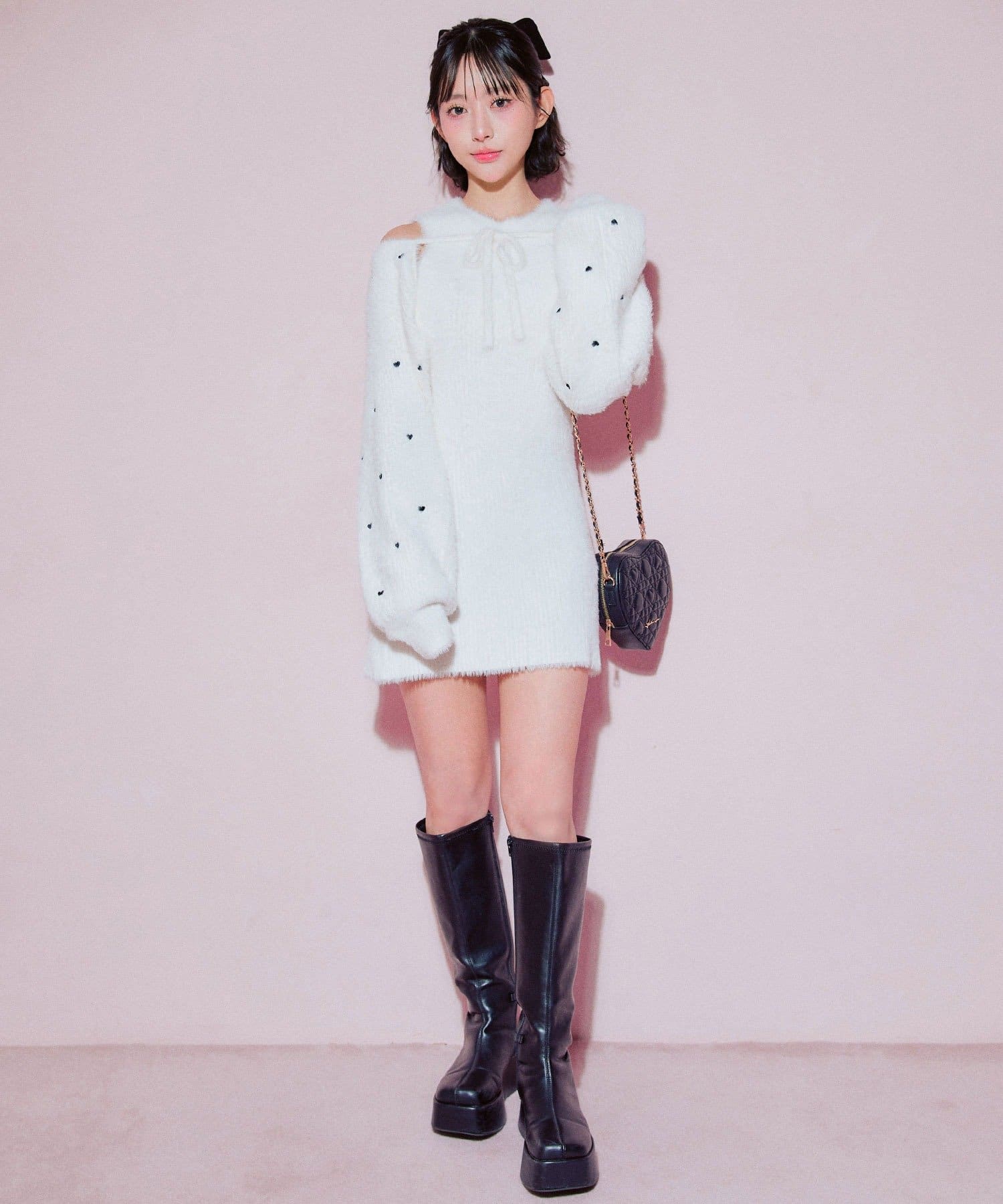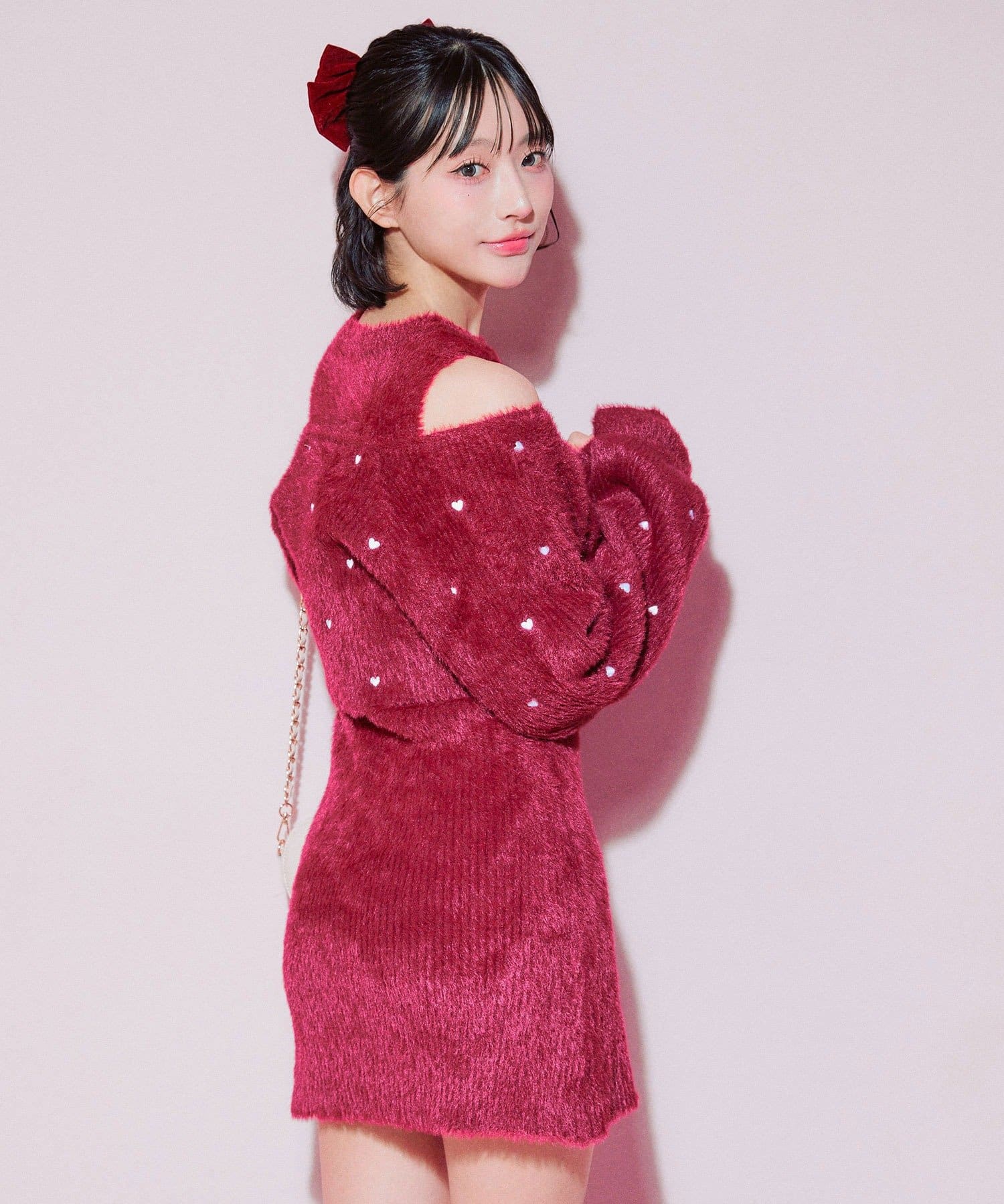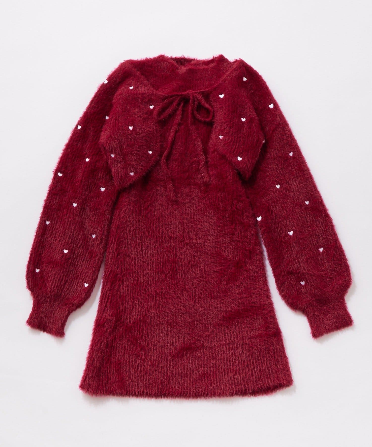 ・ハート刺繍がかわいいボレロと、ノースリーブですっきり着れるニットワンピのセットアイテム。