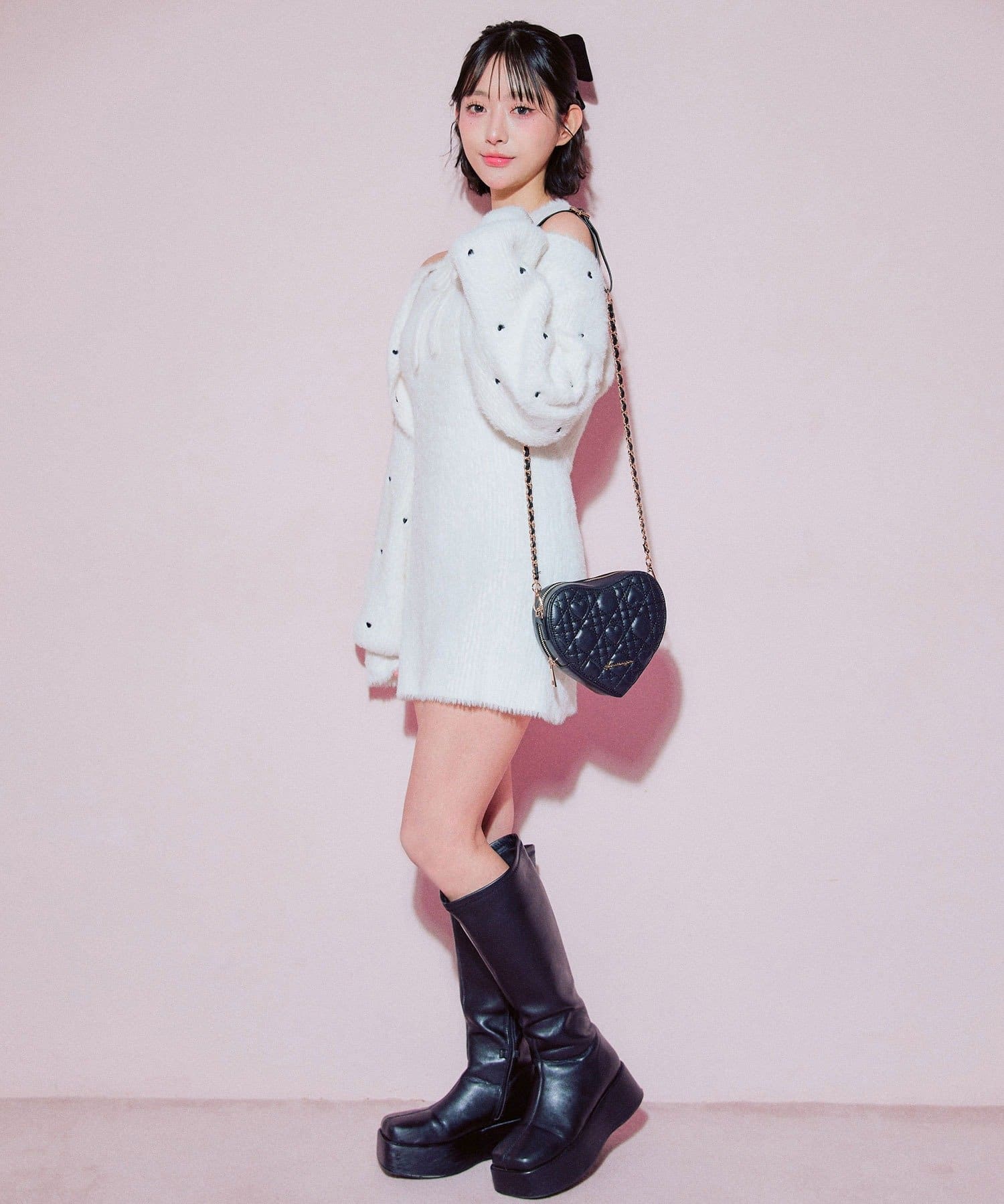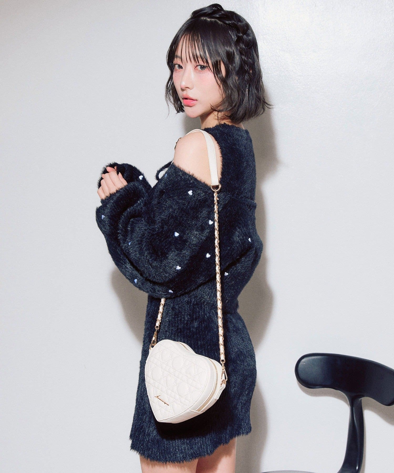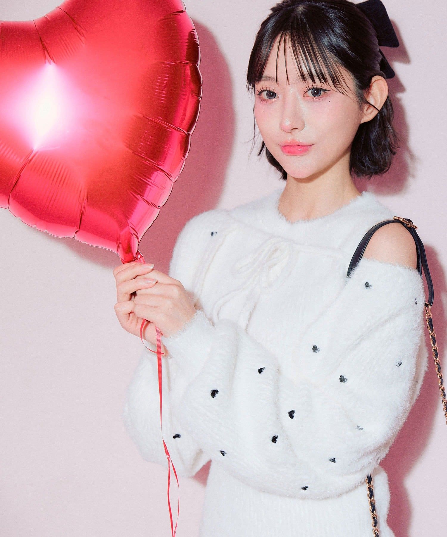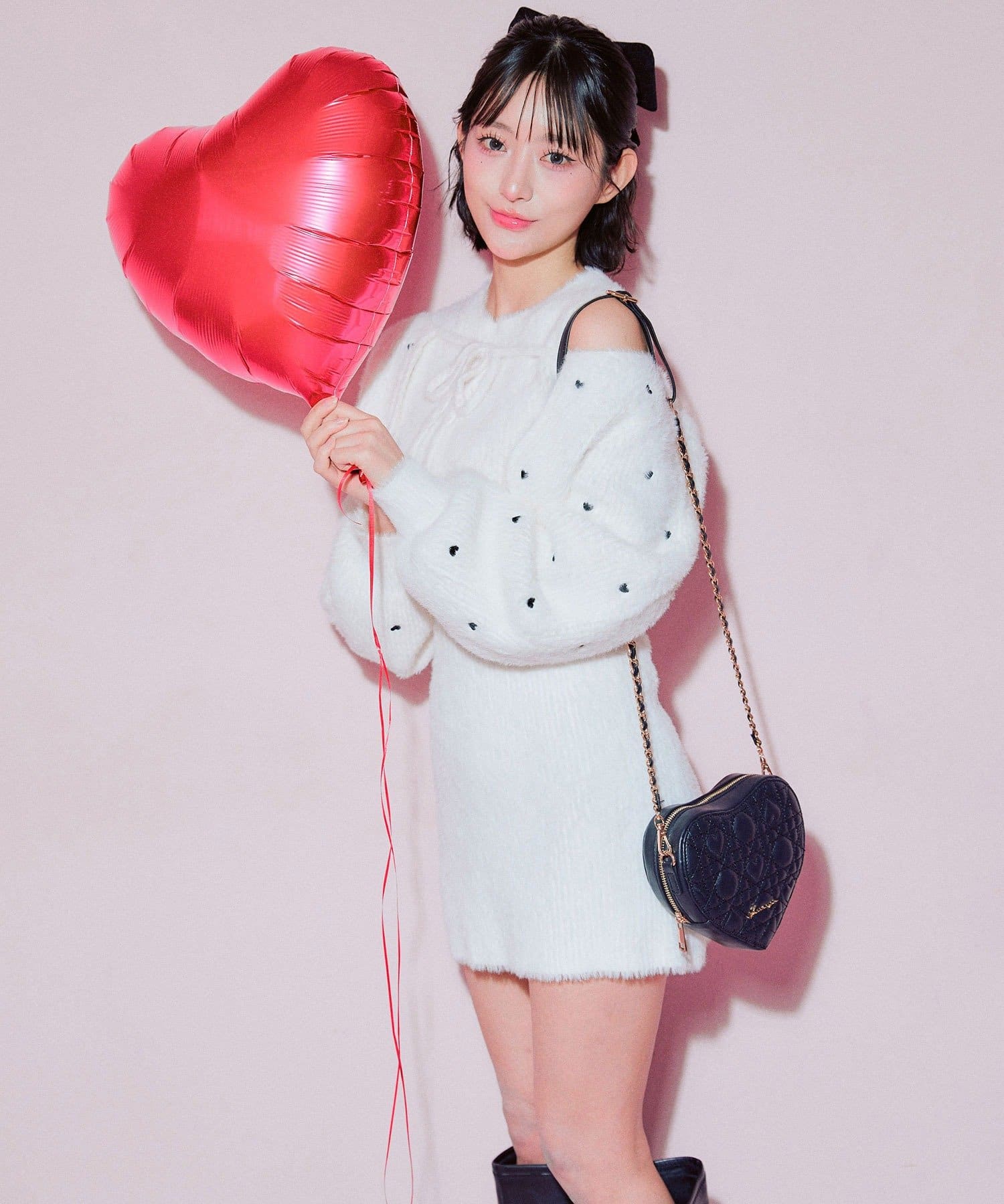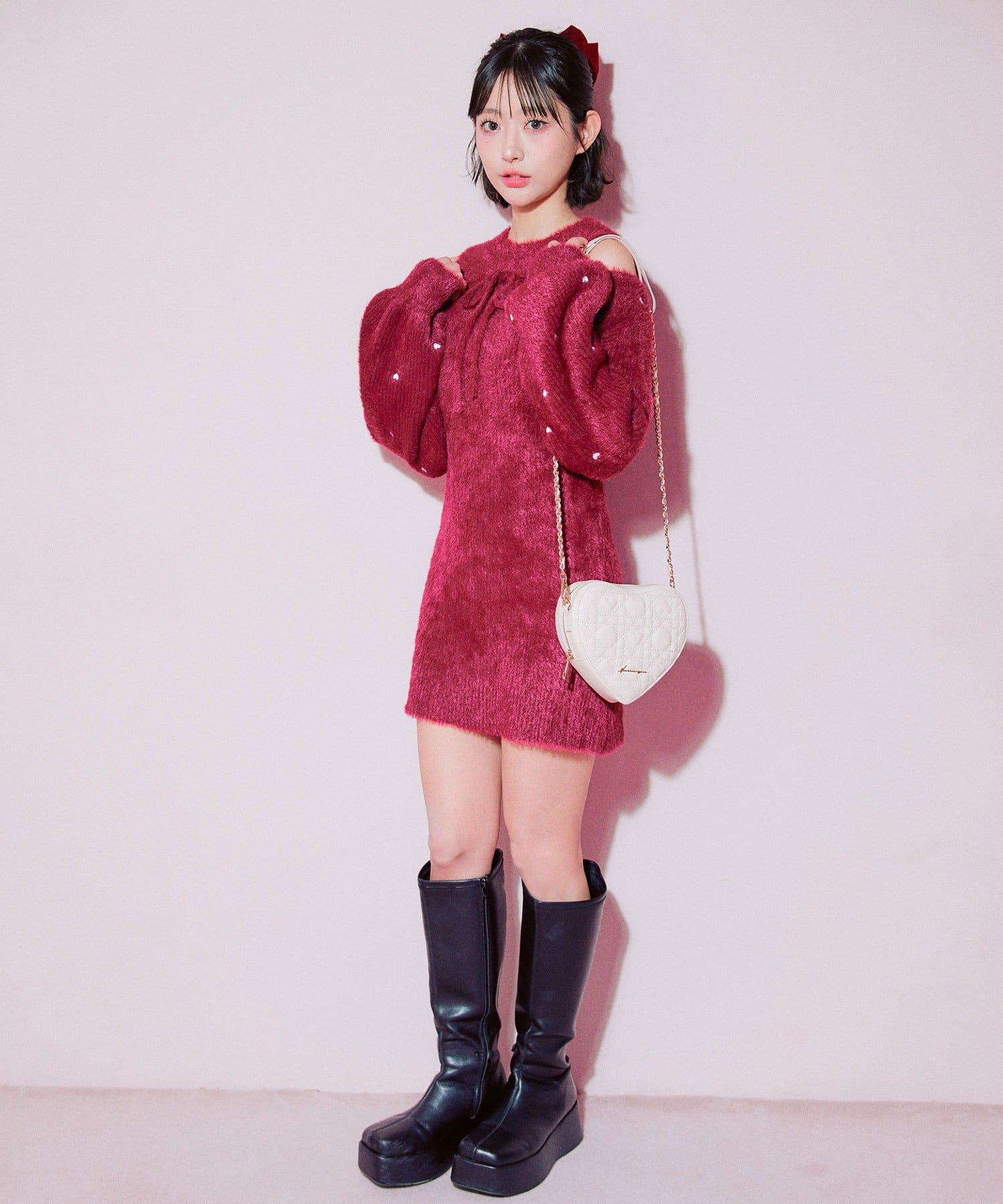 ・ハート刺繍がかわいいボレロと、ノースリーブですっきり着れるニットワンピのセットアイテム。