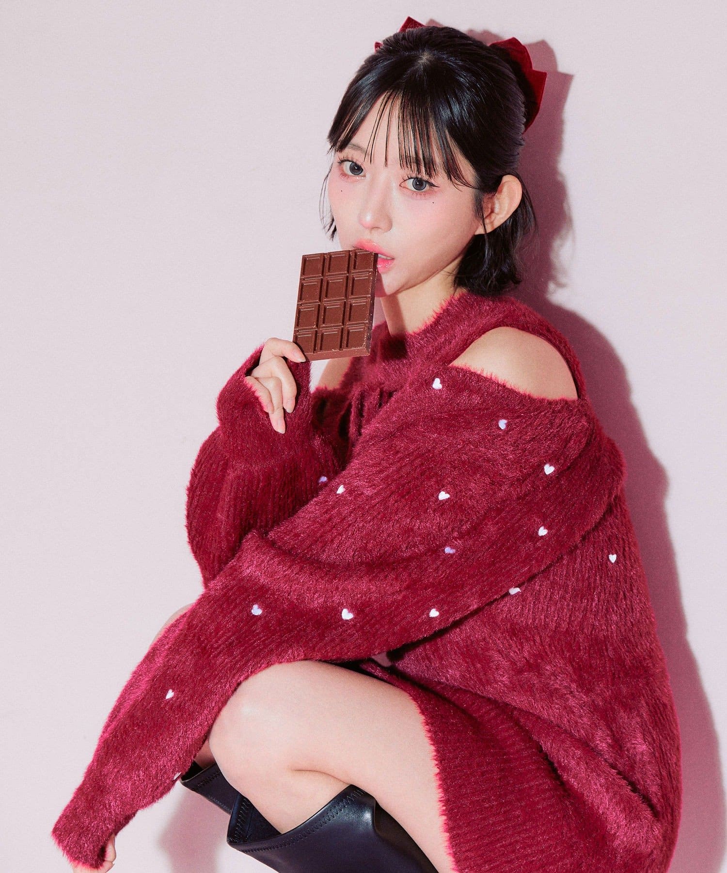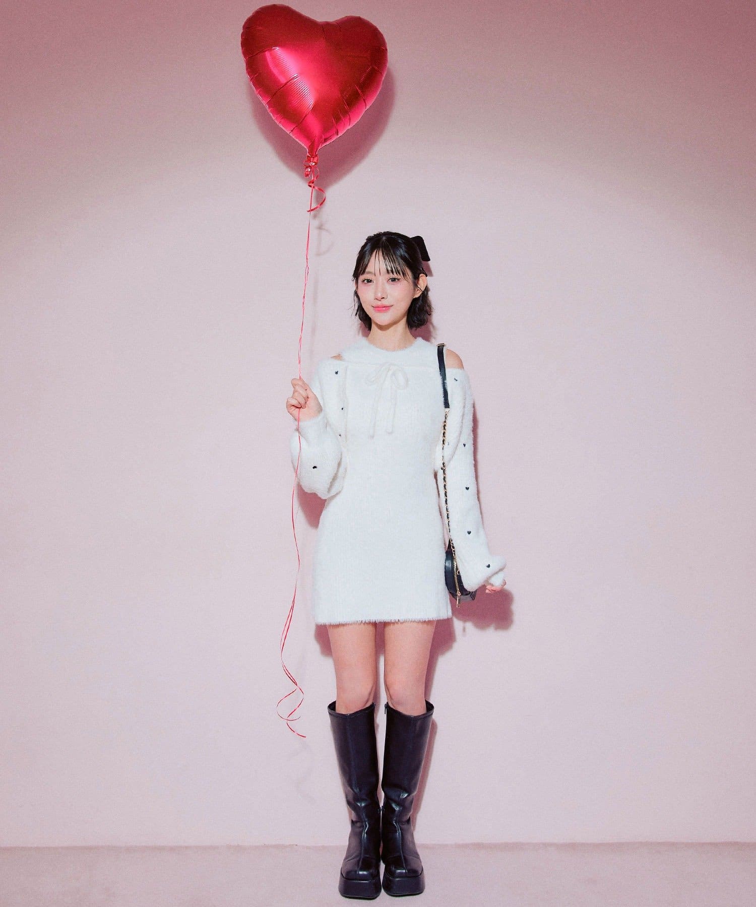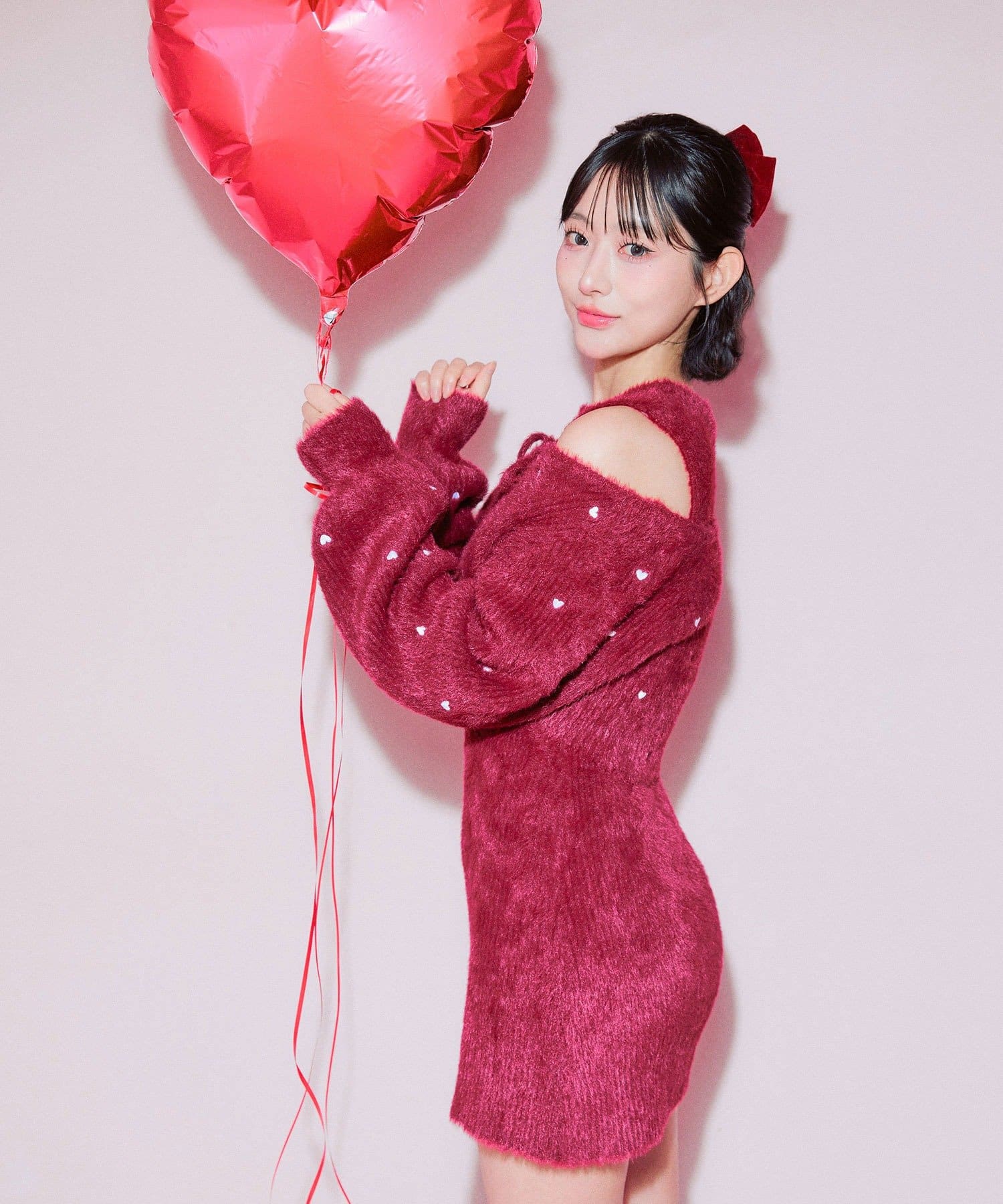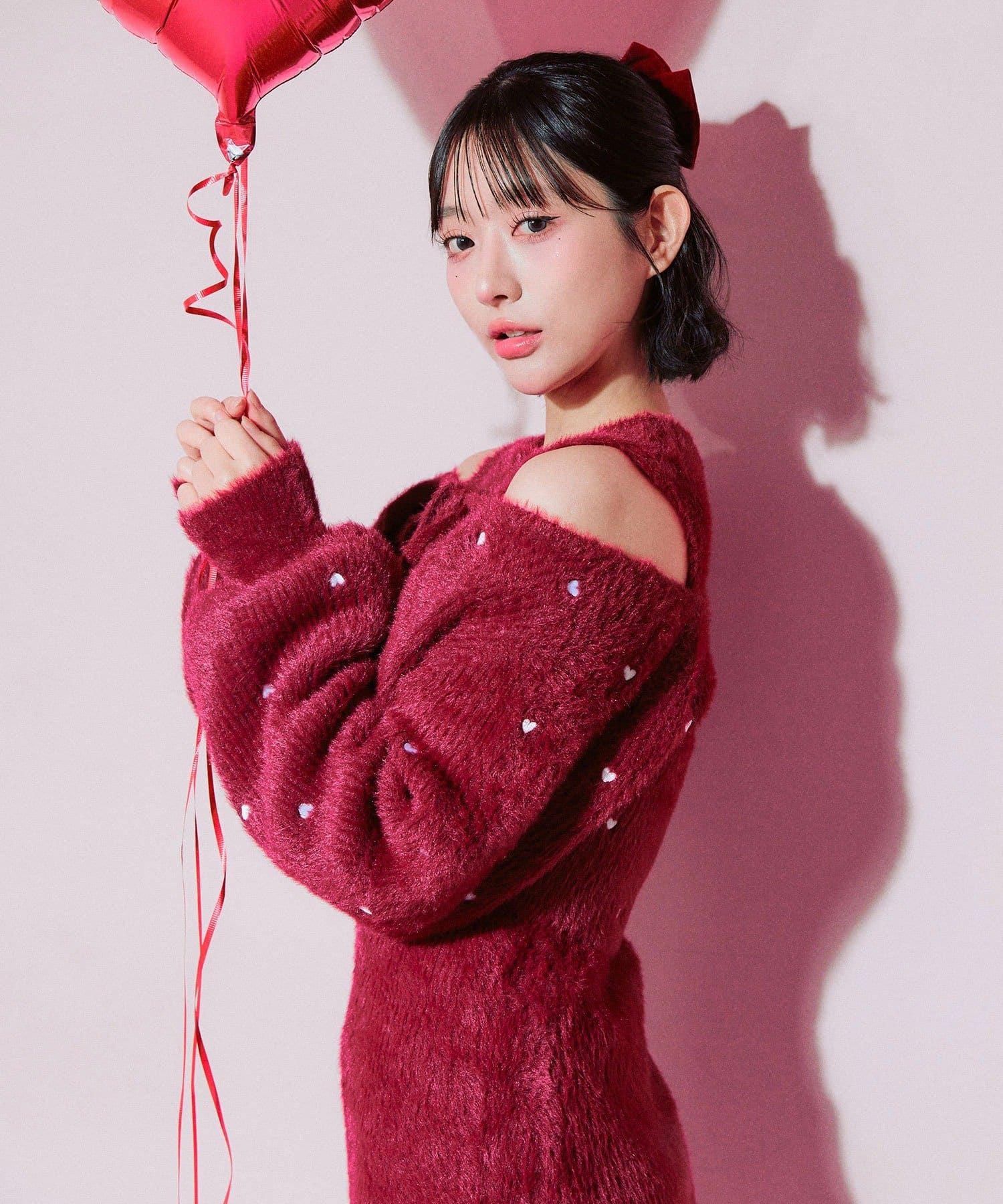 ・ハート刺繍がかわいいボレロと、ノースリーブですっきり着れるニットワンピのセットアイテム。