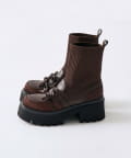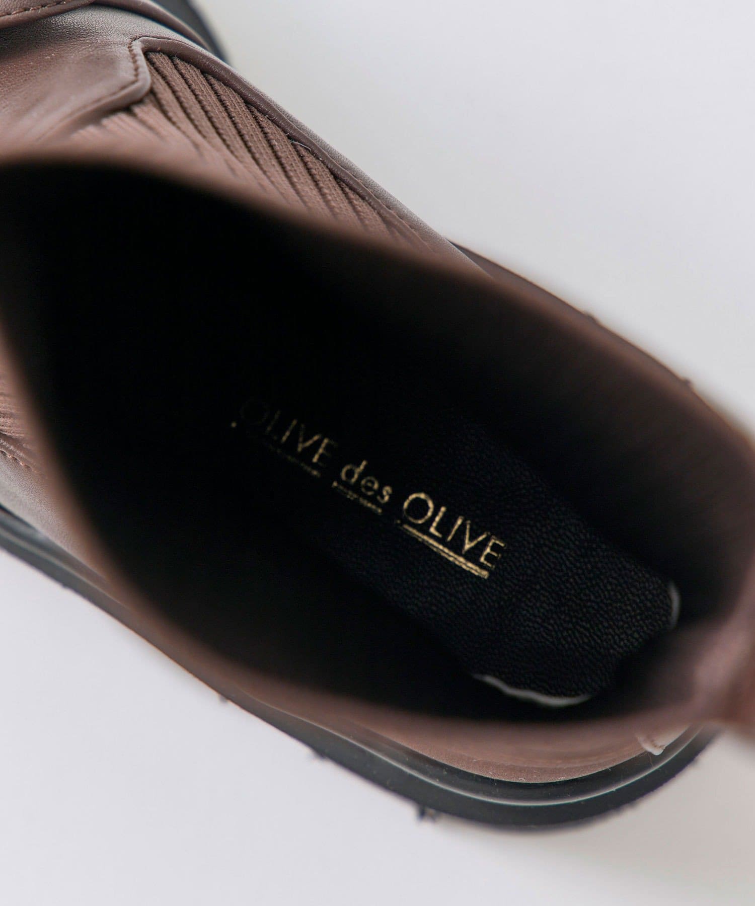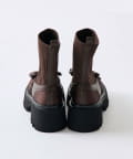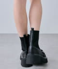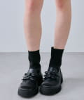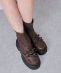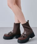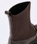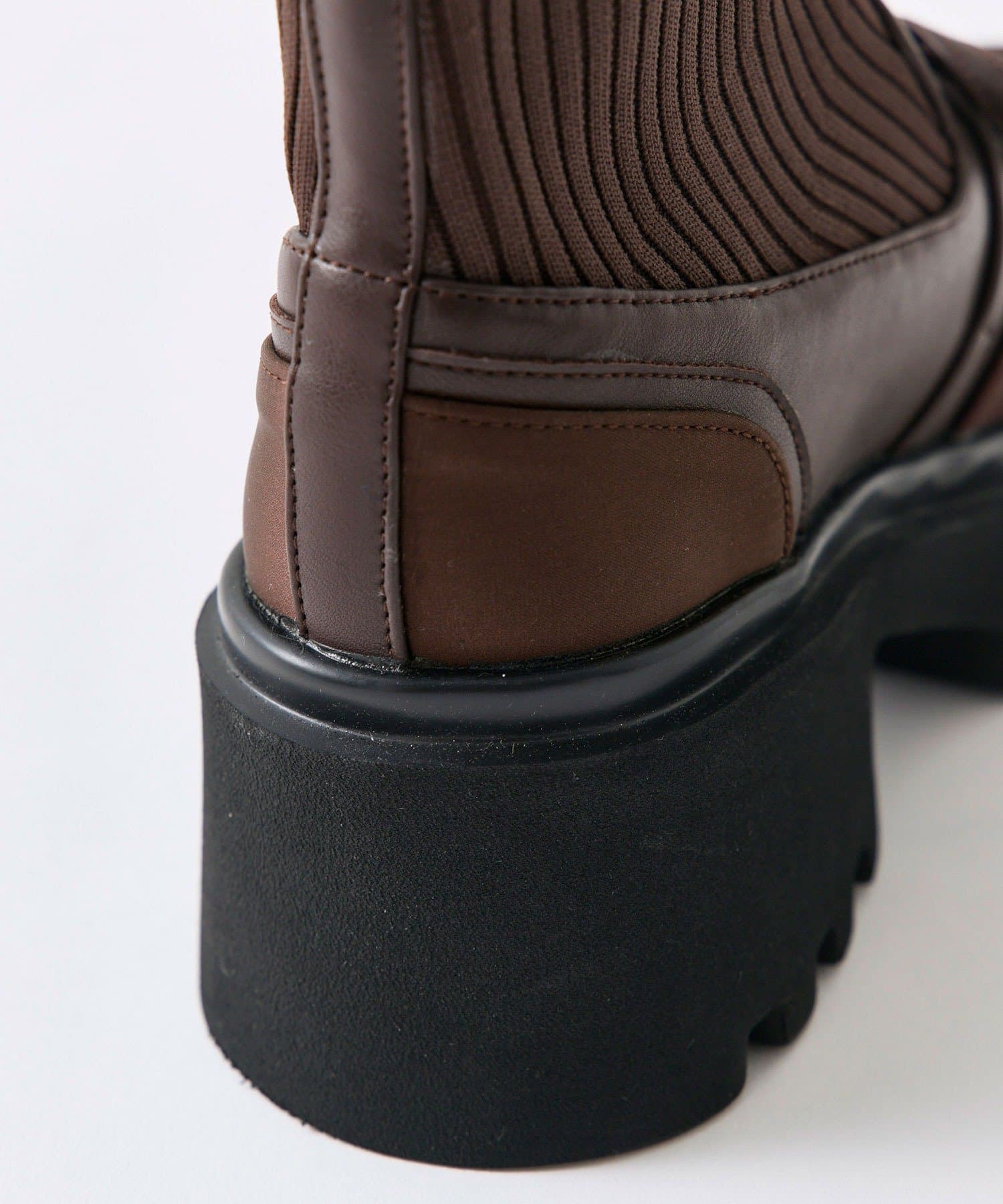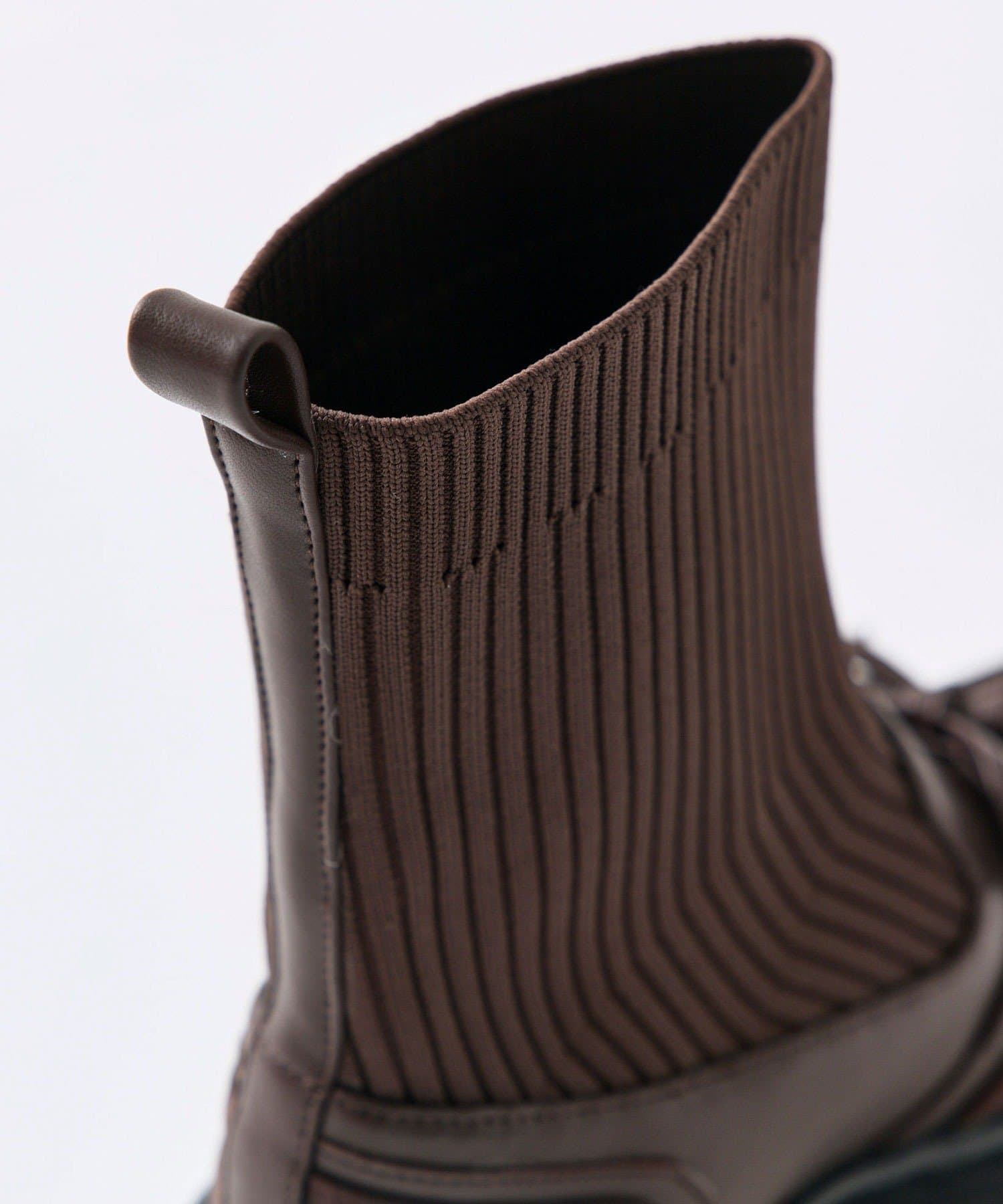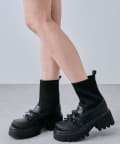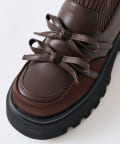 ・ソックス風リブニットとローファーのドッキングデザインのショートブーツ。