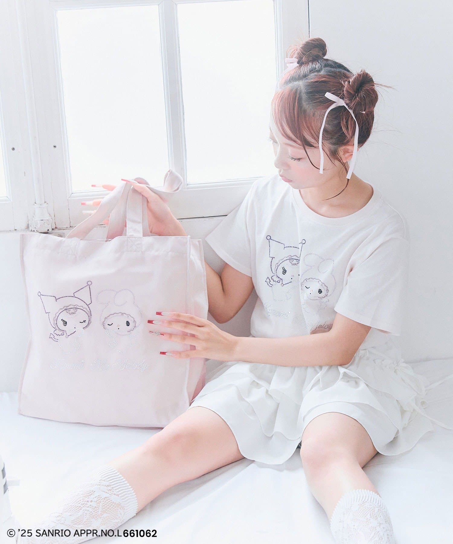 ・フロントにはキラキラのマイメロディとクロミのラインストーンを施し、シンプルだけど特別感のあるデザイン。